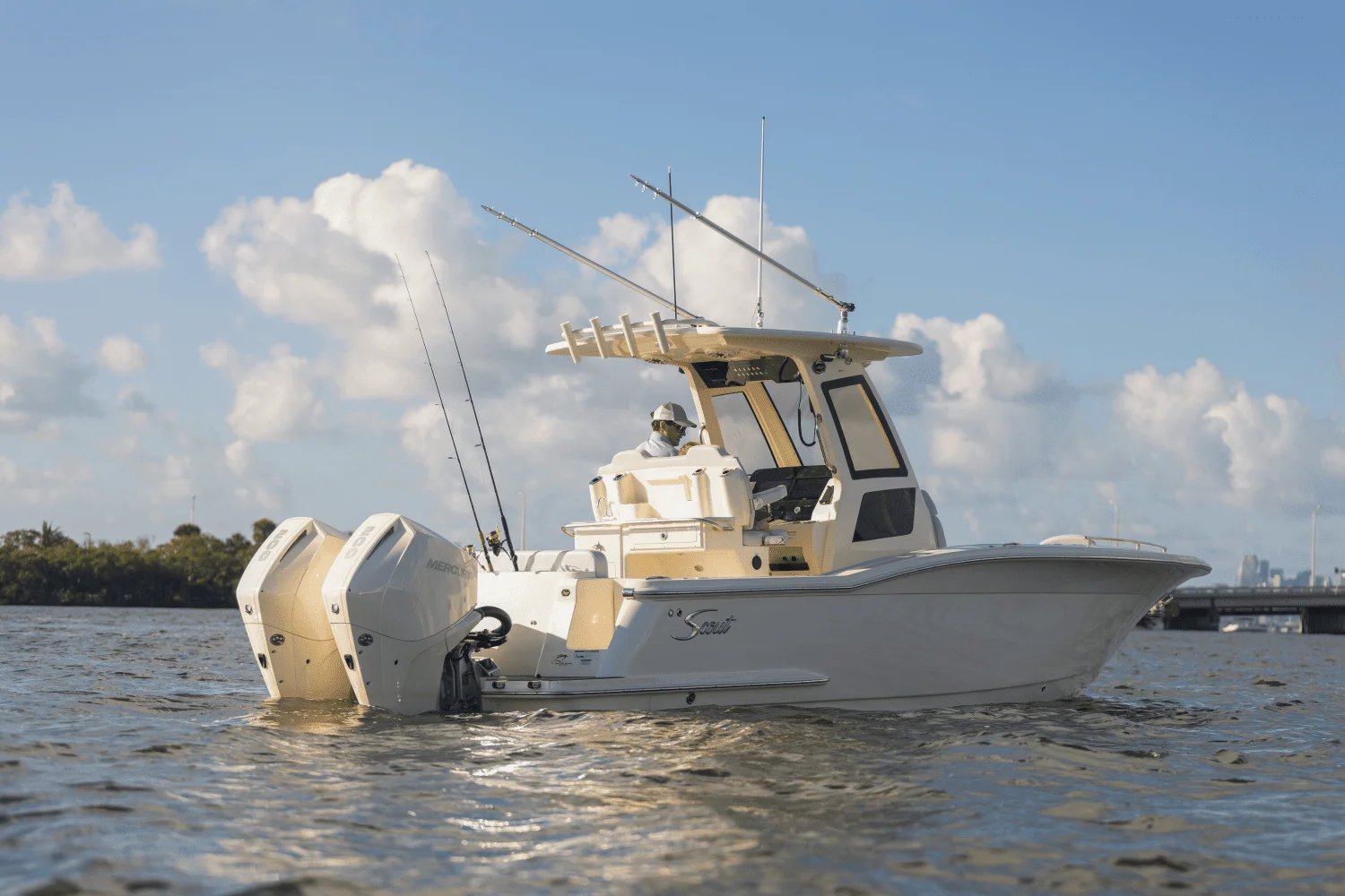 Introducing our all-new 260 LXF center console model. Performance meets function at a high level in this new 26' model. It comes standard with an integrated exposed carbon fiber T-top with fully enclosed windshields that complements the already sleek profile as well as provides protection from the elements, a forward lounge seat that might just offer the best seat in the house, a side dove door that provides convenient access on and off the boat, in-floor fish boxes for the catches of the day, and an extended walkable transom that adds further to the safety and convenience of the model. This model also comes standard with the Seakeeper Ride vessel attitude control system, and a step-inside console with porcelain head. Choose from multiple engine package options as well as upholstery and hull color choices to make it your own. Key Features Introducing the 2025 Scout 260 LXF - Step into luxury and adventure with the 2026 Scout 260 LXF, a masterpiece of craftsmanship and performance.