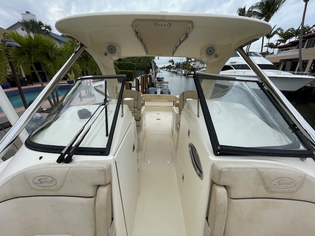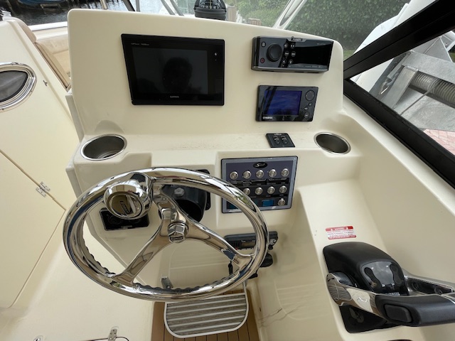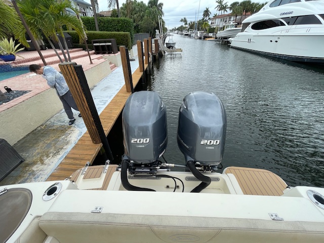2016 Scout 275 Dorado. Powered with twin Yamaha 200HP outboard four stroke motors with stainless steel props. Motors only have 400 hours. Boat comes with built in fiberglass hard top, Garmin GPS, Yamaha Digital Command Link Gauge, Stereo, Compass, Battery Charger, Refrigerator, Live Baitwell, Fresh water shower with 14 gallon capacity, salt water washdown, Marine head, trim tabs, tilt steering, Windlass Anchor, 2 cockpit fish boxes - 200 Quarts each, and fold down transom seating. Unsinkable Boat!! For more information or to schedule a viewing, please contact Patrick. Financing Available!! Hablamos Espanol!!