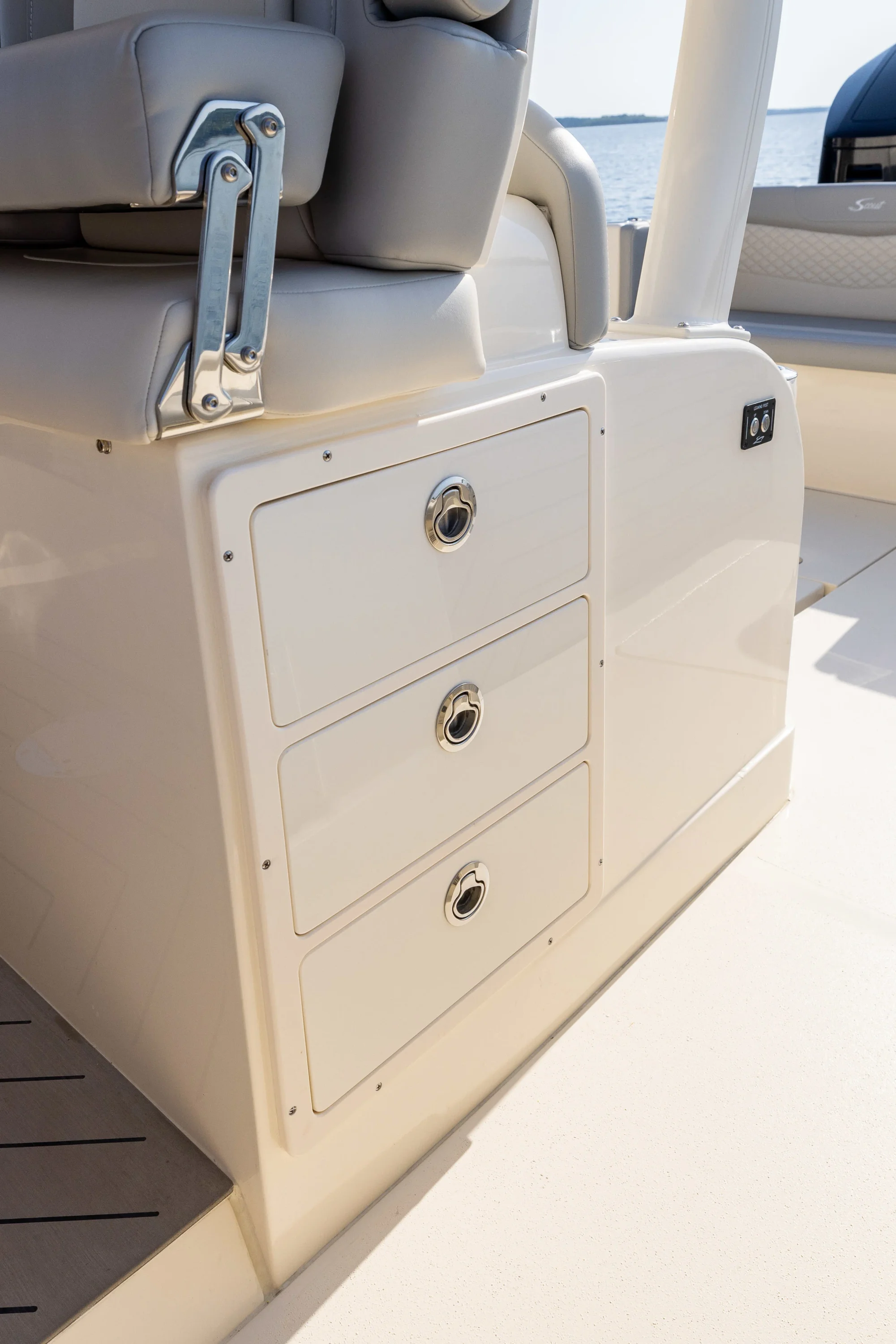 Digital Helm - Control on-board systems with the touch of a screen. Your Garmin screens encased in glass bezels provide the techniological touch you've come to expert, as well as the seamless, modern styling they represent. Additional comfort is provided with Scout's standard heated helm seat features.