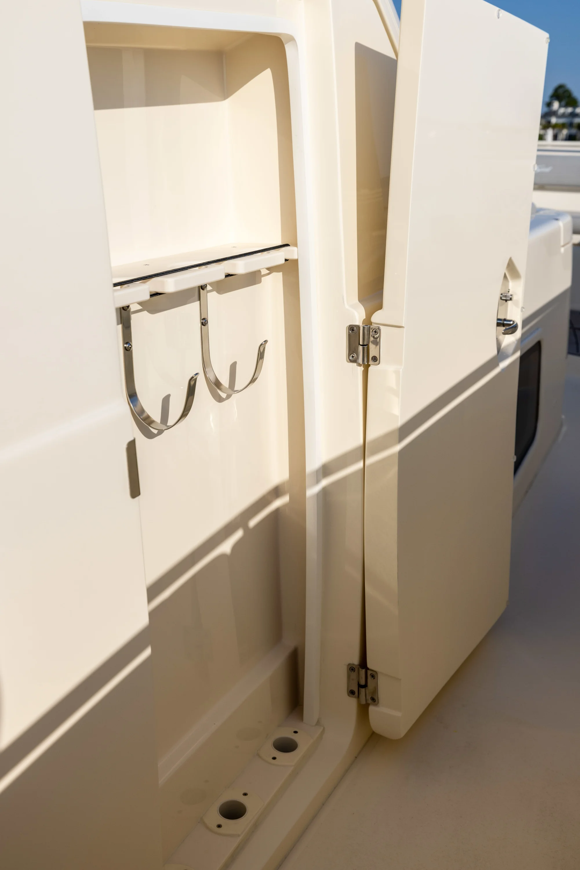 Articulating Rocket Launchers & SureShade - With the touch of a button, you can electronically raise or lower the hardtop mounted rocket launchers. When the SureShade retractable awning is deployed, the rocket launchers will also lower electronically. Having the rocket launchers articulatenot only provides an added unique feature to the boat, but also helps with ease of loading and unloading rods.