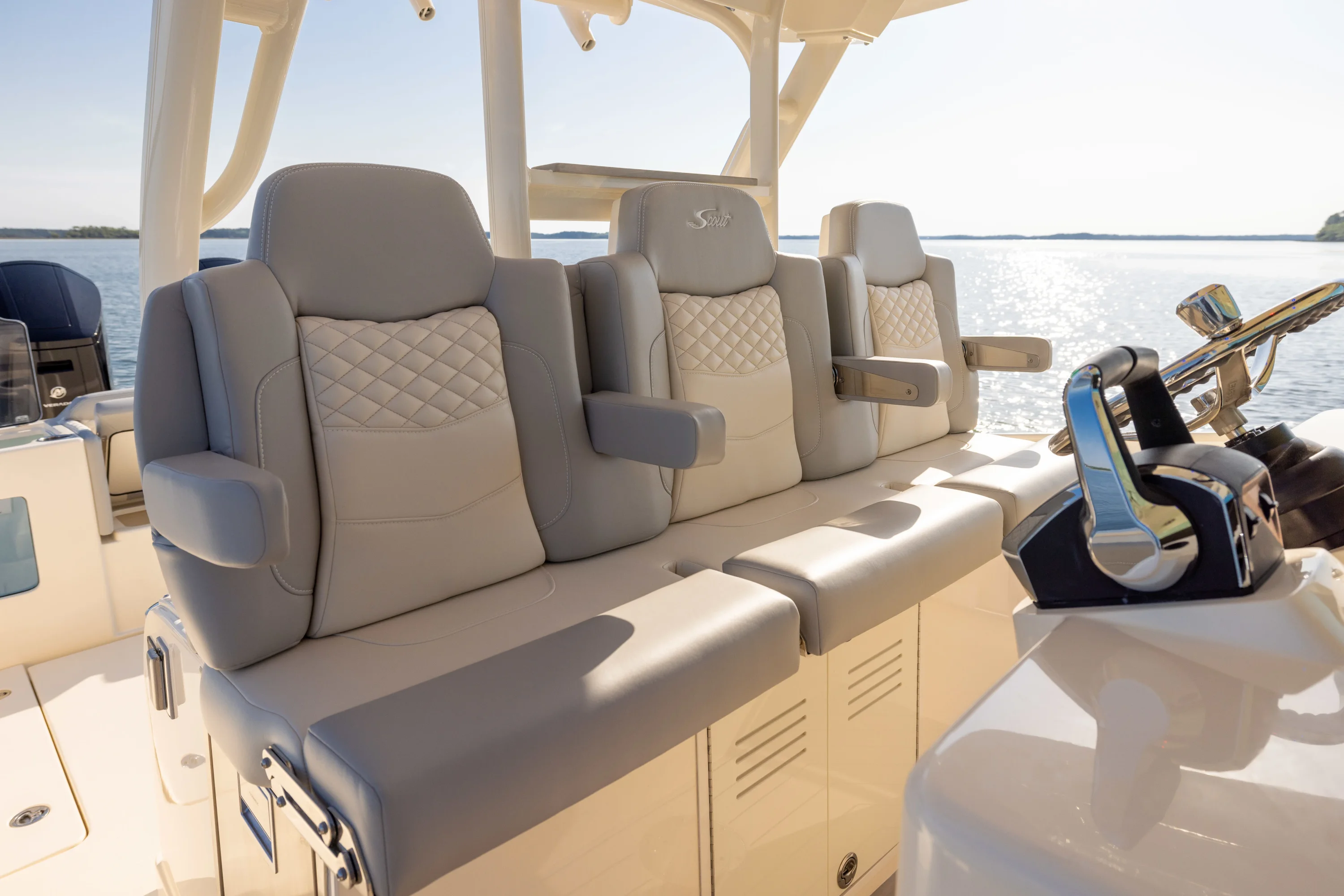 Digital Helm - Control on-board systems with the touch of a screen. Your Garmin screens encased in glass bezels provide the techniological touch you've come to expert, as well as the seamless, modern styling they represent. Additional comfort is provided with Scout's standard heated helm seat features.