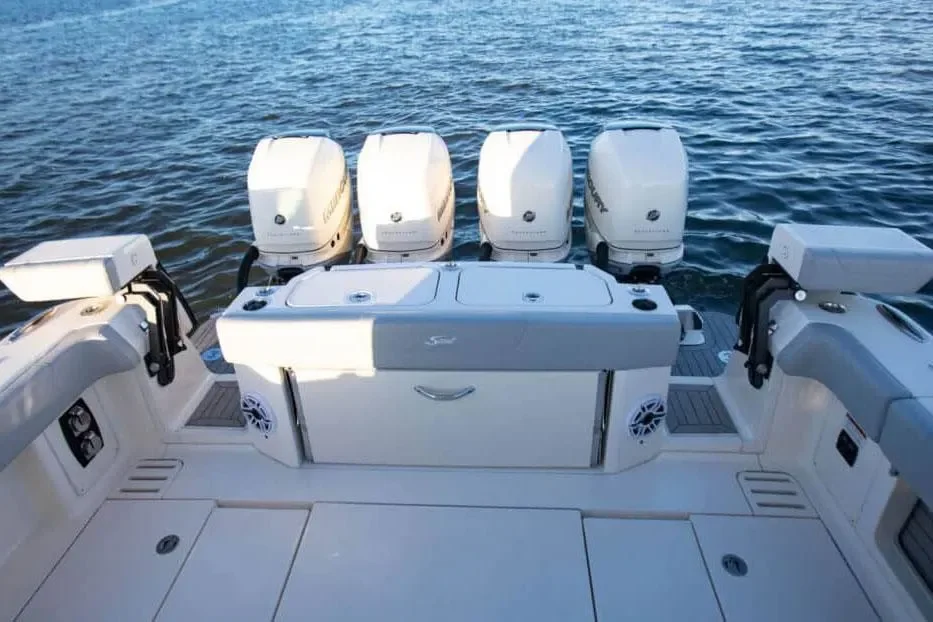 The 425 LXF offers superior structural stability, strength and a Class-A finish creating unsurpassed performance. With a standard Seakeeper gyro stabilizer, second row seating, and a unique leaning post that has an electrically-actuated fiberglass drawer cooler, summer kitchen complete with grill, sink and cutting board, and swivel barstools that conveniently stow away this model has it all. S-Class signifies the upper echelon of the Scout line-up - the highest level of luxury - similar to what you experience with high-end luxury automobiles. The 425 LXF is meticulously crafted with cutting-edge carbon epoxy construction (carbon fiber/e-glass is the main material used in the epoxy infused process) and the highest-performing dual Scout stepped hull technology, while simultaneously pairing it with the finest sophisticated blend of appointments and technologies. The S-Class denotes the most superior model for center console customers. Key Features Epoxy-Infused Hull - The epoxy-infused hull using Carbon Fiber/E-glass provides improved superior structural stability, strength, and a Class-A finish, creating unsurpassed performance