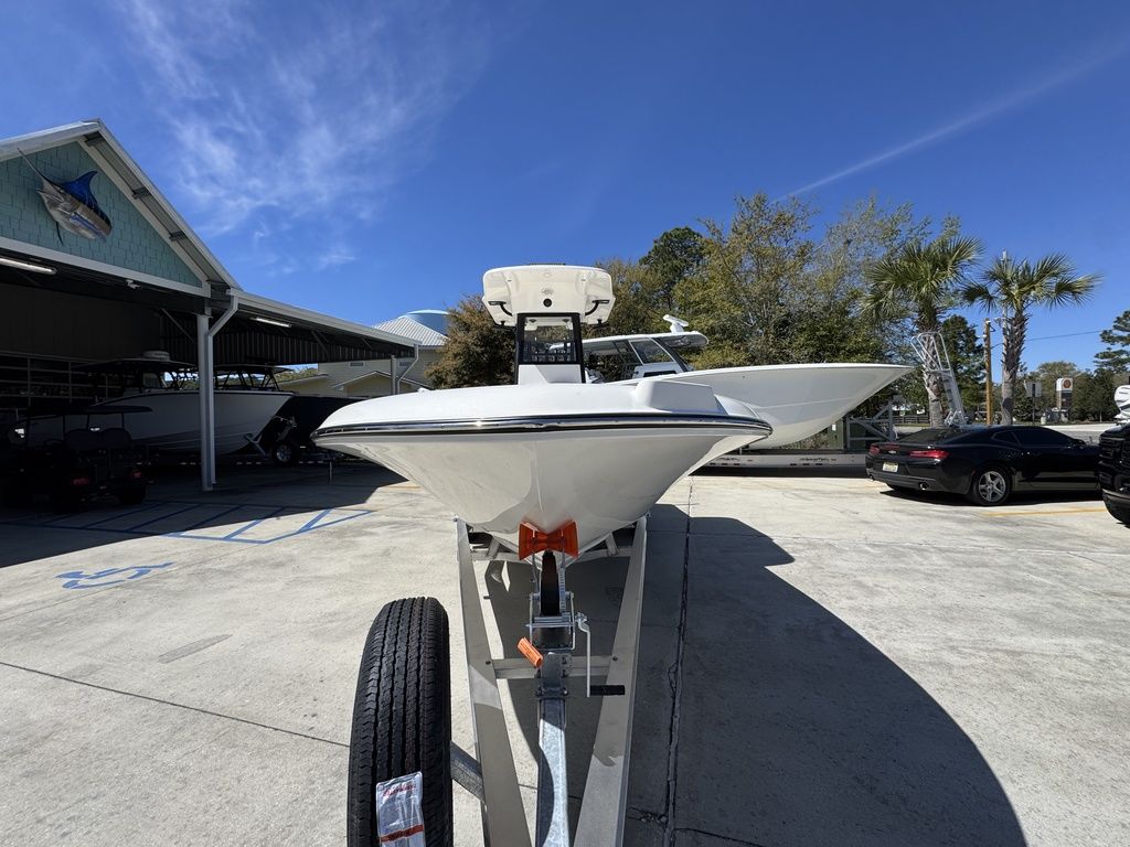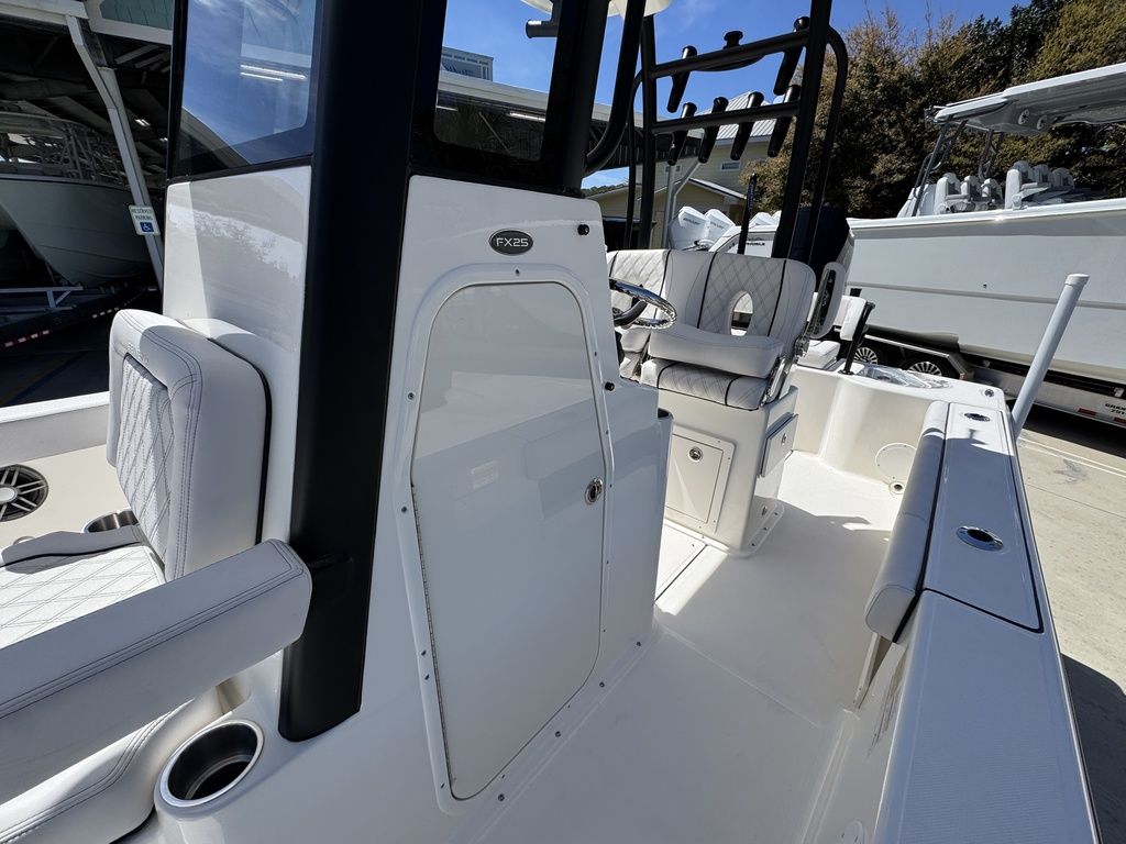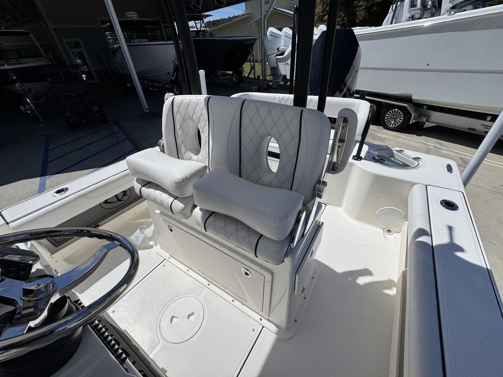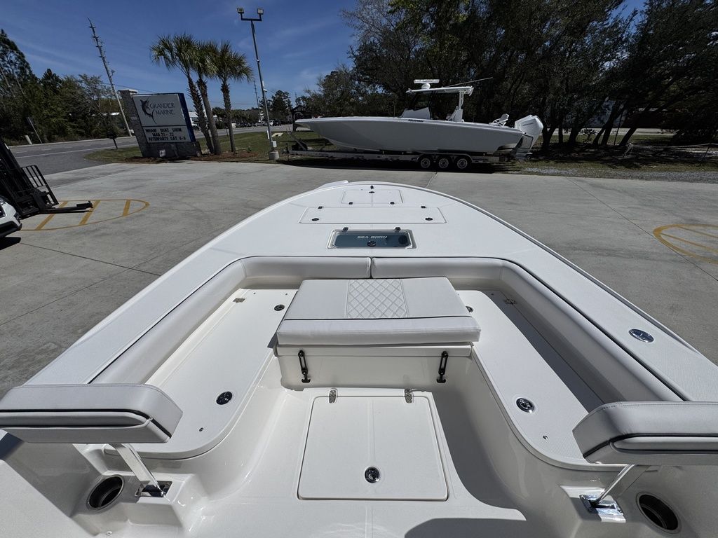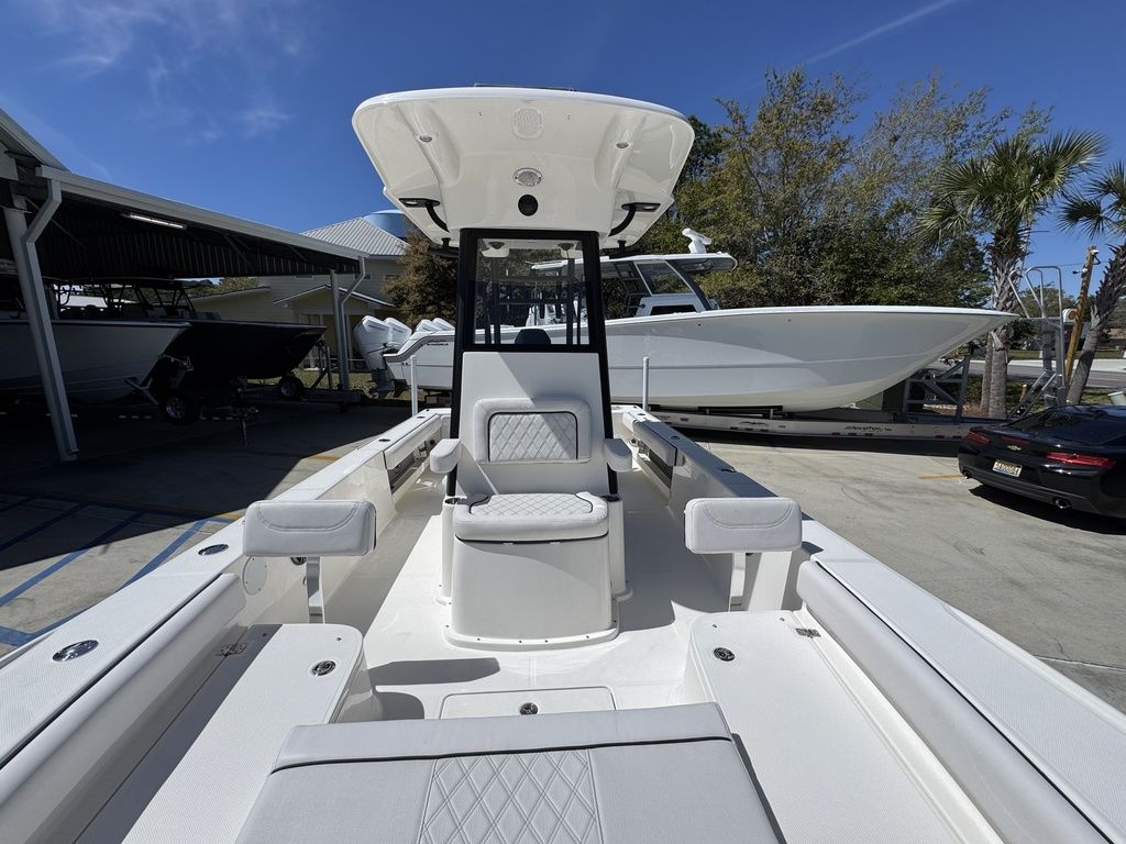 The flagship of the Sea Born bay boat lineup, the FX25 turns heads as one of our most sought-after models for the serious angler. Built on a stable 105" beam with a single-step hull for improving performance, the FX25’s sportfish-style transom and large forward casting deck make it a true hybrid and dual threat for both inshore or offshore.
