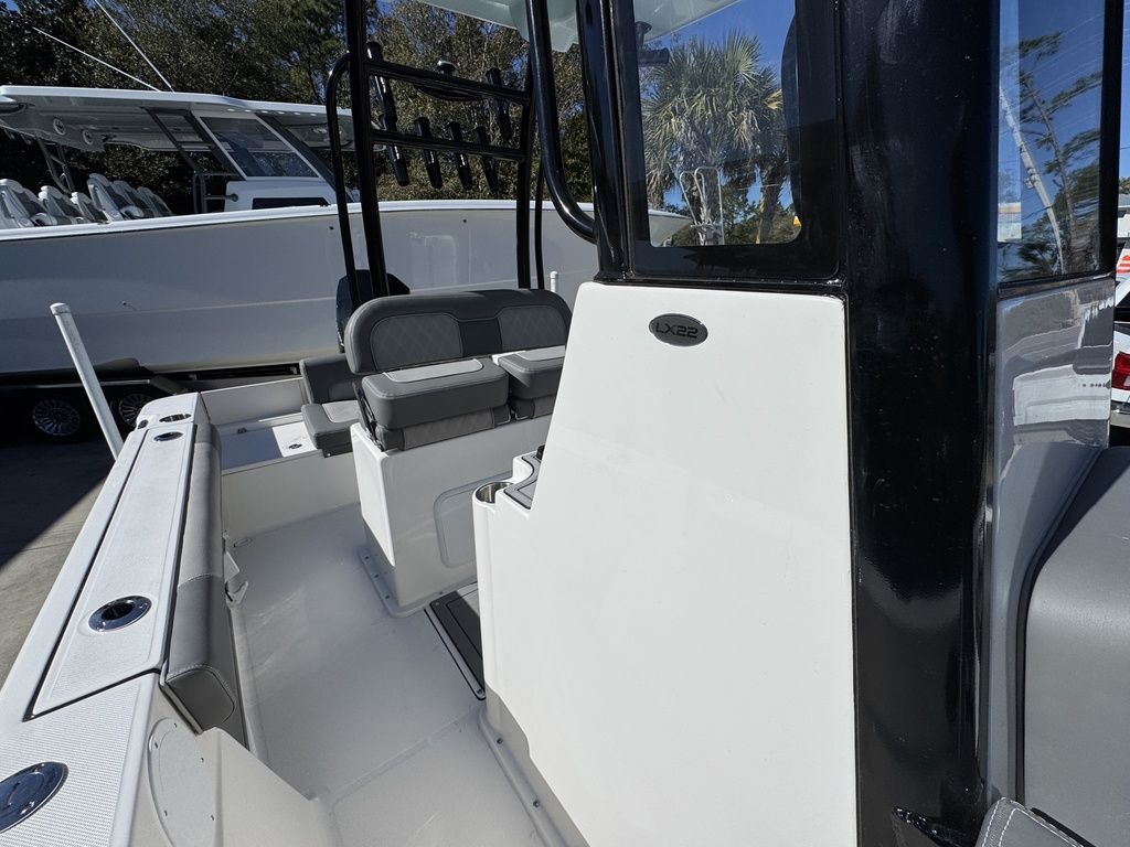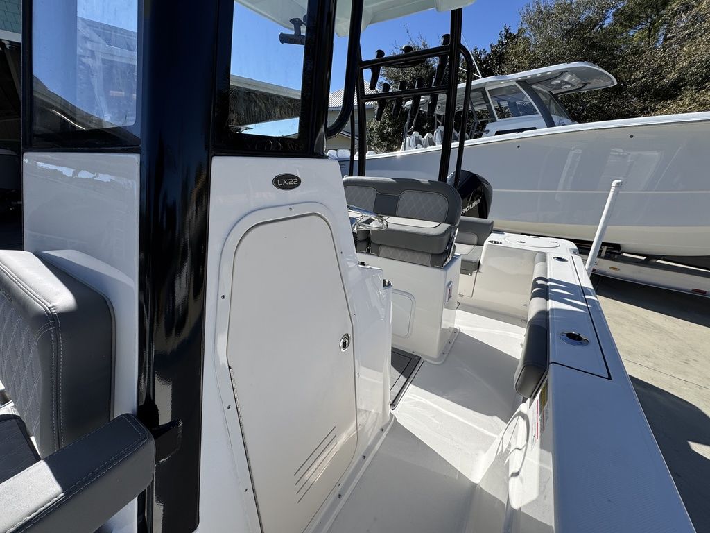 Measuring in at 22' 5" with a 102" beam, this elegant all composite construction 22-foot center console is designed for both serious angling and family fun alike. With higher sides (freeboard) than our bay boats, the LX22 is ready and willing for offshore and inshore cruises. In addition, our 22-footer offers forward-lounge seating, aft bench seating atop a practical deck layout making it feel much larger than center console boats within its class.