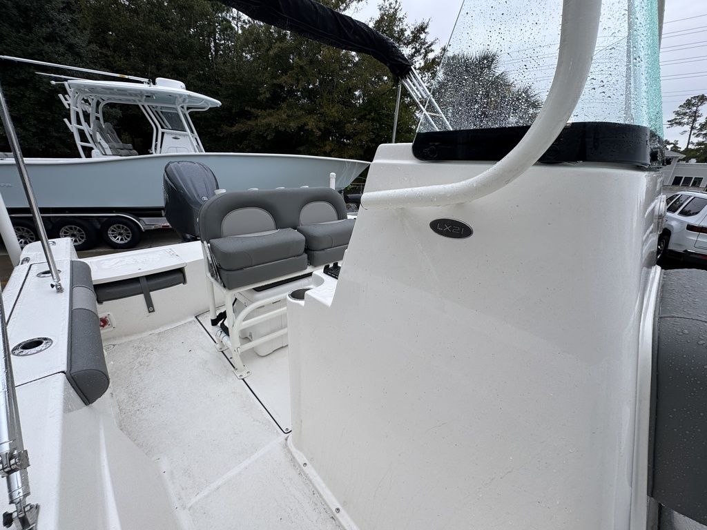 Measuring in at 21' 1" with a 102" beam, this elegant all composite construction 21-foot center console is designed for both serious angling and family fun alike. With higher sides (freeboard) than our bay boats, the LX21 is ready and willing for offshore and inshore cruises. In addition, our 21-footer offers forward-lounge seating, aft bench seating atop a practical deck layout making it feel much larger than center console boats within its class.