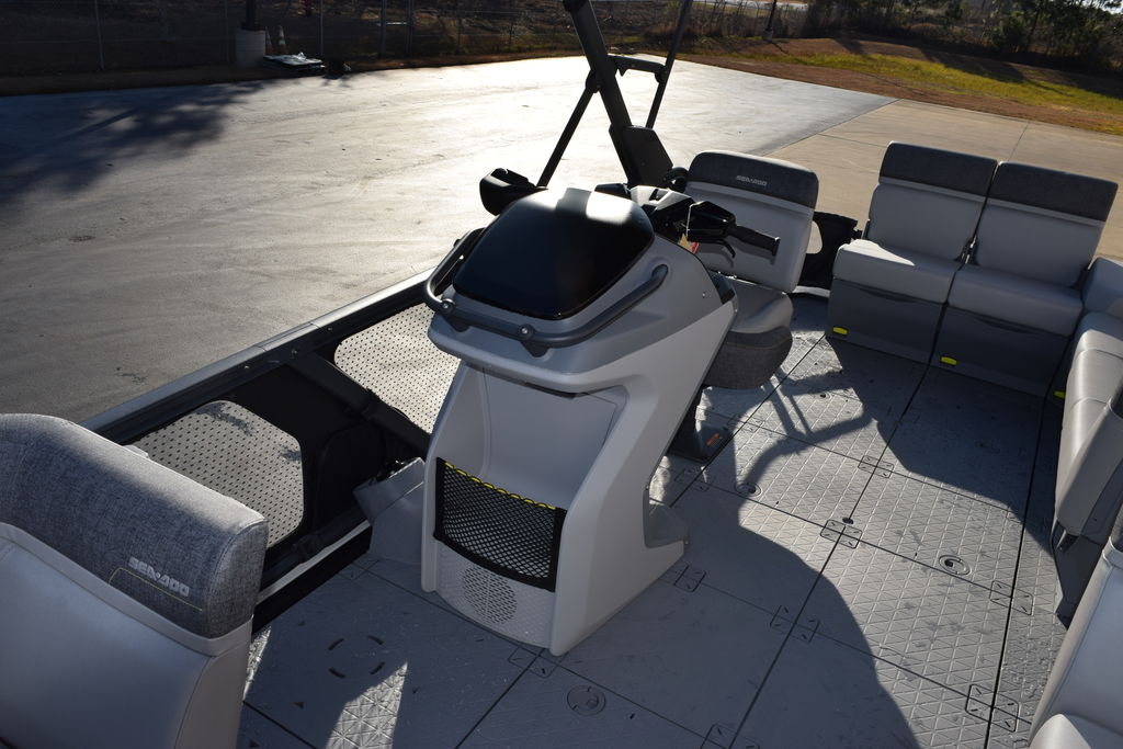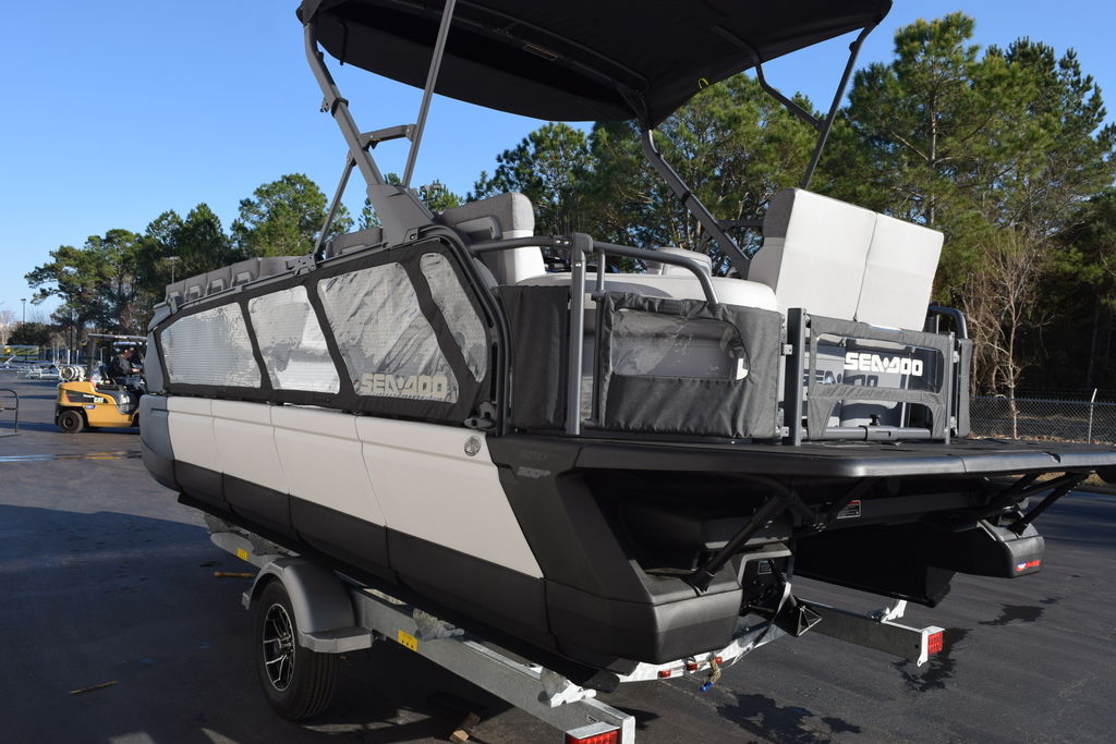 A cruising pontoon boat with 230 HP of Rotax power for those who crave more adrenaline. Spacious, stable and perfect for watersports and family adventures in full Sea-Doo style.