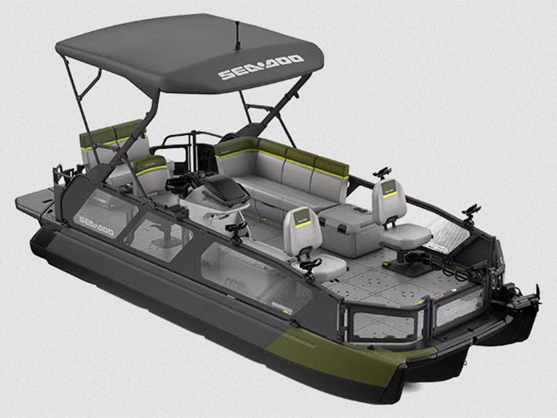 ETA JAN/FEB 2026 Sea-Doo Switch Fish 21' 300HP Dual Garmin Fish Finders Multiple screens, plenty of fish Fish at the front or fish at the back. With two Garmin fish finders on board — one at the console, one at the bow — you can see what you want wherever you are. The screens wirelessly connect to one another allowing both screens to read both in-hull and trolling motor transducers signals. Quick-Access Rod Storage Your rod at a moment's notice Store up to four fishing rods safely and easily on board the pontoon with quick-access rod storage. Lock them up when you leave the boat so when it’s time to cast a line, you’ll find them exactly where you left them. Quick-Connect Livewell Preserve your bait in prime condition A cooler that doubles as a livewell using an integrated pump to constantly feed water into the reservoir to keep your catch and bait alive. It’s easily and securely installed onto the pontoon using quick-attach tiles. Pro tip: Use the top of the lid to measure your catch! (18' and 21' only) Fishing Pedestal Seats Your fishing throne Adjust, rotate, attach. The fishing pedestal seats spins 360 degrees, adjusts up and down and moves easily around the boat, quickly attaching and detaching to and from different tiles and pairing up with your LinQ Lite accessories for a top-notch fishing experience. (Compact model comes with one pedestal seat) Garmin Trolling Motor Power for the long haul A powerful trolling motor, yet it’s quiet as a mouse while you´re fishing. Its robust battery system doesn’t just provide power, it proves long-lasting power. Autopilot features and HD scanning sonars make steering your pontoon a breeze. Plus, it's suitable for both salt and fresh water.