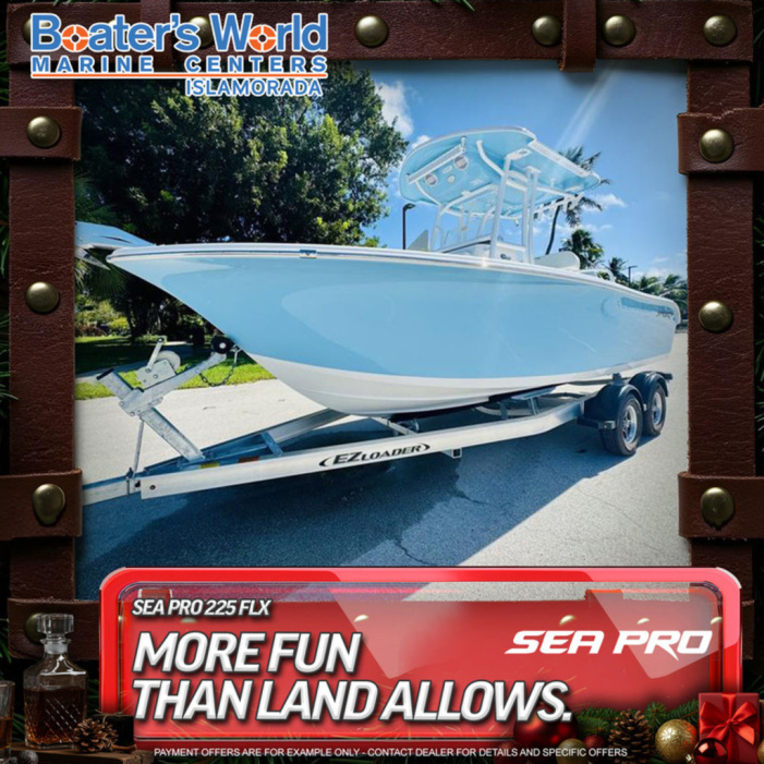 The 2026 Sea Pro 225 FLX is built for those who want to do it all — fish, cruise, and relax in comfort. Combining Sea Pro’s offshore heritage with sandbar-ready versatility, this 22’5” family-fish crossover delivers the perfect mix of performance, style, and functionality.