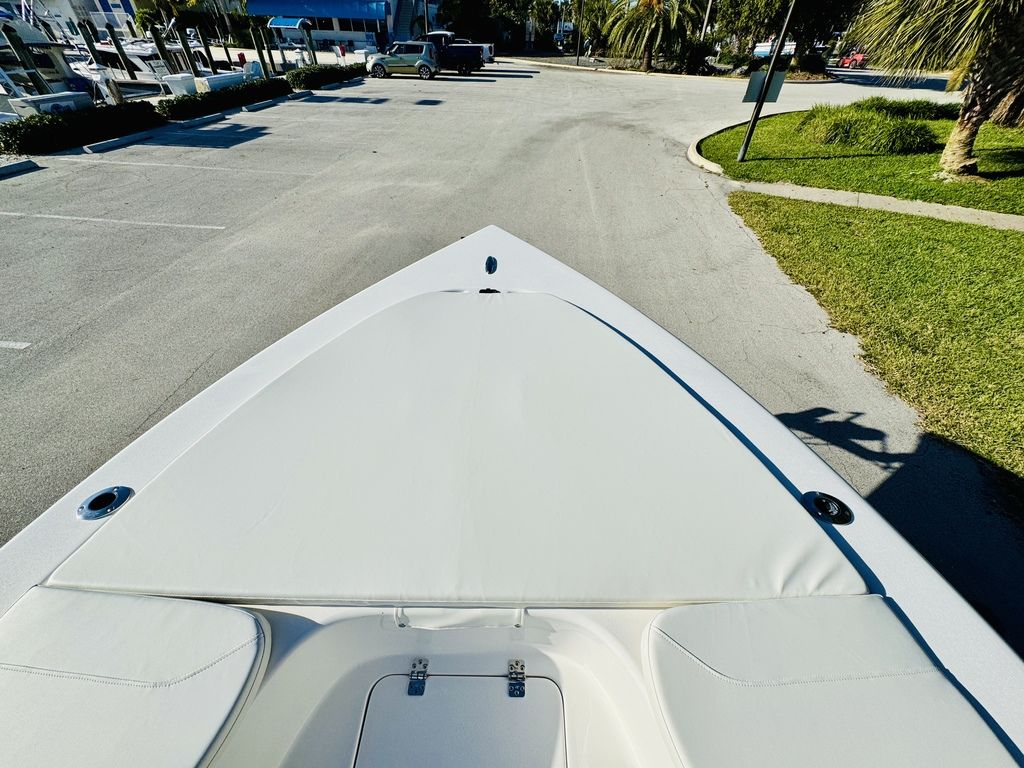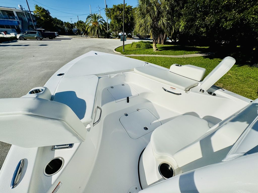 -Comfortable forward casting deck with optional bow cushions, dual stern jump seats port & starboard, and ample open cockpit for fishing or lounging.