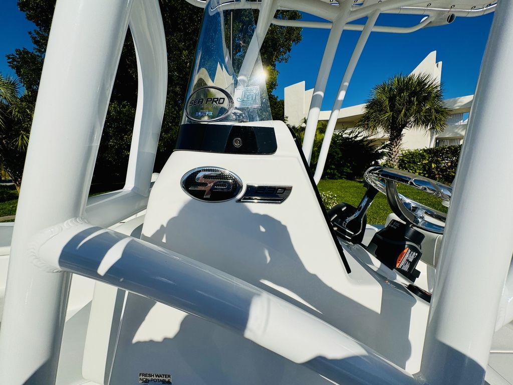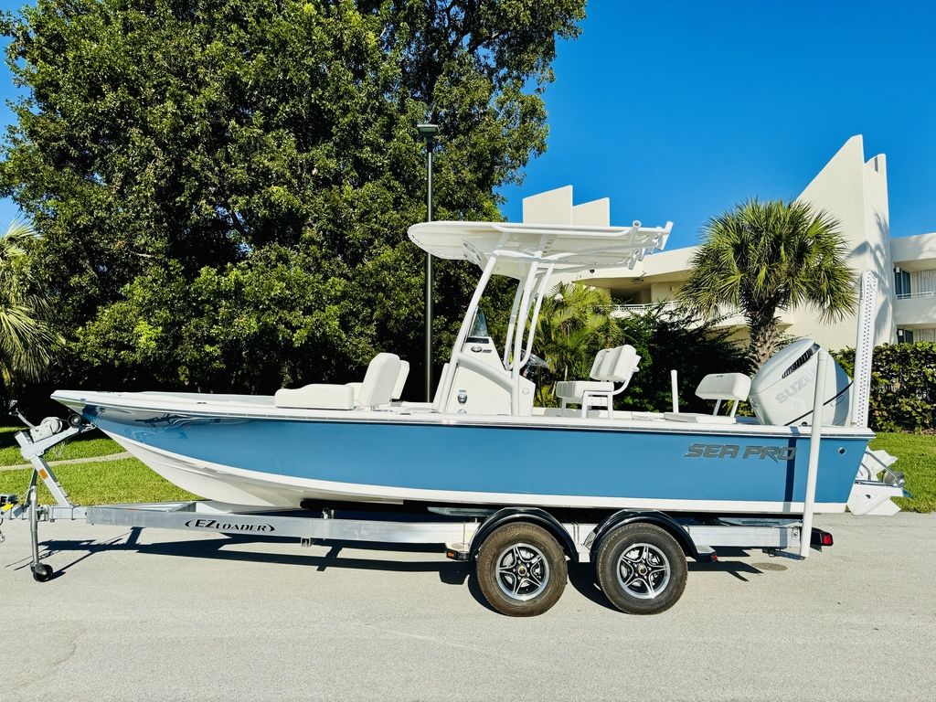 The 230 DLX is a premium bay-style center-console boat engineered for anglers and families who demand versatility, comfort, and reliable performance. From early-morning flats fishing to cruising the sandbar with friends, this boat handles it all. Powered by a Suzuki 250 HP outboard, the 230 DLX delivers strong acceleration, smooth cruising, and plenty of power to get you where you want to go quickly. At a hull length of approximately 22’-8? and a beam of 8’4?, the boat balances generous deck space and stability with manageable trailering and easy ramp access. Built with Sea Pro’s foam-filled fiberglass stringer system, gel-coated hull and deck, and vinyl-ester barrier coat below the waterline, the 230 DLX is designed for durability, rigidity, and resistance to osmosis. Every detail — from stainless-steel hardware to high-volume cockpit drainage — reflects Sea Pro’s commitment to quality, longevity, and performance. Whether you’re battling fish from the bow, navigating at the helm, or relaxing in the cockpit, this boat adapts to your day on the water.