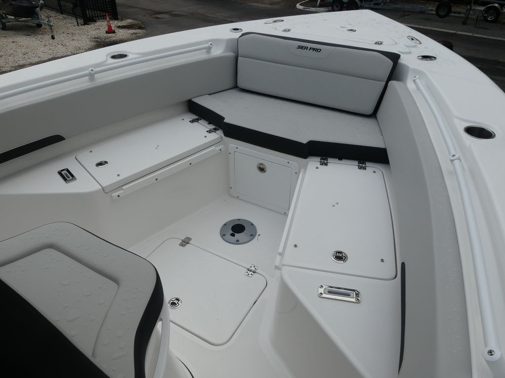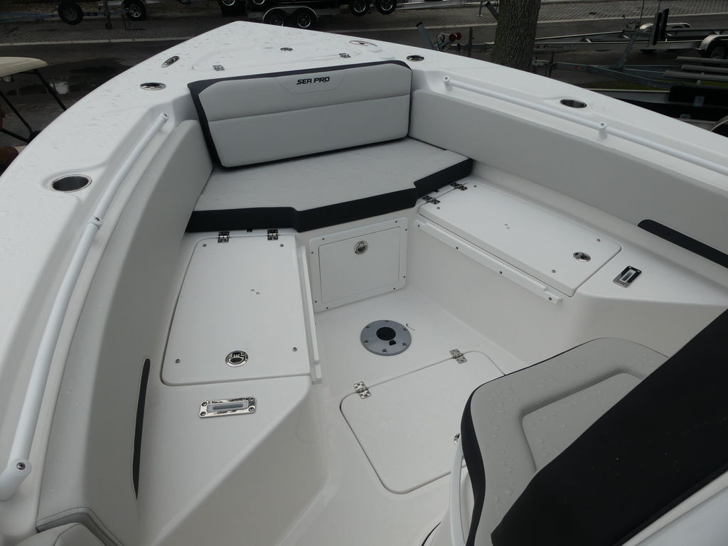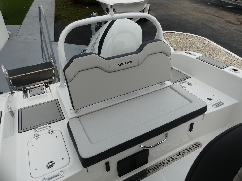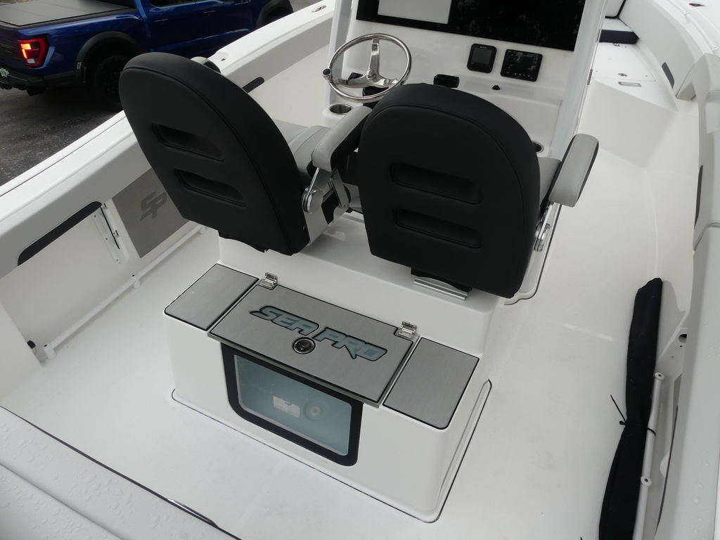 Sea Pro’s reputation for building rugged, well-equipped boats is fully reflected in the 245 FLX. Every vessel is constructed with high-quality fiberglass, foam-filled stringer systems, and corrosion-resistant components engineered to withstand Florida’s demanding saltwater environment. From the upholstery to the hardware, the boat’s build feels solid, refined, and ready for years of heavy use.