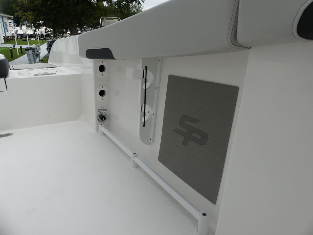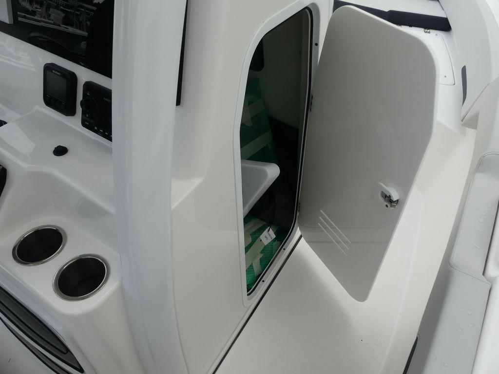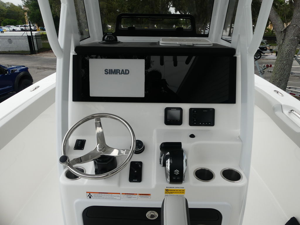 Florida anglers will appreciate the 360° fishability and tournament-inspired layout. The deck includes multiple insulated storage compartments, rod-storage racks, and deep in-floor boxes ideal for keeping tackle, gear, and catch organized. A large aquarium-style livewell keeps bait lively and visible, and the spacious bow and stern casting areas give anglers room to work while stalking fish along mangrove edges or drifting offshore.