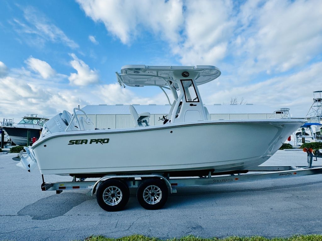 The 2026 SeaPro 245FLX is a versatile, all-around center console designed to deliver a perfect balance of sandbar cruising comfort, offshore capability, and inshore fishing performance. At just under 24 feet in length with a 102-gallon fuel capacity, it’s ideal for families, anglers, and social boaters who want one vessel that does it all. Built with SeaPro’s foam-filled stringer system and vinyl-ester barrier coat, the 245FLX delivers a quiet, stable, and durable ride. Whether you’re exploring shallow flats, running offshore, or enjoying a day at your favorite sandbar, this boat adapts effortlessly to your plans.