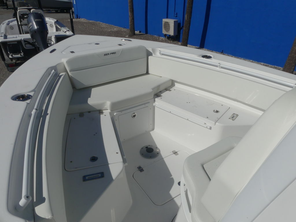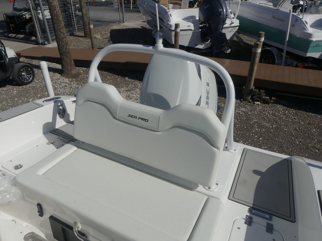 Sea Pro’s commitment to quality construction is evident throughout. The hull and deck feature a vinyl ester barrier for long-term durability, while a foam-filled design enhances strength and reduces noise. A one-piece, gel-coated stringer system provides exceptional structural integrity, ensuring years of dependable performance.