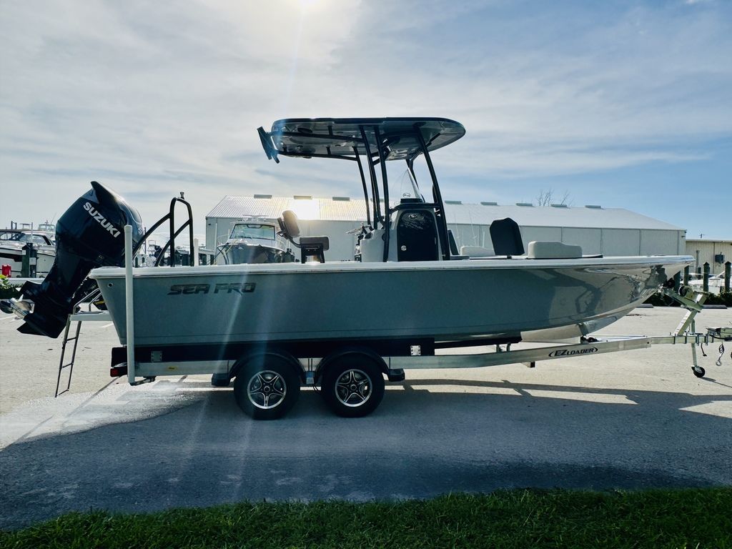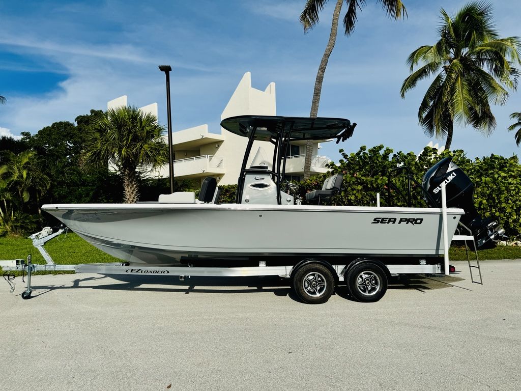 Equipped with a Suzuki 350 HP outboard, this model offers thrilling top-end performance and confident cruising efficiency. At approximately 24’8” in length with a beam around 8’9”, it hits that sweet spot between offshore-capable and easily trailerable. Like every Sea Pro, it’s built from the stringers up for lasting durability — with foam-filled construction, a vinyl-ester barrier coat below the waterline, and top-tier hardware throughout. Whether you’re fishing, cruising, or entertaining, the 250 DLX adapts effortlessly. The premium finish, thoughtful layout and proven hull design make this a bay boat built for serious fun and serious performance.