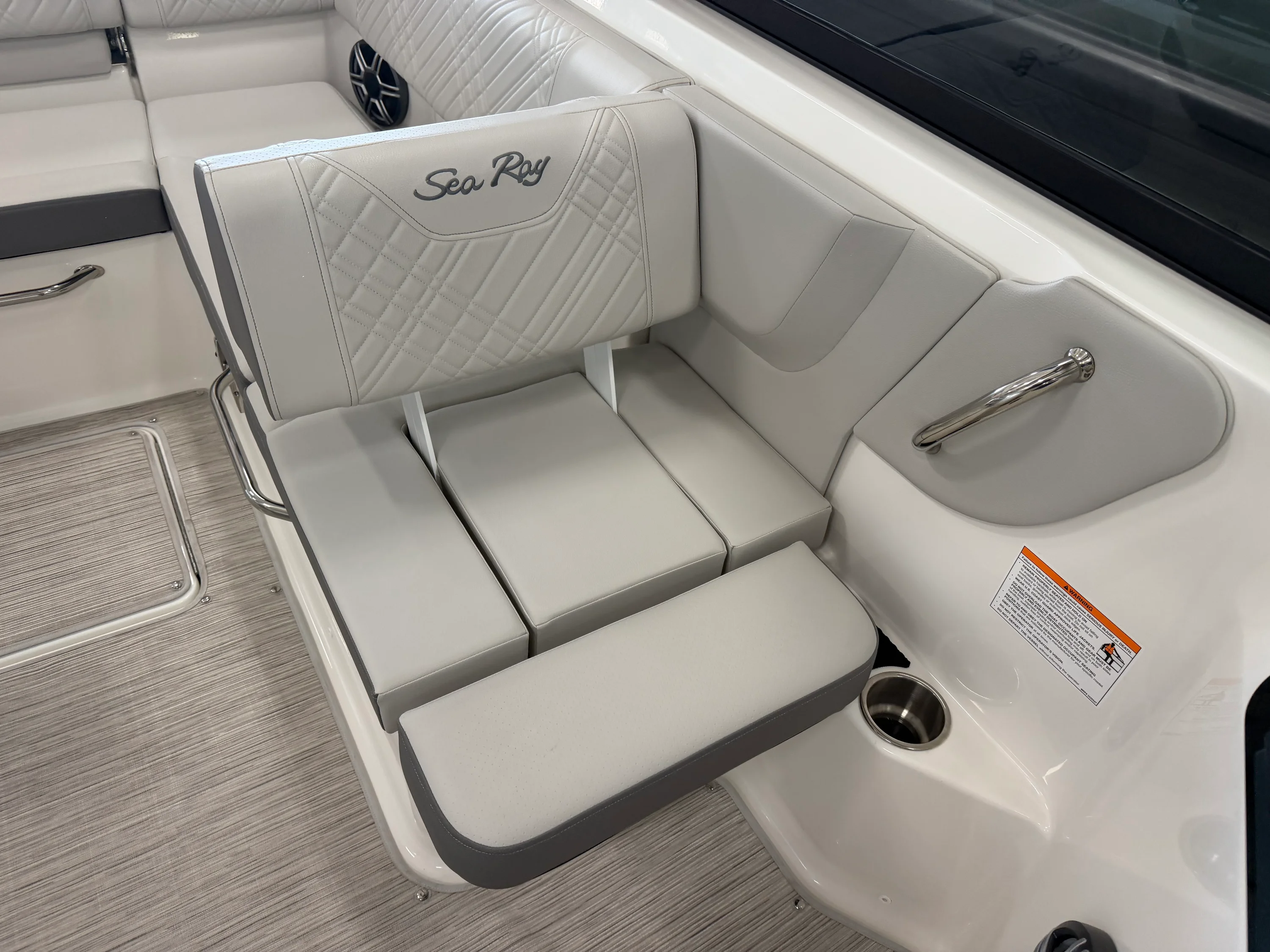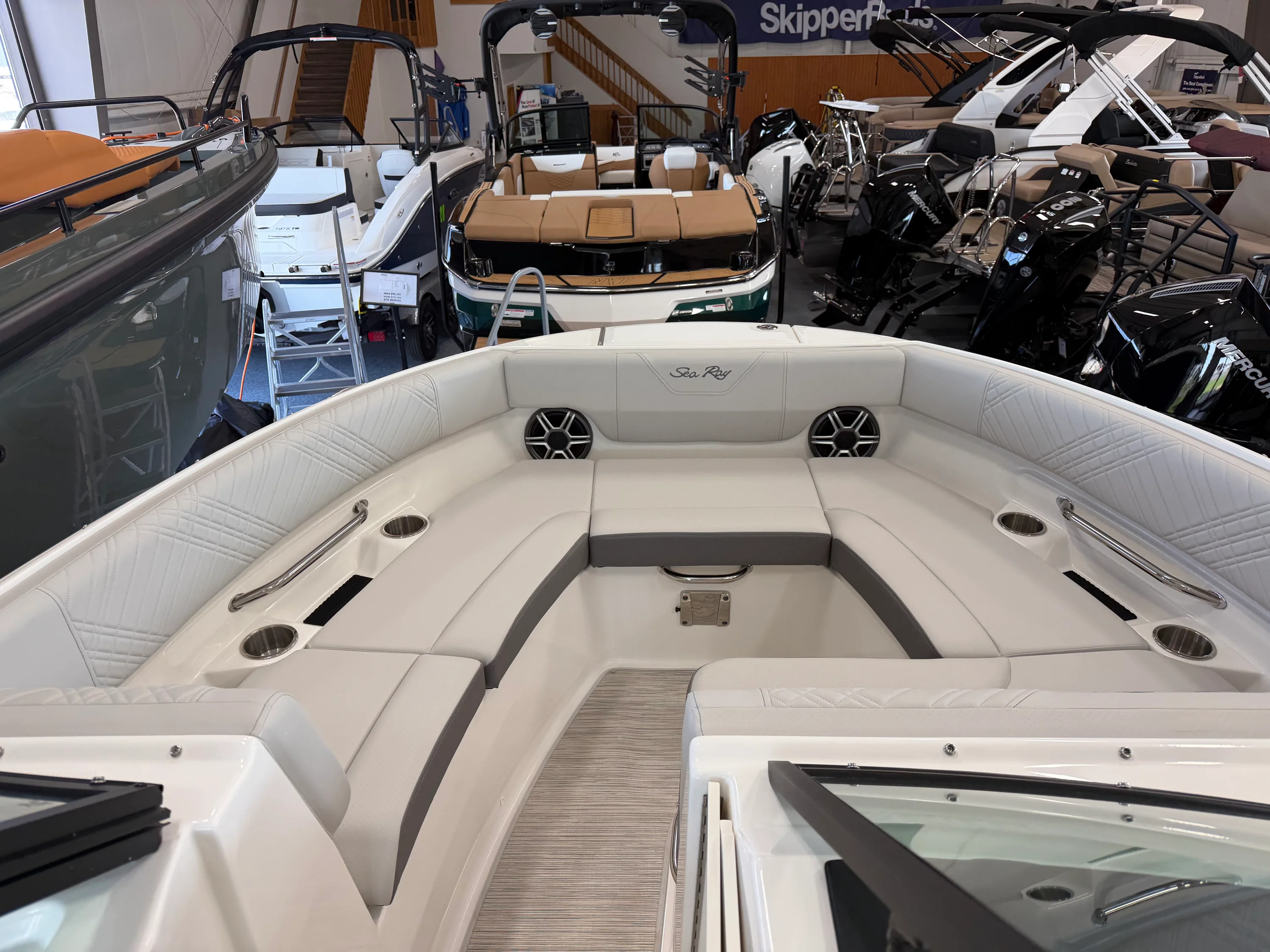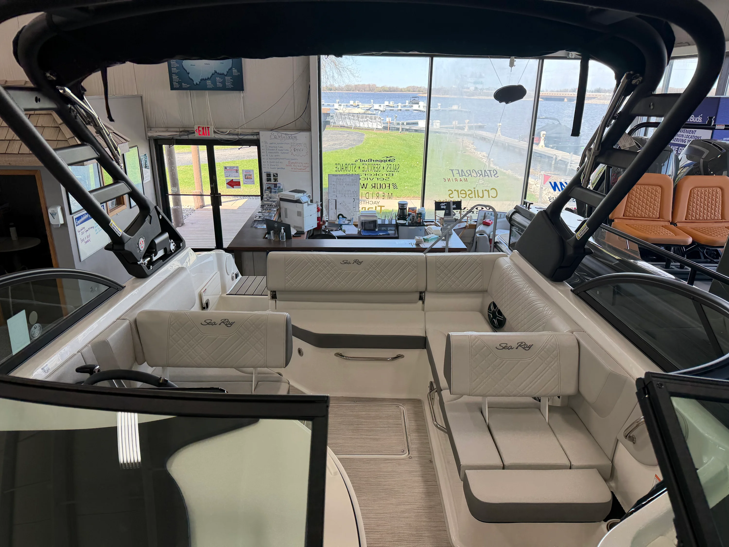Step aboard and experience the impeccable craftsmanship that Sea Ray is renowned for. The luxurious finishes and thoughtful details create an inviting atmosphere, ensuring comfort while you soak in the sun or enjoy a leisurely evening on the water.