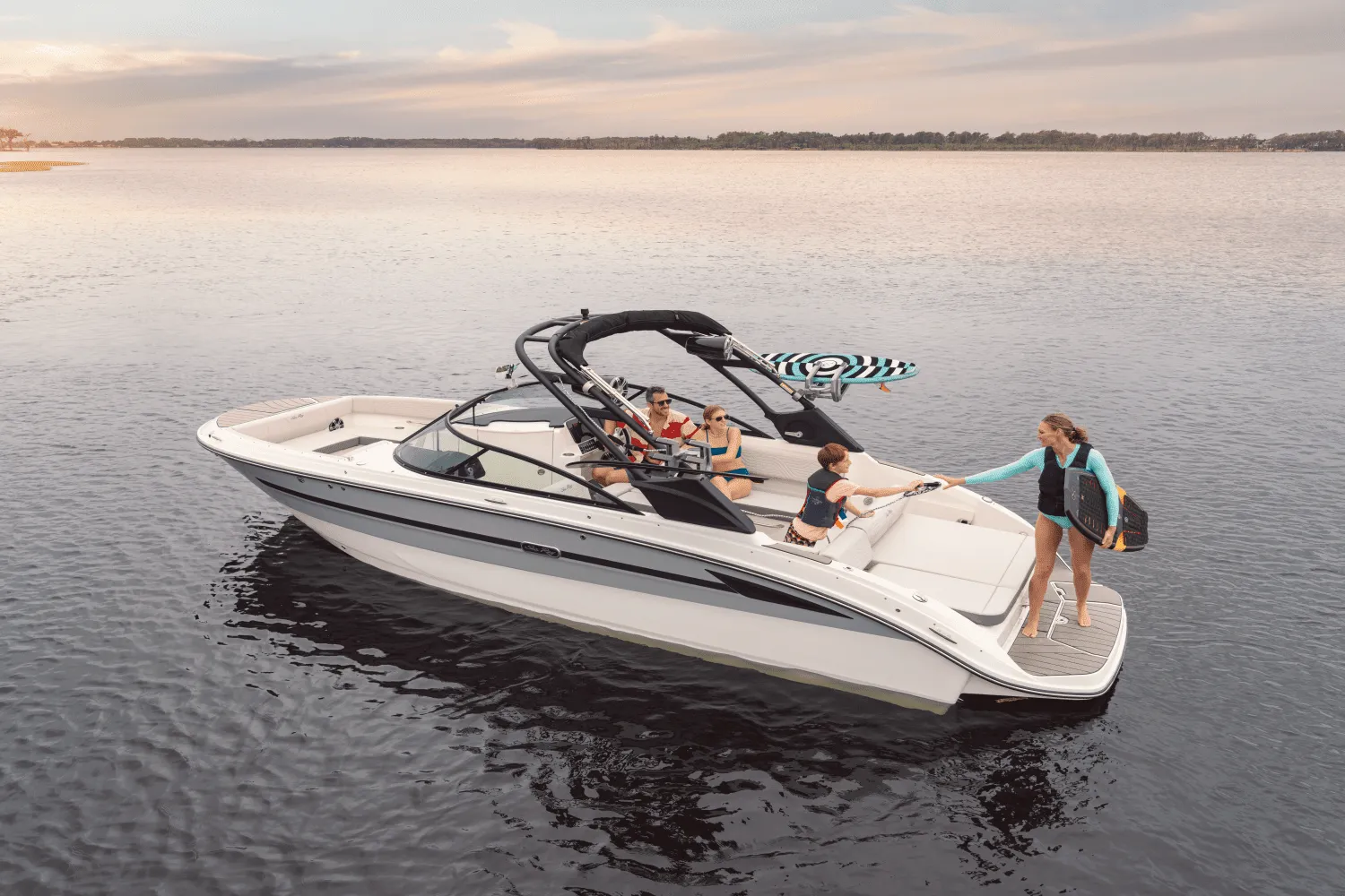 Easy in, Easy Out - The broad swim platofmr has a concealable ladder and manual submersible swim step to give easy acces in and out of the water. A standard bow ladder is also a new feature of the SDX 270 Surf.