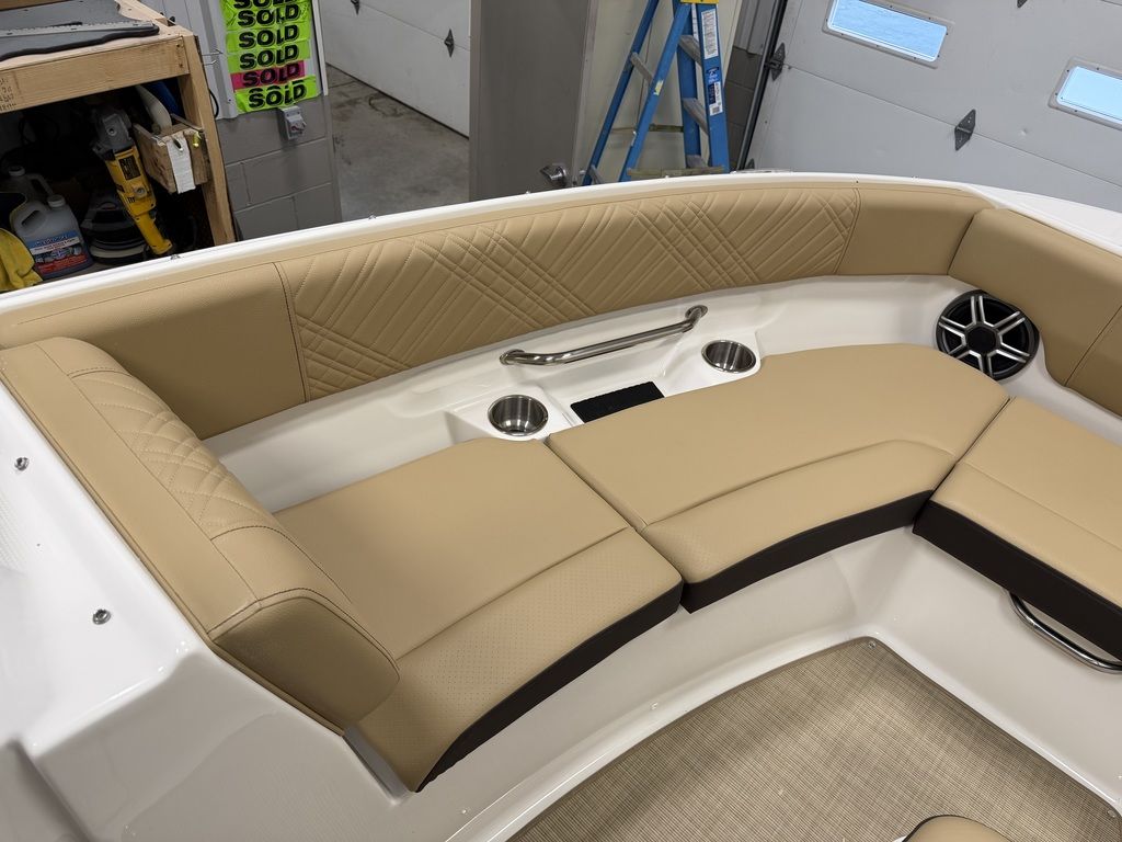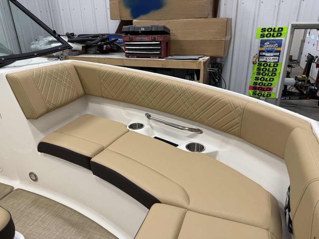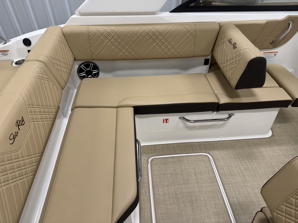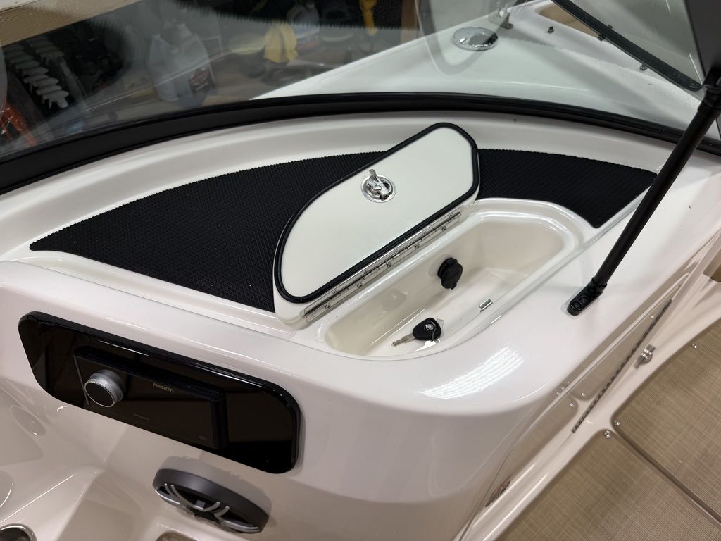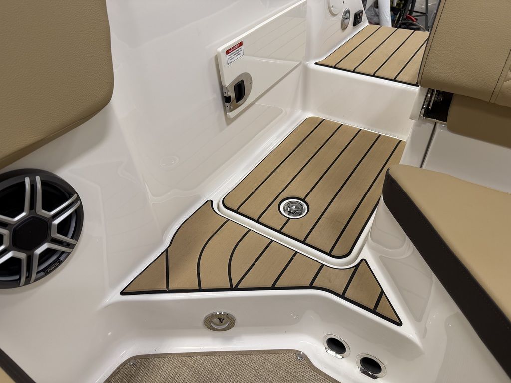 Whether you’re chasing sunrises with friends or pulling tubes on summer afternoons, the SDX 230 delivers a spacious, open layout with thoughtful touches throughout. Plush L-shaped seating in the cockpit and generous lounge space in the bow keep everyone comfortable, while ample storage—including smart in-floor compartments—keeps gear stowed and ready.