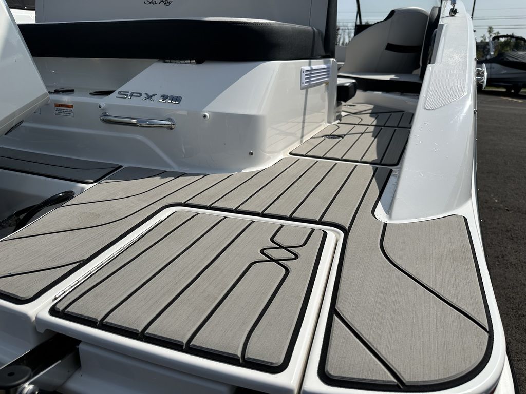 WATERSPORTS FUNThe SPX 210 Outboard embodies the latest and greatest features of Sea Ray style in one sporty package. The standard ski tow pylon provides attachment for tow lines, and the full-sized ski locker compartment in the cockpit floor keeps boards, skis, life jackets and other gear safe and out of the way when not in use. On the integrated swim platform, riders can strap on their gear for their next run or go for a refreshing swim. For more flexibility, a watersports tower is also available.
