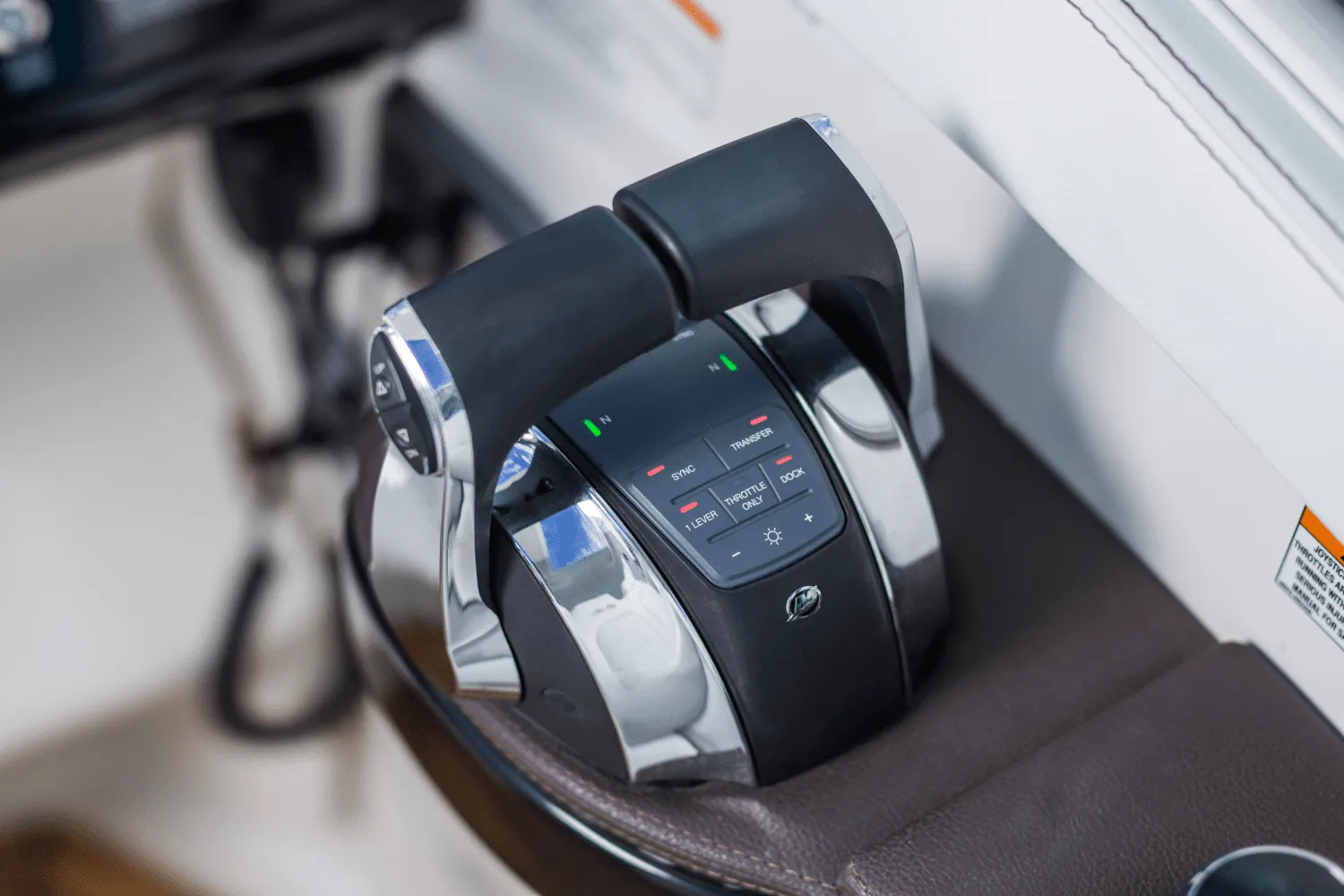 Thrilling Outboard Power - Outboard power comes with zero tradeoff in terms of space, comfort, or enjoyment on the Sea Ray Sundancer 320 Outboard. This boat is powered by standard twin Mercury 350 Verado V10 outboard engines with joystick piloting, SmartCraft Digital Throttle and Shift (DTS) and e-steering.