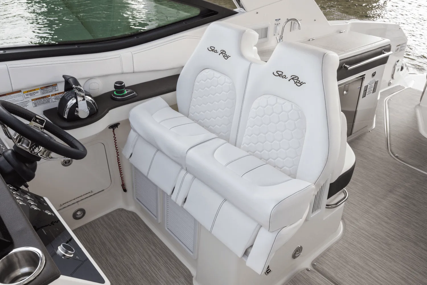 Luxurious and practical, introducing the 2026 Sea Ray Sundancer 320. Experience the difference that comes from design that's equal parts luxurious and practical. From the spacious bow lounging area to the stylish, comfortable cabin, the Sundancer 320 is built to impress. The versatility and seamless flow of indoor and outdoor spaces lend the Sundancer 320 an airy elegance that truly sets it apart from traditional sport crusiers. Key Features Natural Wonder - The Sundancer 320's robust bow lounging and seating area with actuated headrests and armrests allows for perfect comfort underway or at rest.