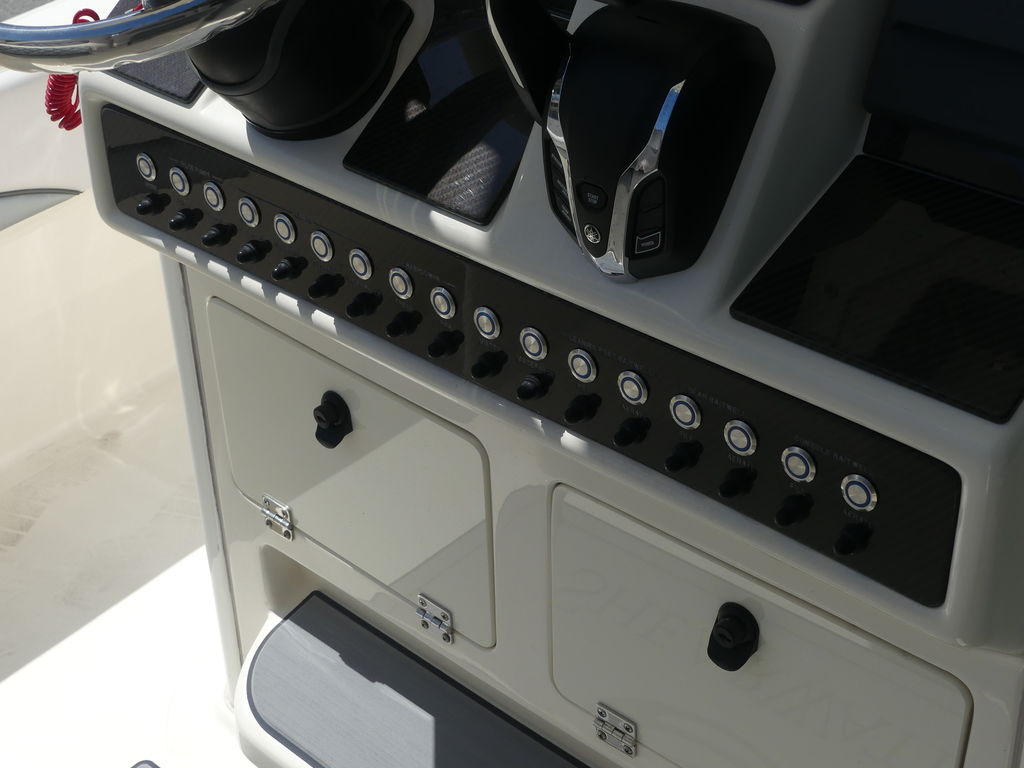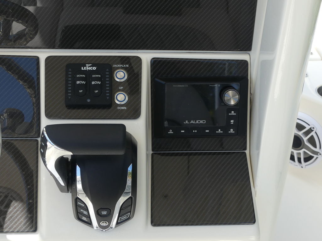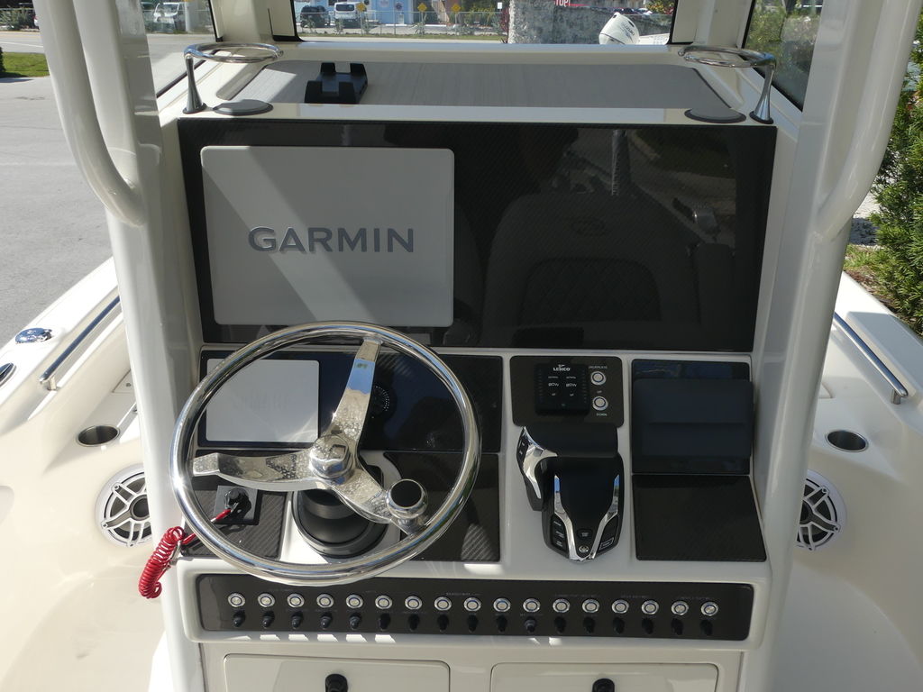 The Helm: Features a sleek, low-profile console with integrated footrests and enough dash real estate for the latest 12" or 16" multi-function displays.