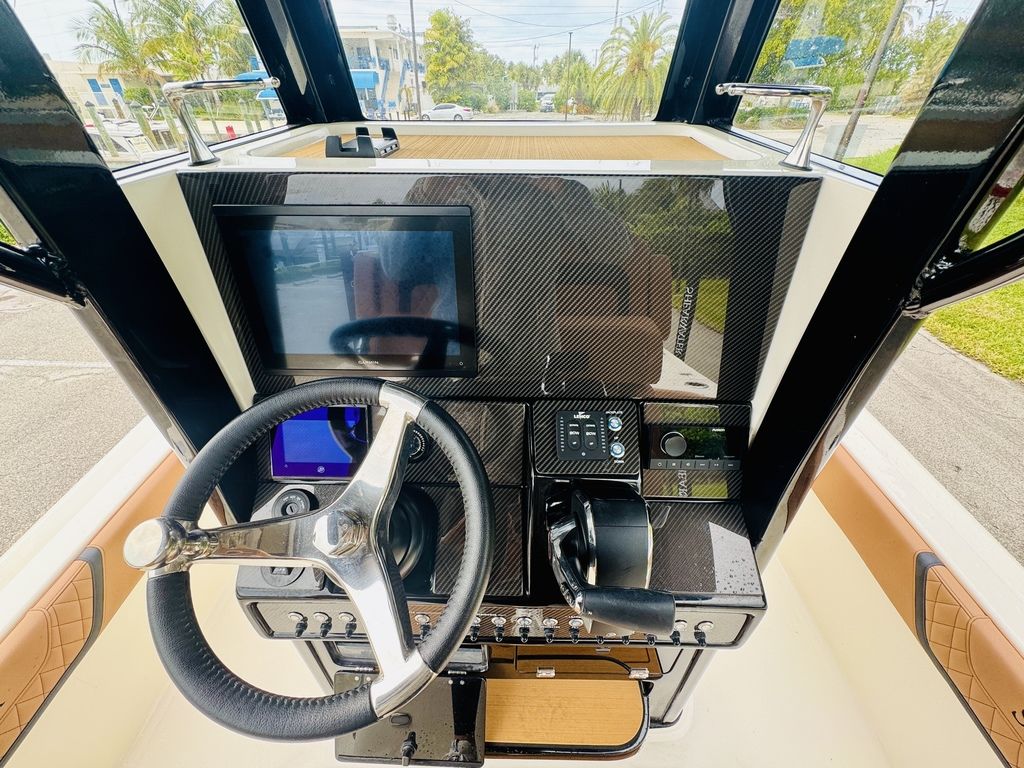 -Digital engine monitoring, tilt steering, and ergonomic helm layout for precise control at all speeds.