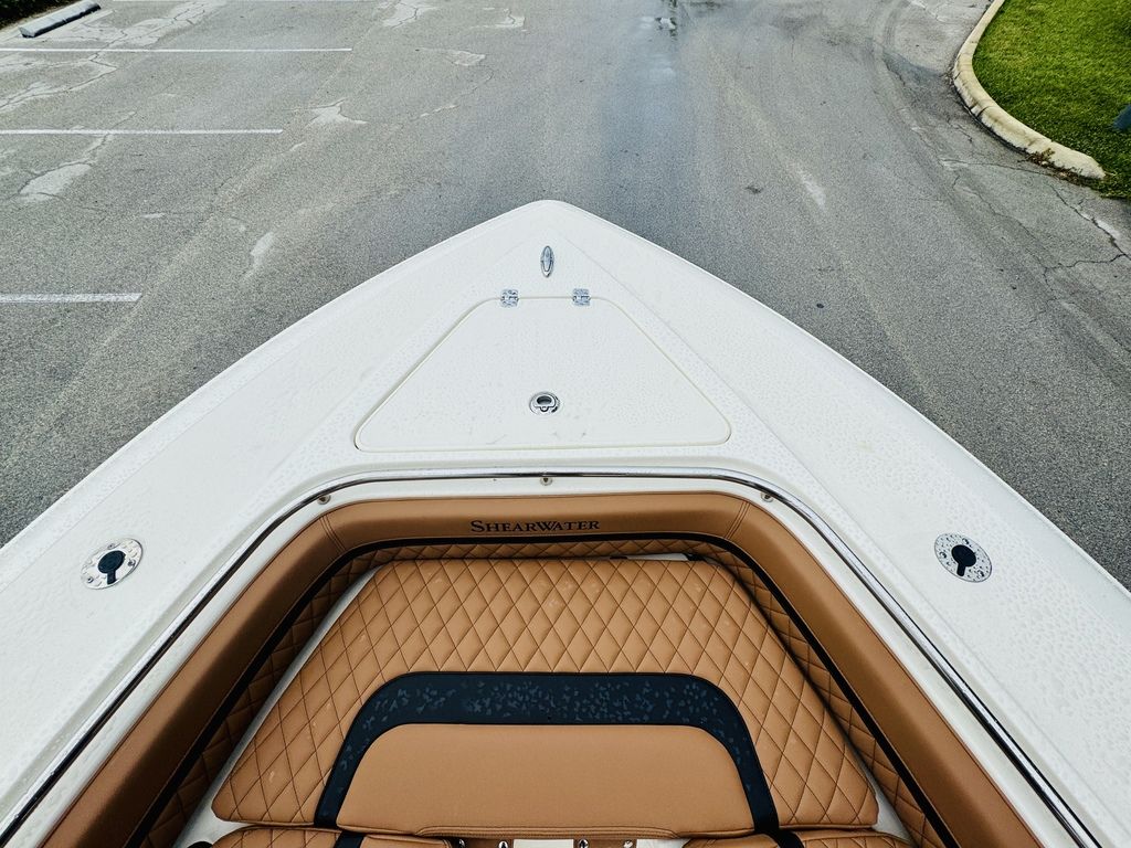 With an overall length of approximately 26 feet and a wide, stable beam, the 260 FLX offers exceptional deck space and fishability without sacrificing shallow-water capability. Built by ShearWater Boats, the hull features advanced composite construction, vacuum-infused materials, and a stepped-hull design that promotes lift, speed, and fuel efficiency. Every detail — from premium hardware to the meticulously finished deck layout — reflects ShearWater’s reputation for innovation, durability, and high-end craftsmanship.