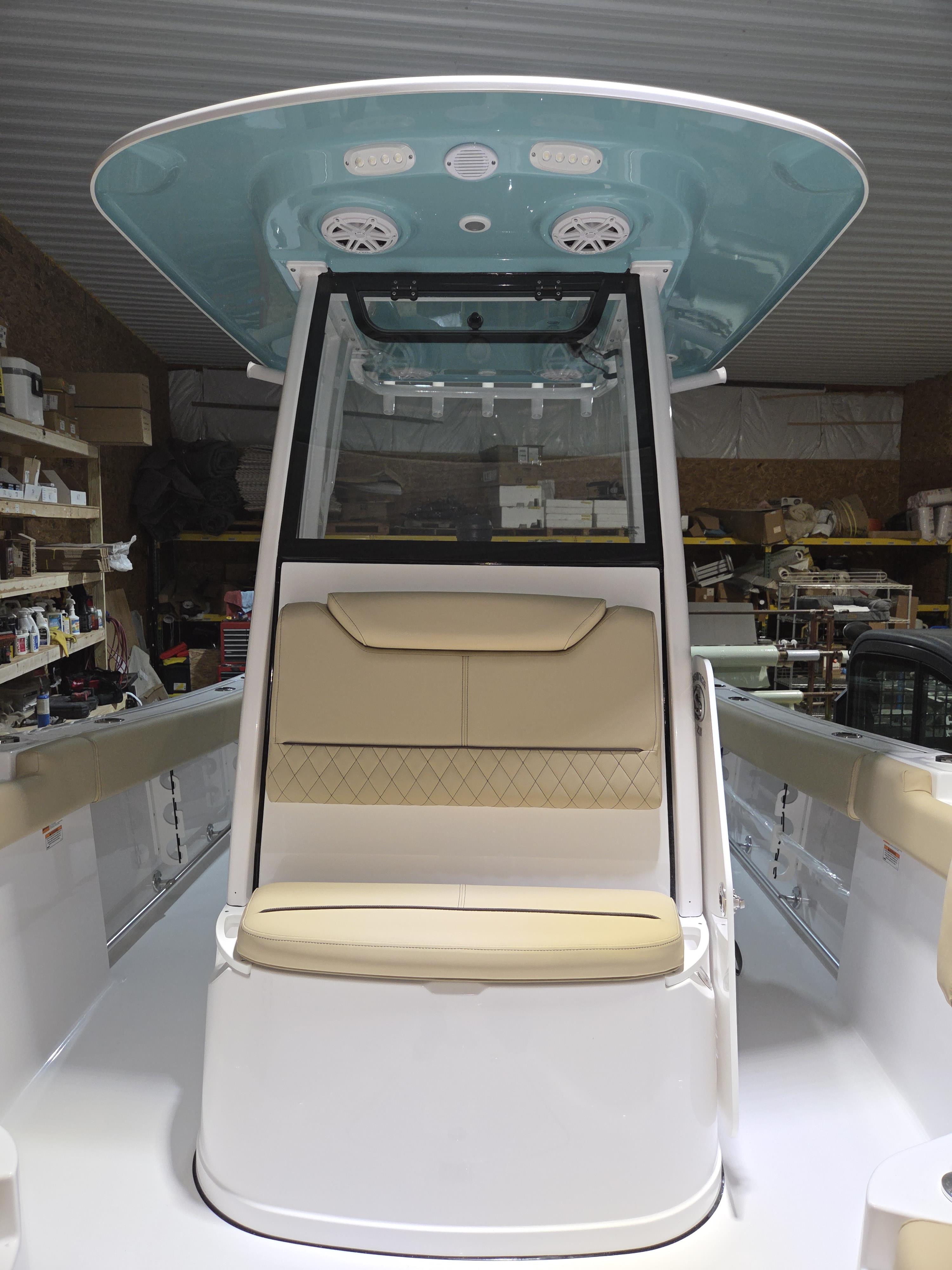 Custom Style: Sea Glass Green hull bottom with a matching hard-top underside and sleek white powder coating.