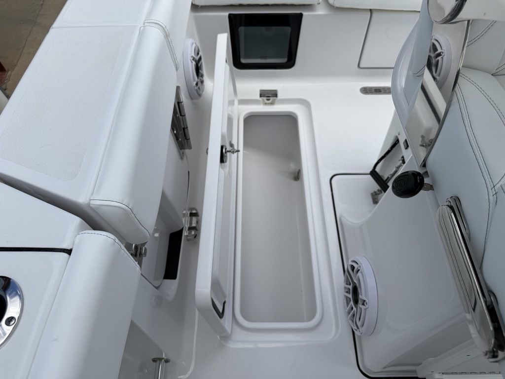 Garmin Apollo™ RA770 Premium Stereo w/ SportTuun Garmin GT15M 600w CHIRP SS Thru-Hull Transducer Garmin VHF 115 Radio w/ Antenna Seakeeper Ride VACS SeaStar Interact DCM Digital Switching System w/ Keypad Integrated Hard-Top Navigation Lights (Lumitec) Porcelain Head w/ Overboard Discharge & Pump Out 68 Quart Built-In Console Cooler Seat YETI Tundra 65qt. Cooler with Pad & Tie Downs (2) 16 Gallon Aft Aquarium Livewells (2) Macerated In-Deck Fish Boxes 20 Gallon Freshwater Tank w/ Washdown 36 Quart Aft Sandbar Cooler Aft Anchor Storage Box w/ Anchor & Line