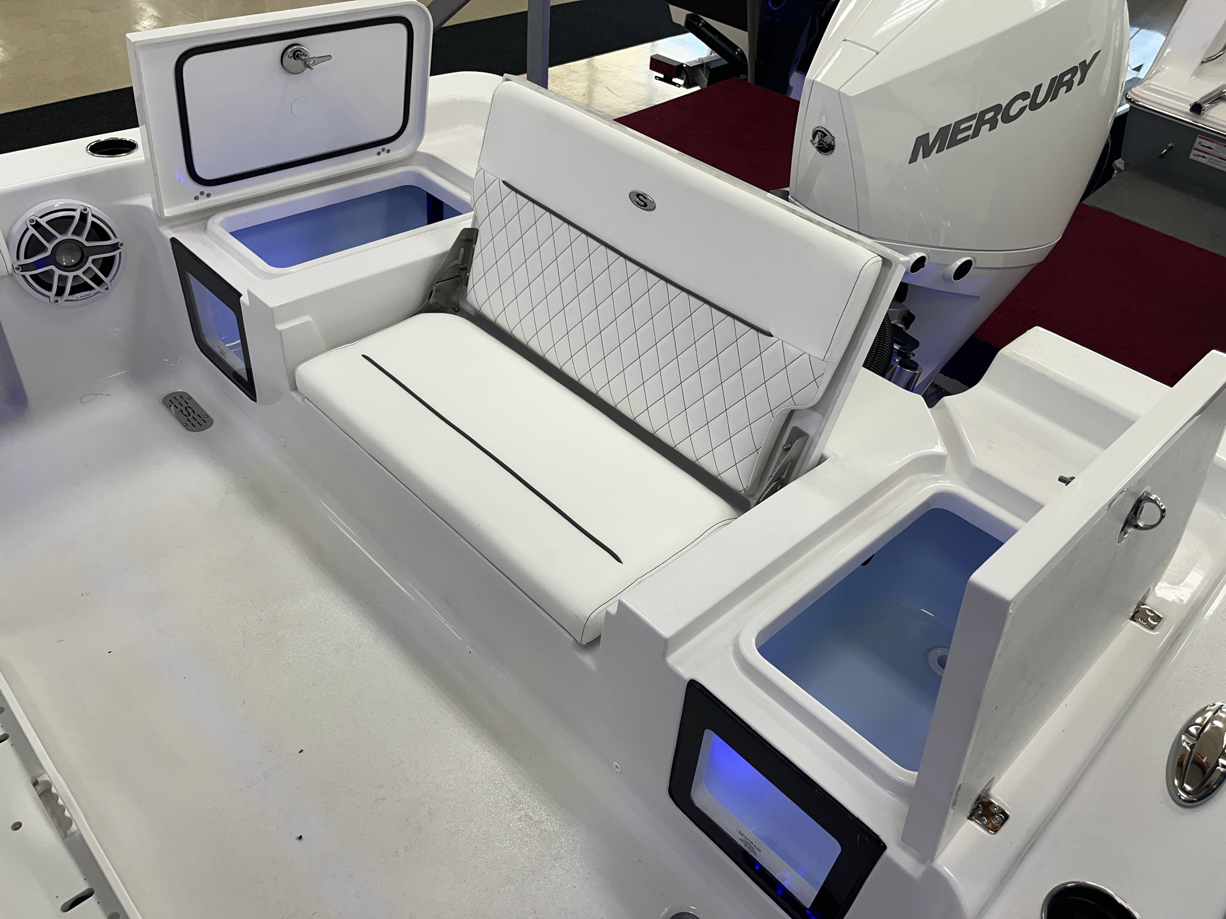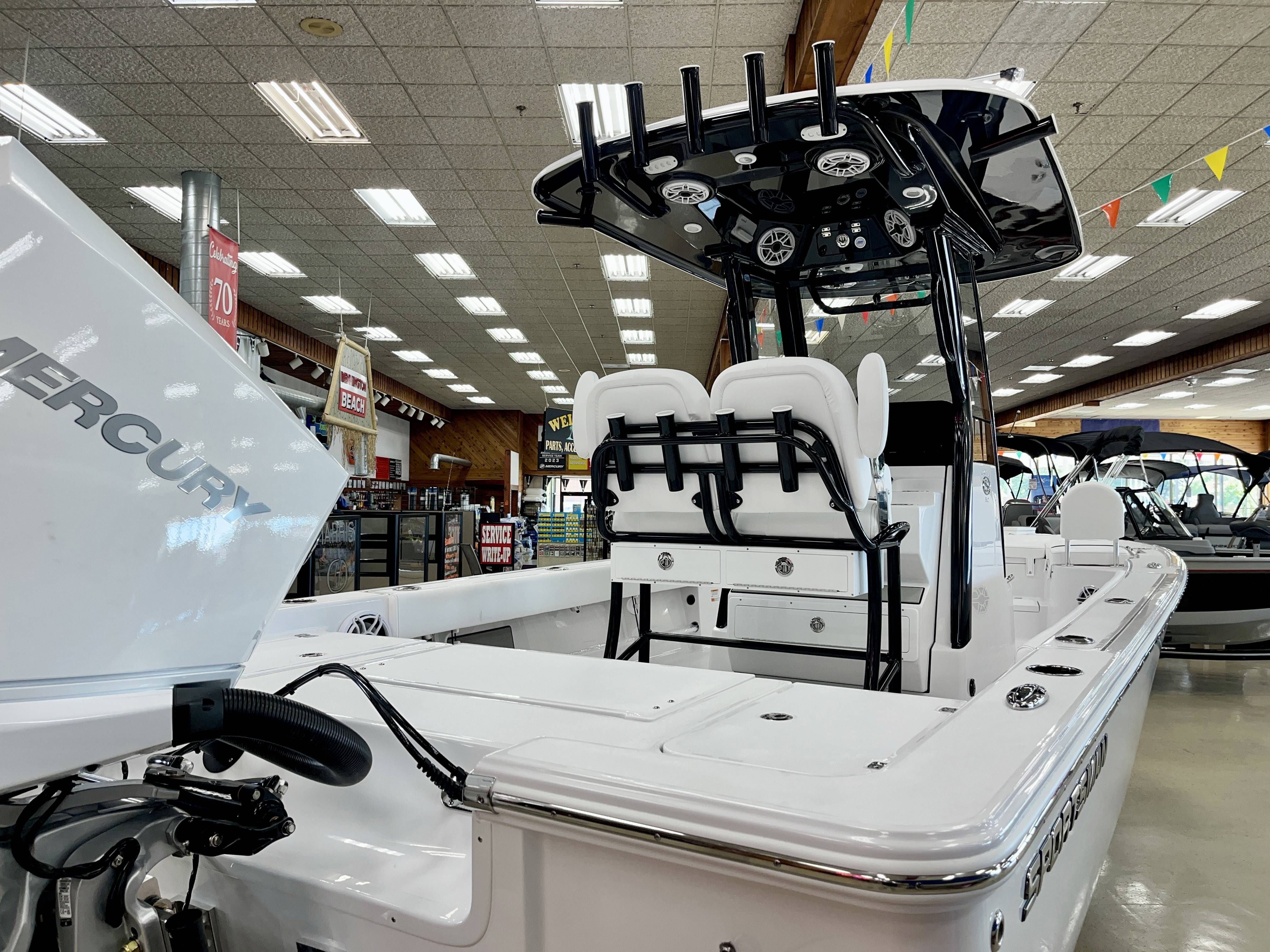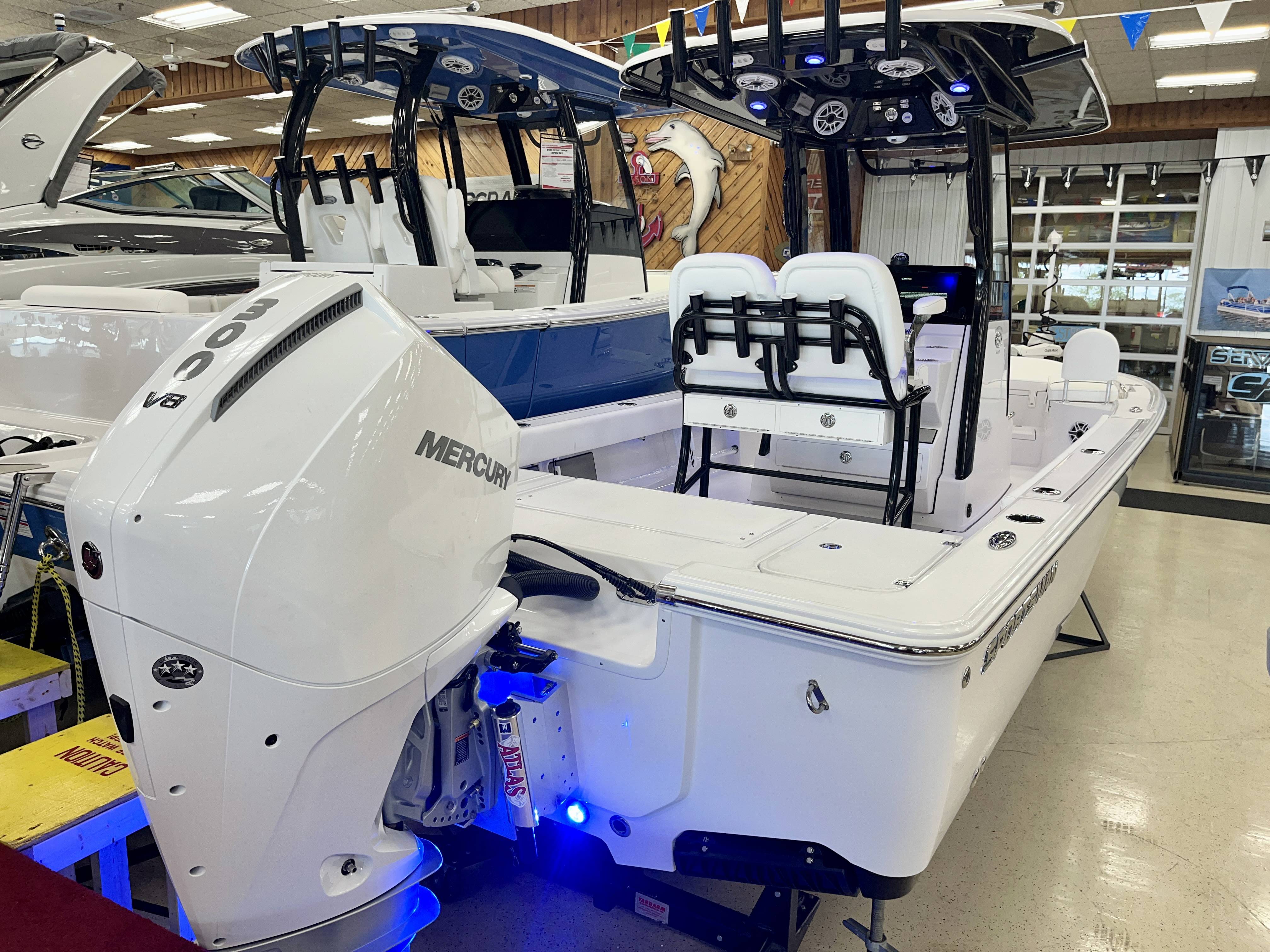 2026 Sportsman Masters 247 powered by a Mercury 300XL DTS CF!Factory Installed Options:Exterior- white hull sides with jet black hull bottomInterior- serenity sileather icecap whiteFiberglass console with liner & 17 gallon livewell seatFiberglass hard top with LED lightingJet black hard top undersideBlack powder coatingBow cushion set/sundeckRemovable bow back restPremium dual chair leaning post with flip up bolstersSlide out track for Yeti coolerUnder leaning post tackle storage2 Garmin 12" GPS screens with built in WiFiGarmin Apollo RA 770 stereoEdson 13 SS comfort grip steering wheel with power knob3 battery, 2 bank Promariner Protournament elite chargerGarmin Force Kraken trolling motor 75" (white)