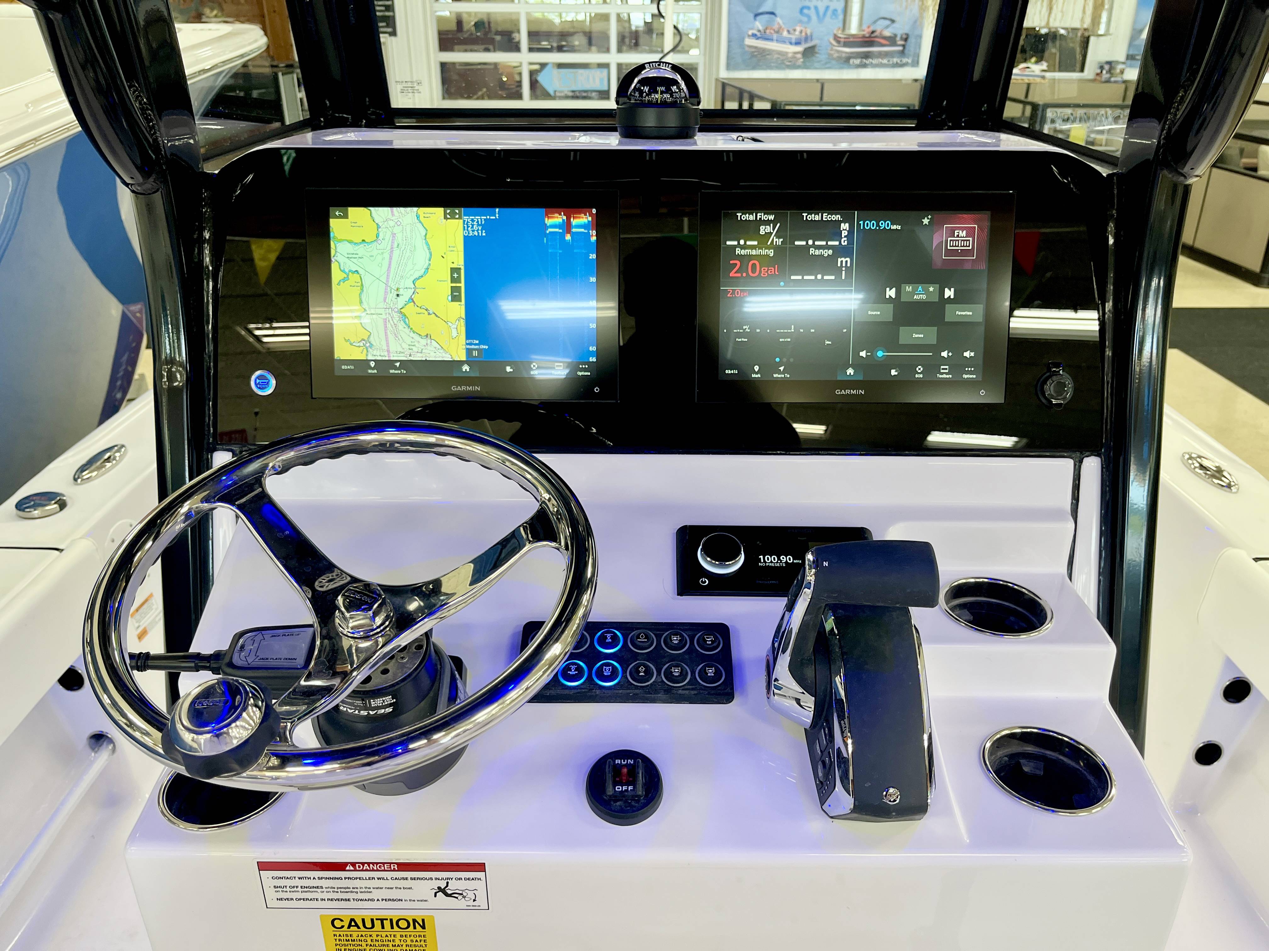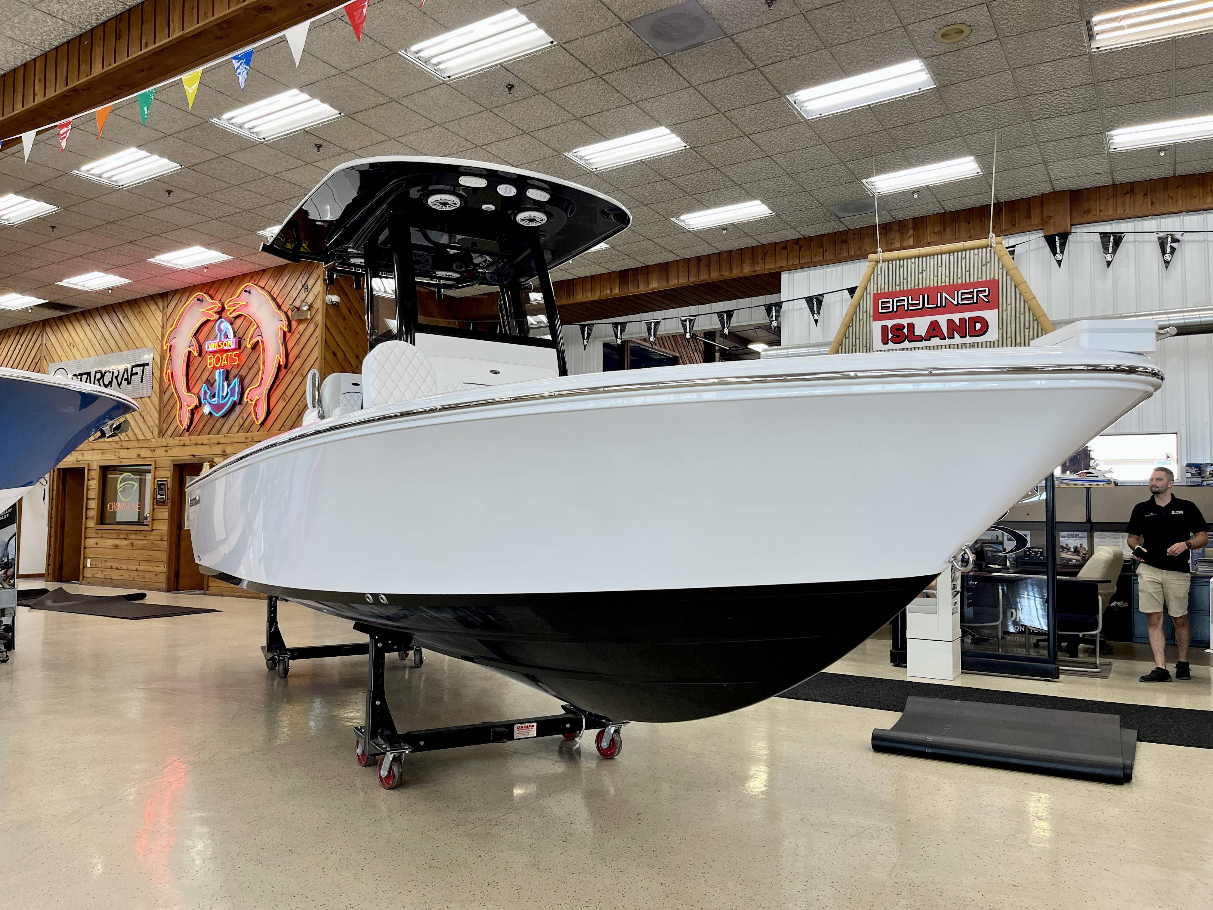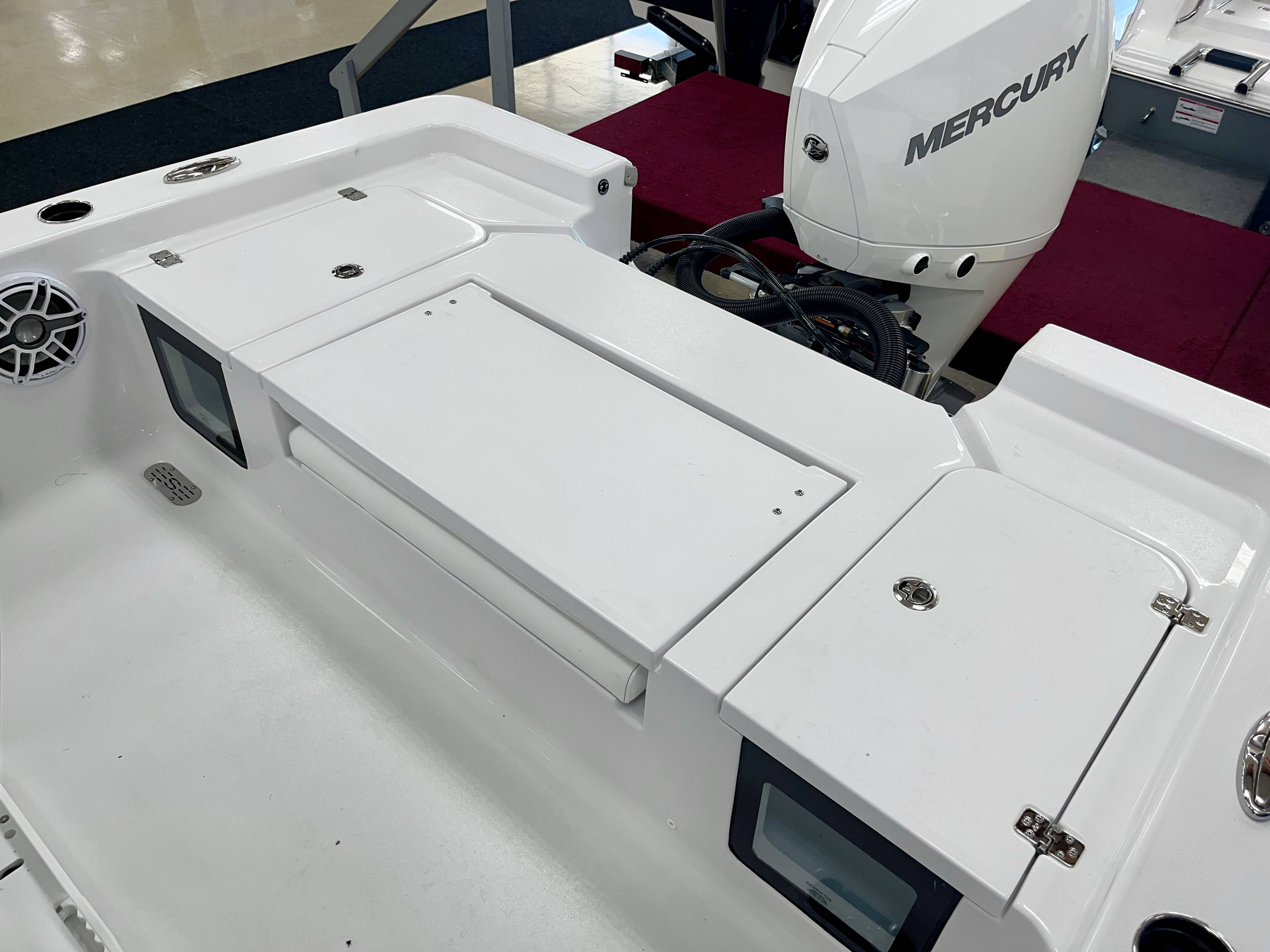 2026 Sportsman Masters 247 powered by a Mercury 300XL DTS CF!Factory Installed Options:Exterior- white hull sides with jet black hull bottomInterior- serenity sileather icecap whiteFiberglass console with liner & 17 gallon livewell seatFiberglass hard top with LED lightingJet black hard top undersideBlack powder coatingBow cushion set/sundeckRemovable bow back restPremium dual chair leaning post with flip up bolstersSlide out track for Yeti coolerUnder leaning post tackle storage2 Garmin 12" GPS screens with built in WiFiGarmin Apollo RA 770 stereoEdson 13 SS comfort grip steering wheel with power knob3 battery, 2 bank Promariner Protournament elite chargerGarmin Force Kraken trolling motor 75" (white)