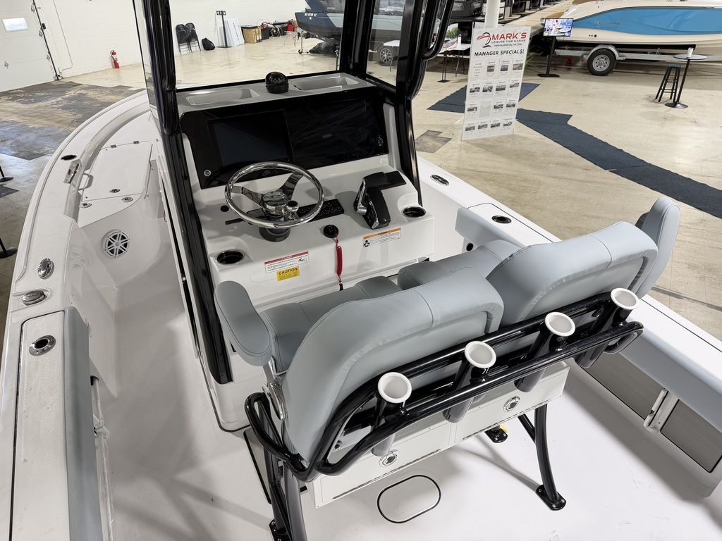 Elevating Bay Boat Performance and StyleThe Masters 227 Bay Boat represents a significant leap forward in design and functionality, building on the strengths of its predecessors to offer a superior boating experience. The design team aimed to maximize cockpit space, incorporate advanced features and improve overall aesthetics, resulting in a vessel that excels in both form and function. The Masters 227 features expanded cockpit space behind the leaning post for greater freedom of movement, a redesigned console accommodating d-tubing for robust support and sleek lines, an integrated tempered glass windshield for improved visibility and protection and subtle yet impactful improvements throughout, elevating both style and utility.