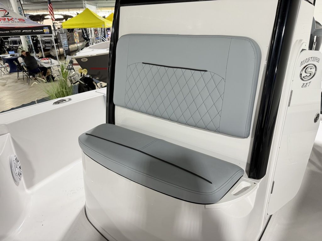 Elevating Bay Boat Performance and StyleThe Masters 227 Bay Boat represents a significant leap forward in design and functionality, building on the strengths of its predecessors to offer a superior boating experience. The design team aimed to maximize cockpit space, incorporate advanced features and improve overall aesthetics, resulting in a vessel that excels in both form and function. The Masters 227 features expanded cockpit space behind the leaning post for greater freedom of movement, a redesigned console accommodating d-tubing for robust support and sleek lines, an integrated tempered glass windshield for improved visibility and protection and subtle yet impactful improvements throughout, elevating both style and utility.