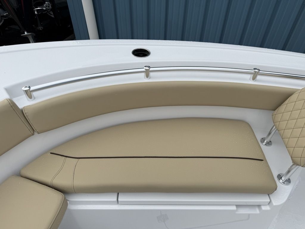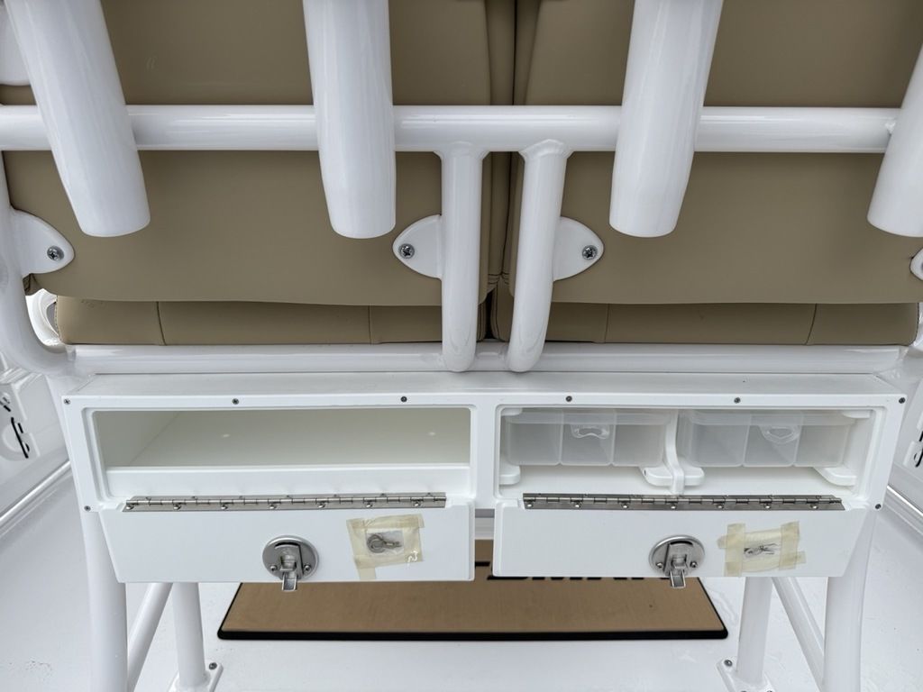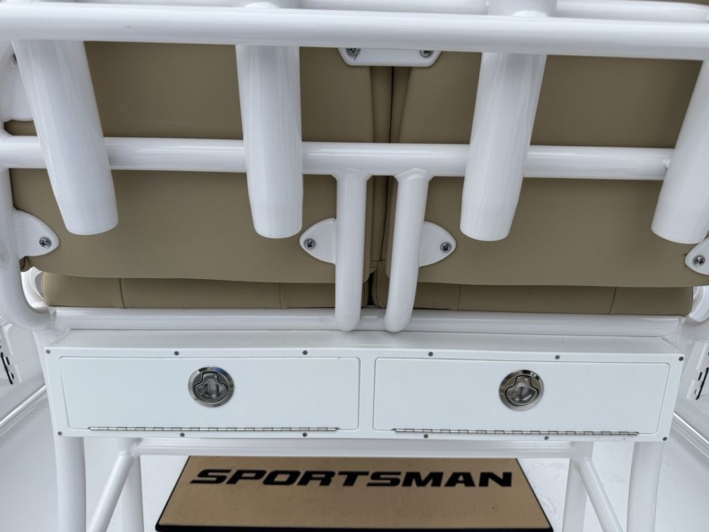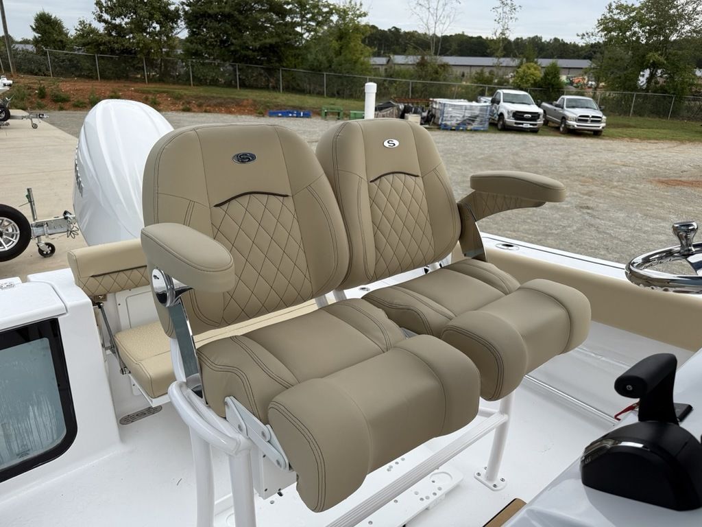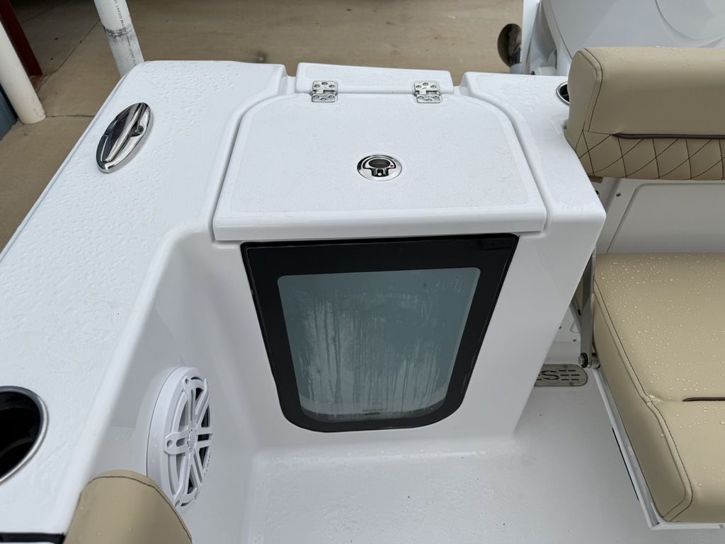 SportLink® Electronics Integration System Dual Battery Configuration w/ Switch & Trays Fiberglass Hard-Top w/ Integrated D-Tubing Frame Garmin Apollo™ RA670 Premium Stereo w/ SportTuun Garmin GT12M 350w CHIRP Bronze Thru-Hull Transducer Garmin VHF 115 Radio w/ Antenna Integrated Hard-Top Navigation Lights (Lumitec) Integrated Tempered Glass Windshield w/ Vent JL Audio M3-650X Gloss White Sport Grille Speakers Seakeeper Ride VACS Bow Cushion Set w/ Bolsters Bow Filler Board w/ Cushion Deluxe Leaning Post w/ Flip Up Bolsters Rear Fold Down Seat w/ Access Removable Bow Backrest 10 Gallon Freshwater Tank w/ Washdown 20 Quart Built-In Console Cooler Seat 25 Gallon Aquarium Livewell King Fish Rod Holders Raw Water Washdown 10-Year Hull Warranty 70 Gallon Fuel Tank w/ Fuel Level Sensor Built-In Swim Platform w/ 4-Step Ladder Dual Fuel Fills NMMA Certified Port and Starboard Toe Rail Recessed Bow Hand Rails Stern Anchor Storage Box w/ Anchor & Line Total Access Hatch Trolling Motor Battery Storage