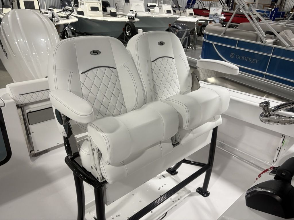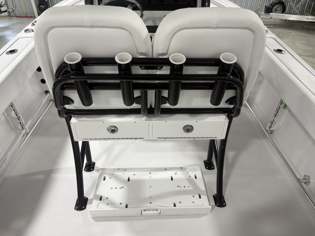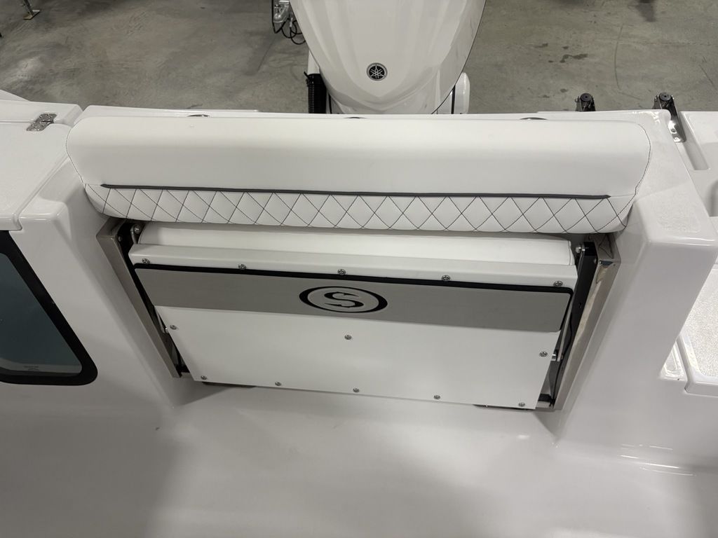 Garmin Apollo™ RA670 Premium Stereo w/ SportTuun Garmin GT12M 350w CHIRP Bronze Thru-Hull Transducer Garmin VHF 115 Radio w/ Antenna JL Audio M3-650X Gloss White Sport Grille Speakers SeaStar Interact DCM Digital Switching System w/ Keypad Seakeeper Ride VACS SportLink® Electronics Integration System Stainless Steel Steering Wheel w/ Knob Dual Battery Configuration w/ Switch & Trays 20 Quart Built-In Console Cooler Seat 15 Gallon Freshwater Tank w/ Washdown 25 Gallon Aquarium Livewell 106 Gallon Fuel Tank w/ Fuel Level Sensor 10-Year Hull Warranty NMMA Certified