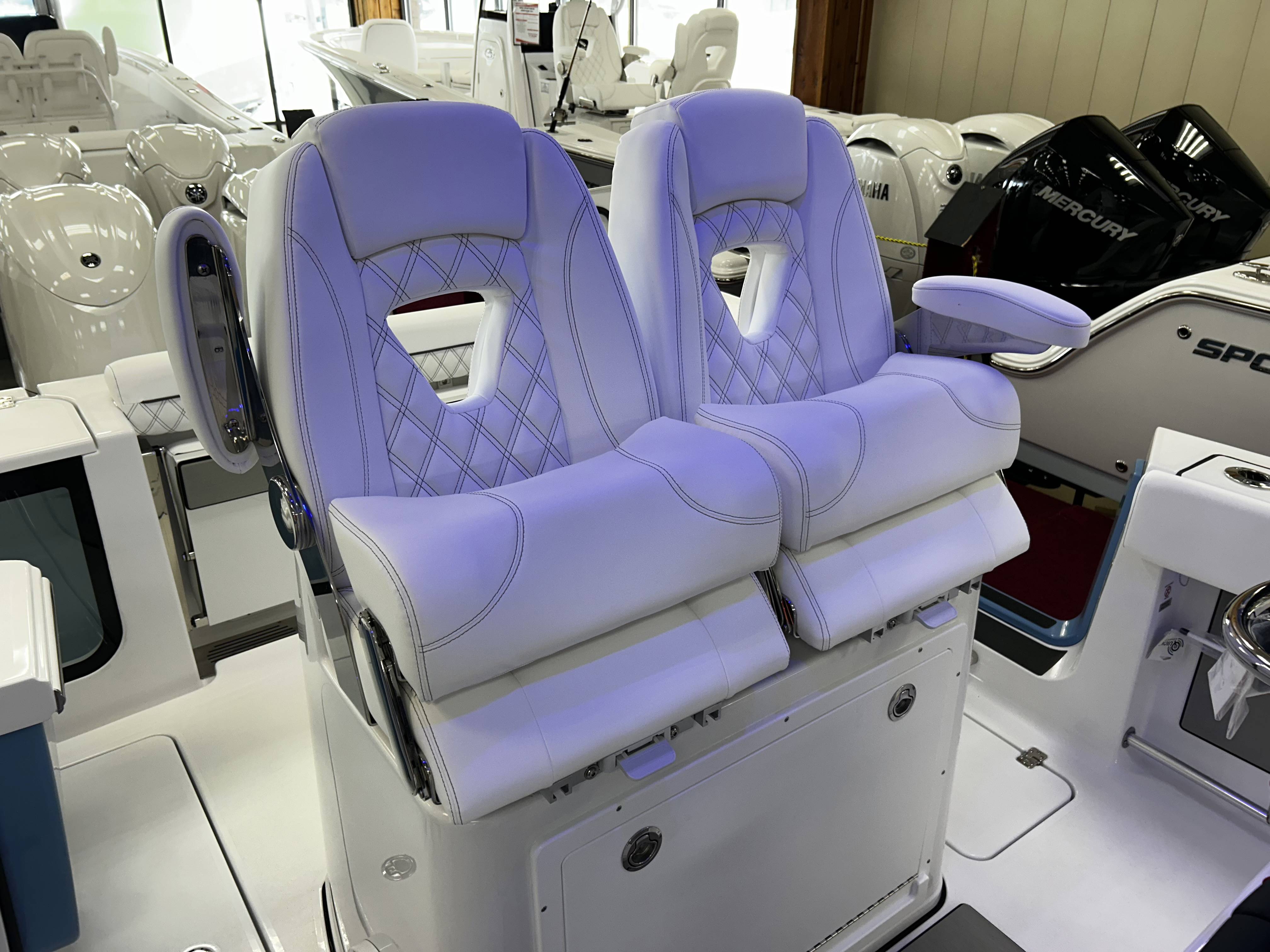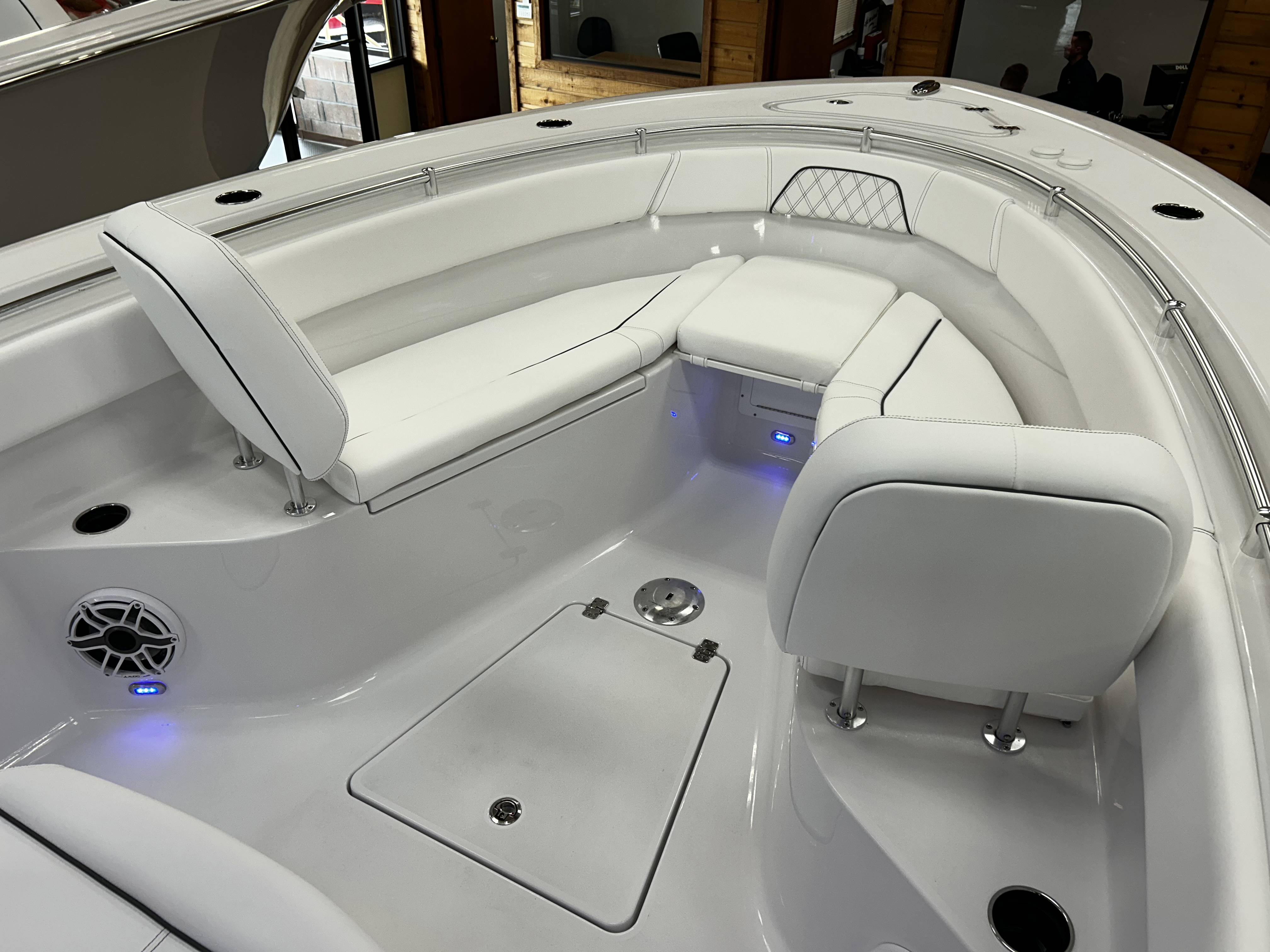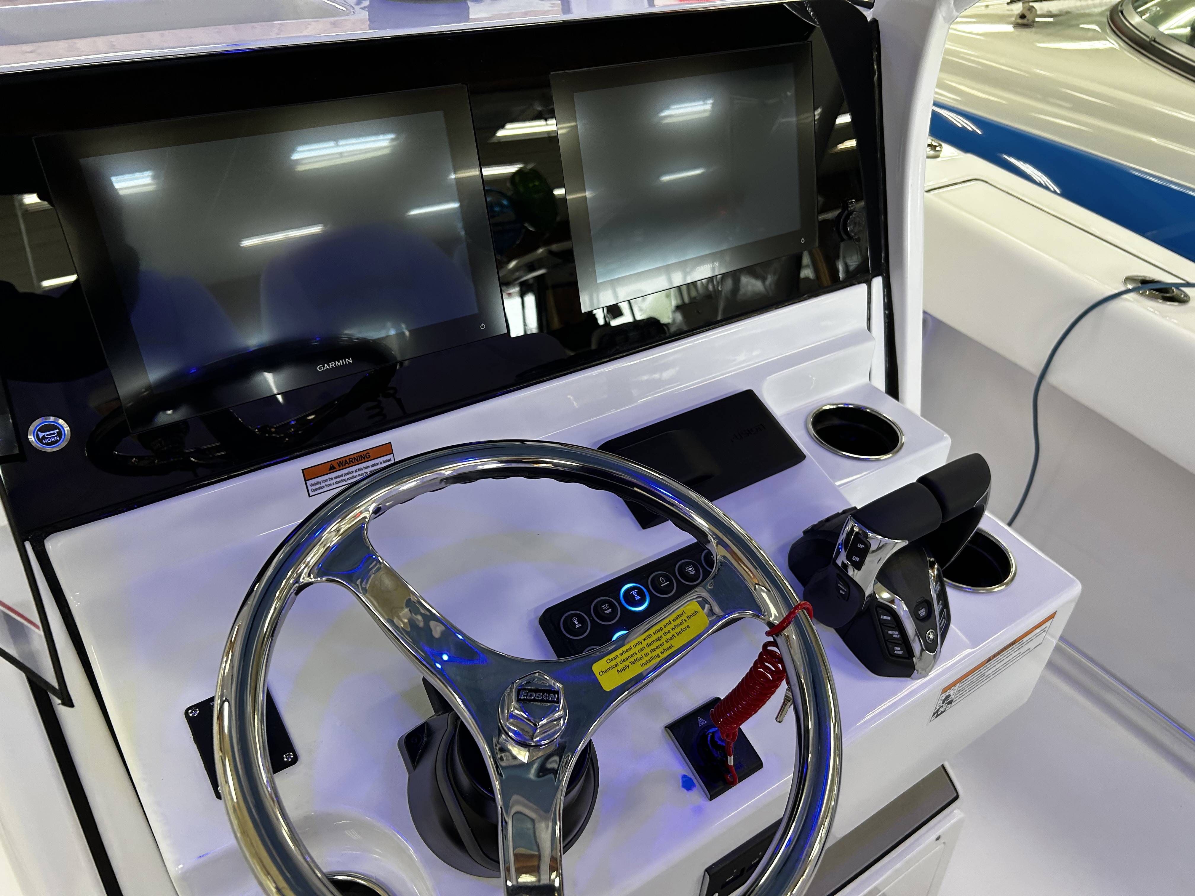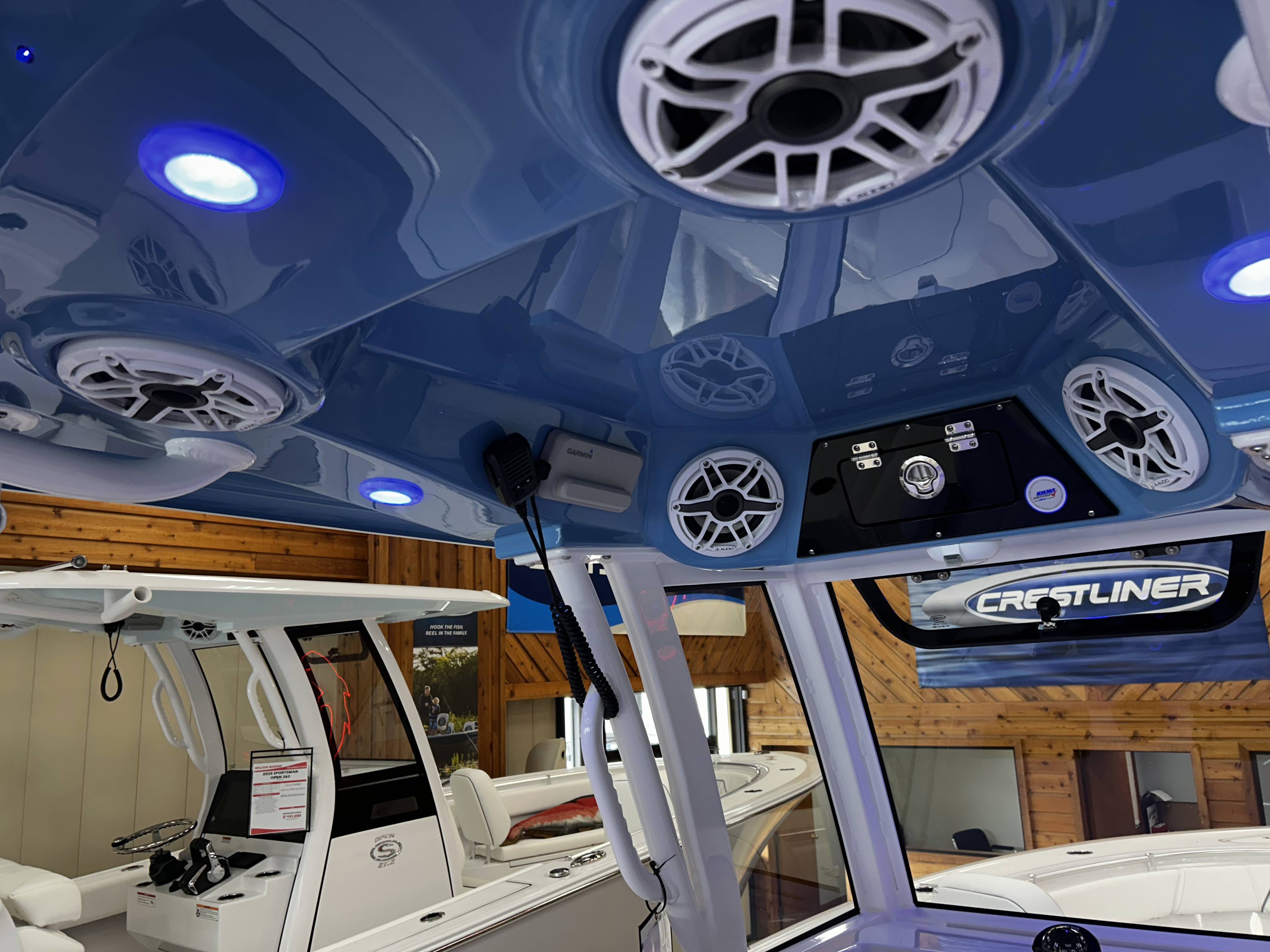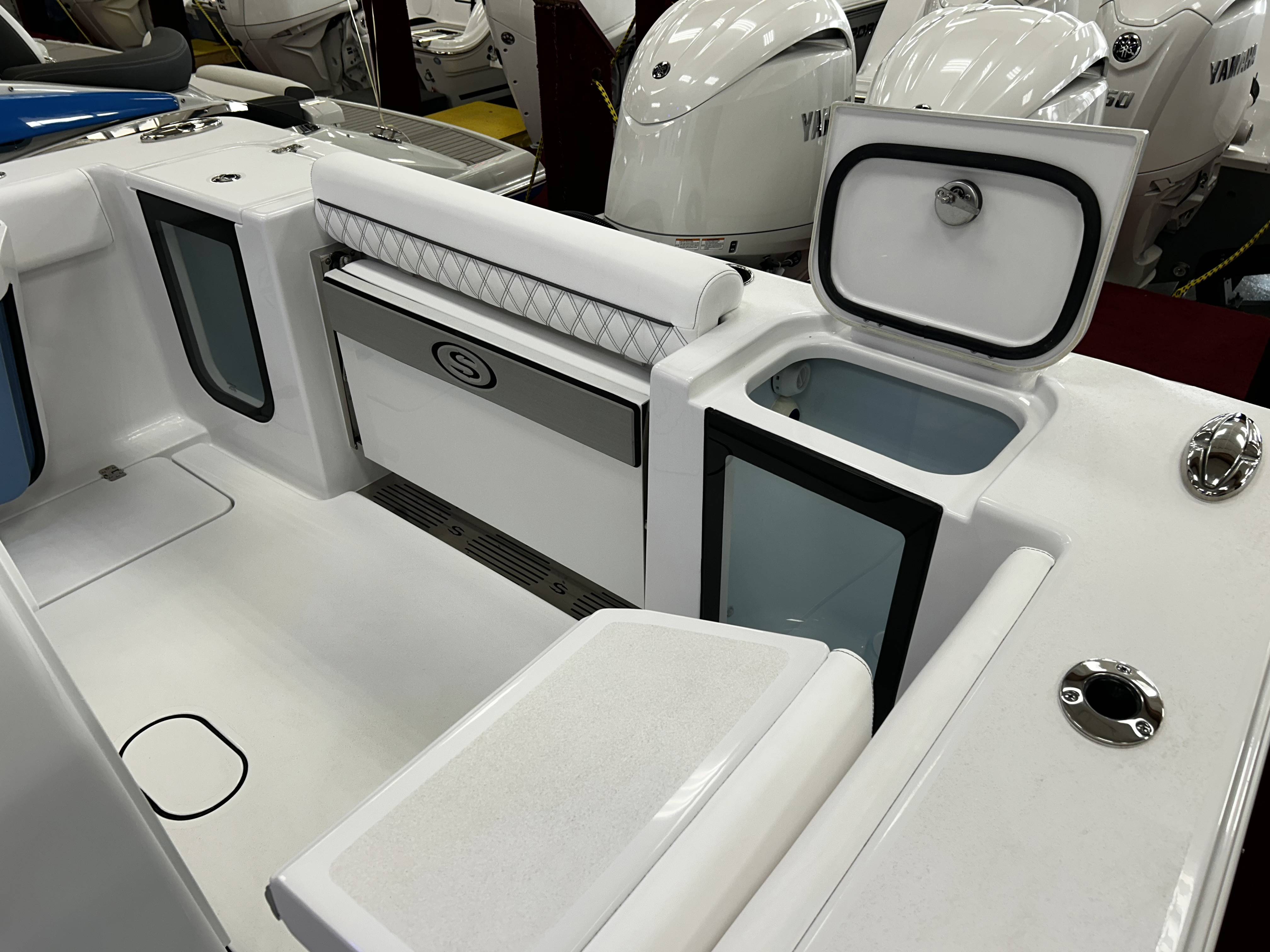 2026 Sportsman Open 262 powered by Yamaha twin F200s!Factory Installed Options:Exterior- harbor haze blueInterior- serenity sileather icecap whiteFiberglass console and cooler seatFiberglass hard top with LED lightingHard top underside color- harbor haze blueWhite powder coatingFiberglass leaning post with dual premium chairs and tackle box2- Garmin 12" GPS screens with built in WIFIEdson 13SS comfort grip steering wheel with power knobPromariner Protournament Elite 4 bank battery chargerTrolling motor plug, harness & adapterRemovable table with bow mount
