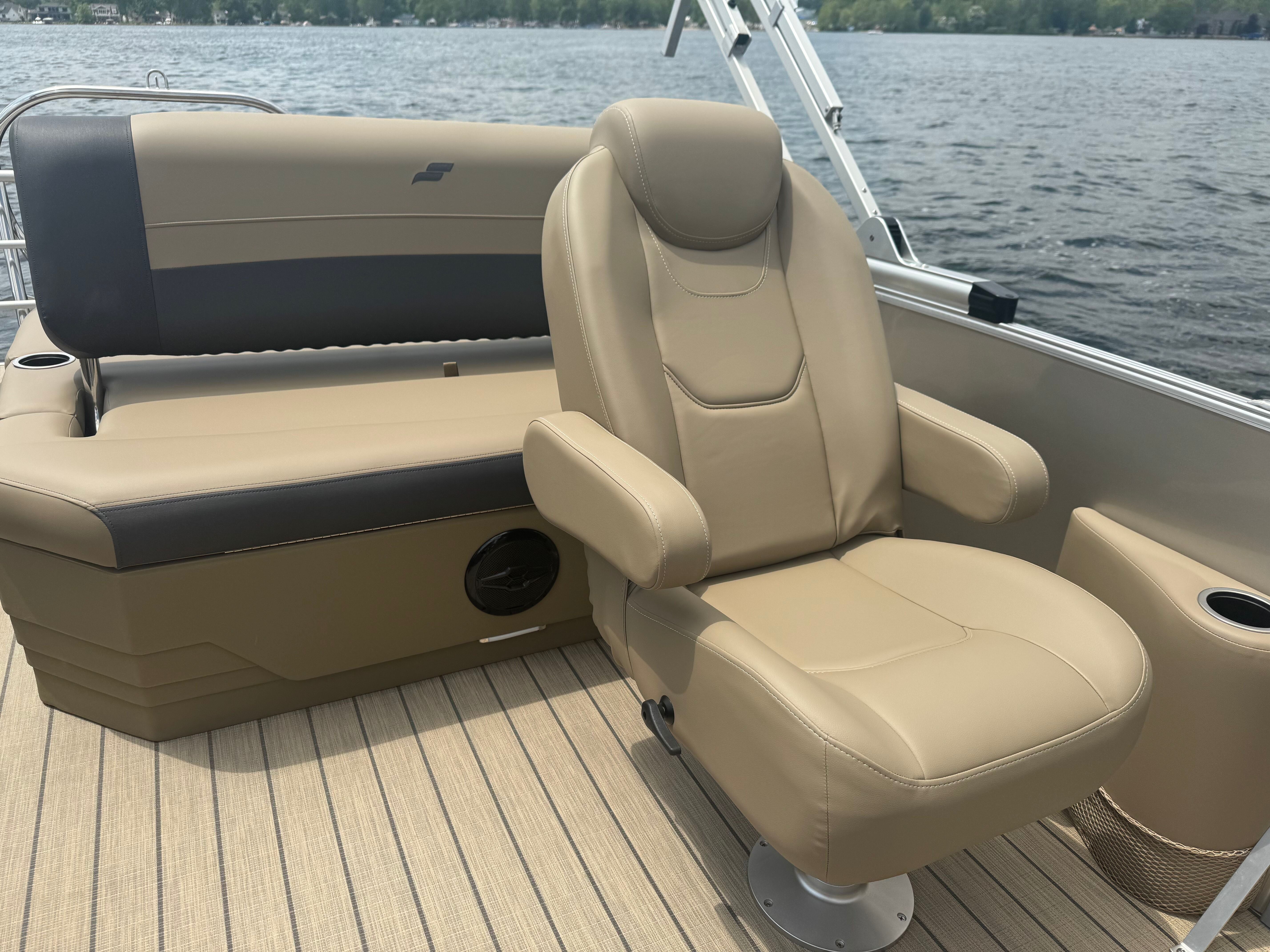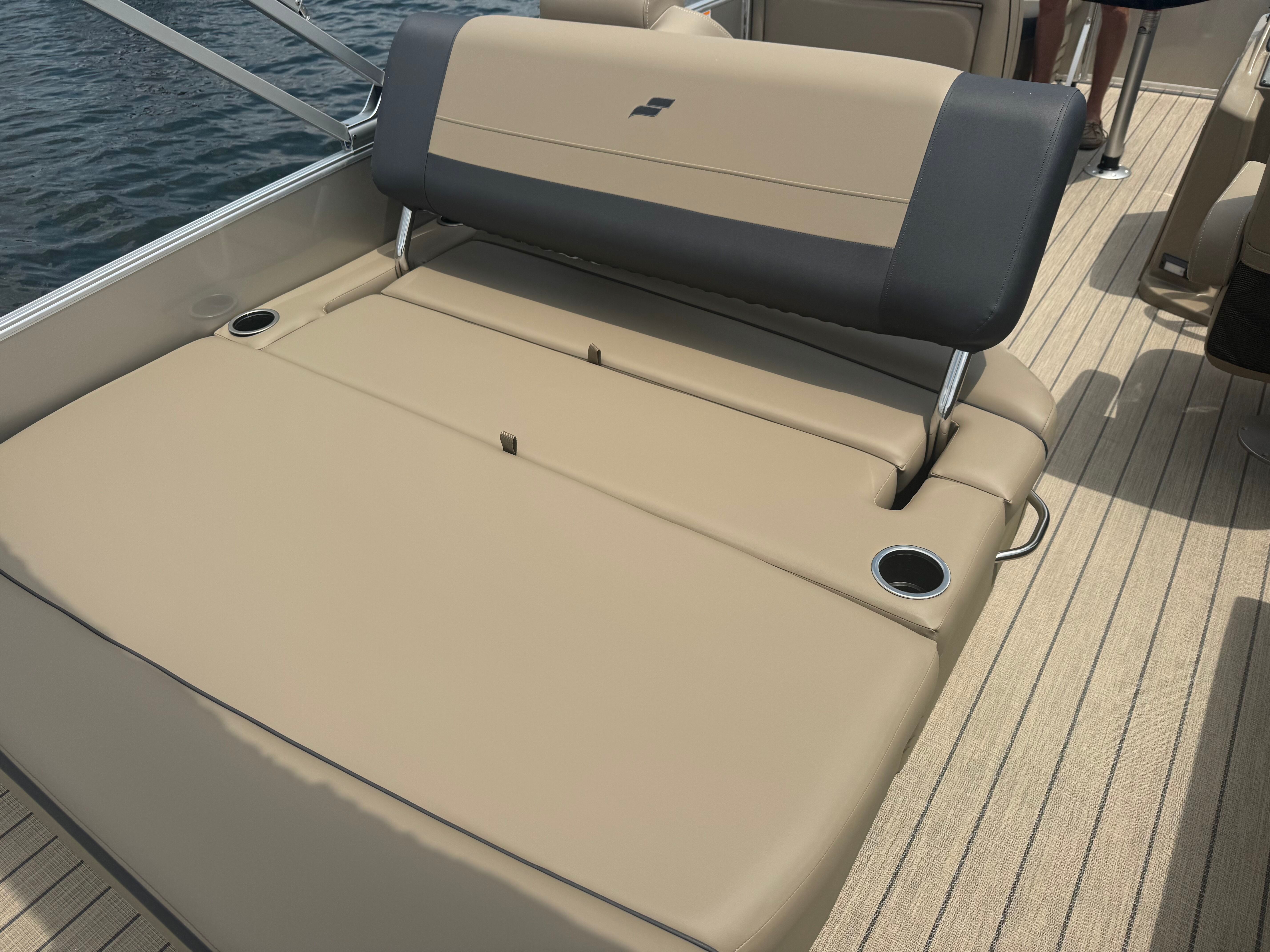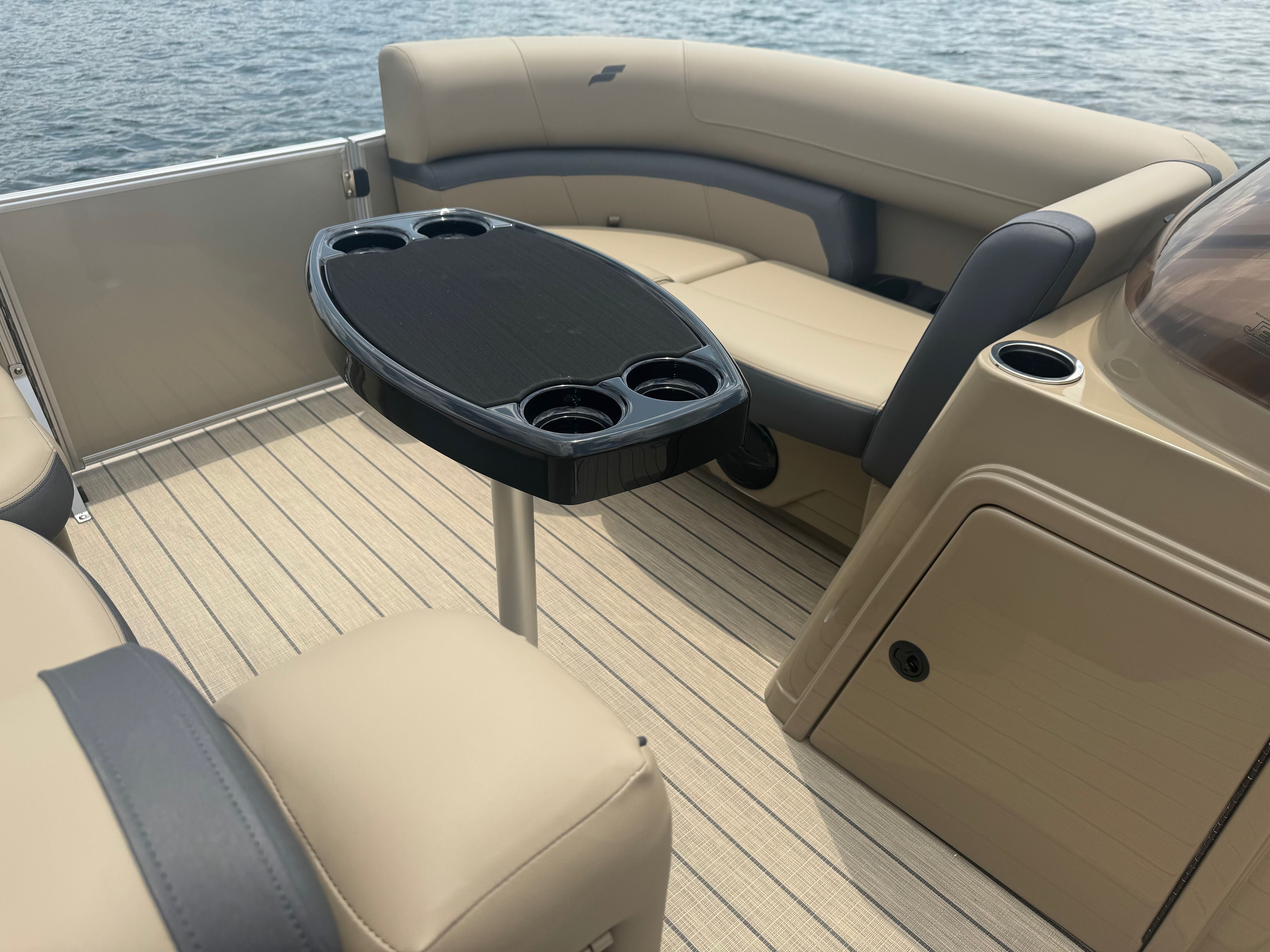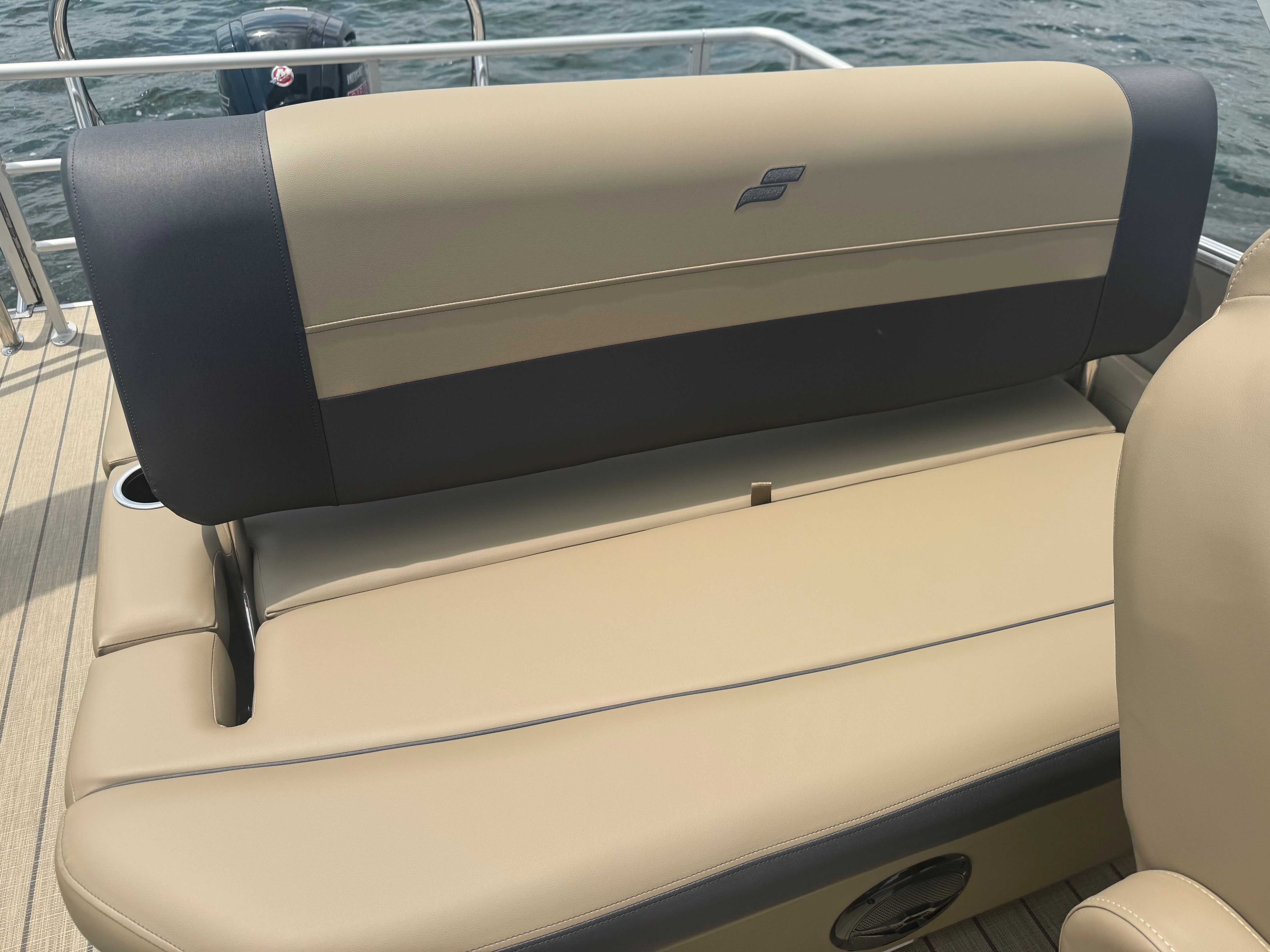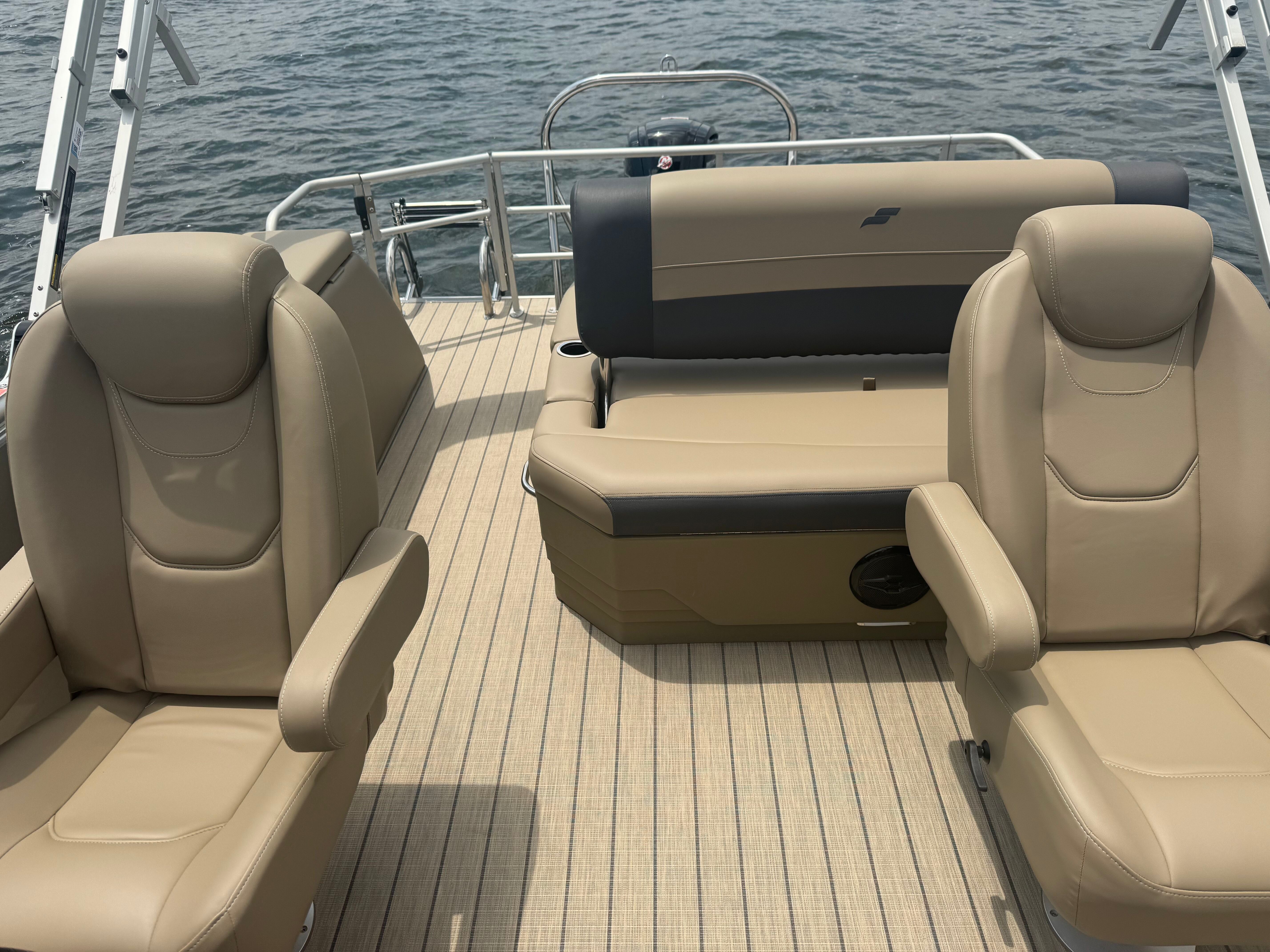 Stern rail enclosure. High back helm chair. Hydraulic steering. Mood lights. Helix 5. Teak weave. Upgraded power bimini top. Depth gauge. Trim gauge. Tach w/hour meter. Fuel/water filter. Ski tow bar. Performance strakes and shield. Mercury 115HP PRO XS 4S CT EFI
