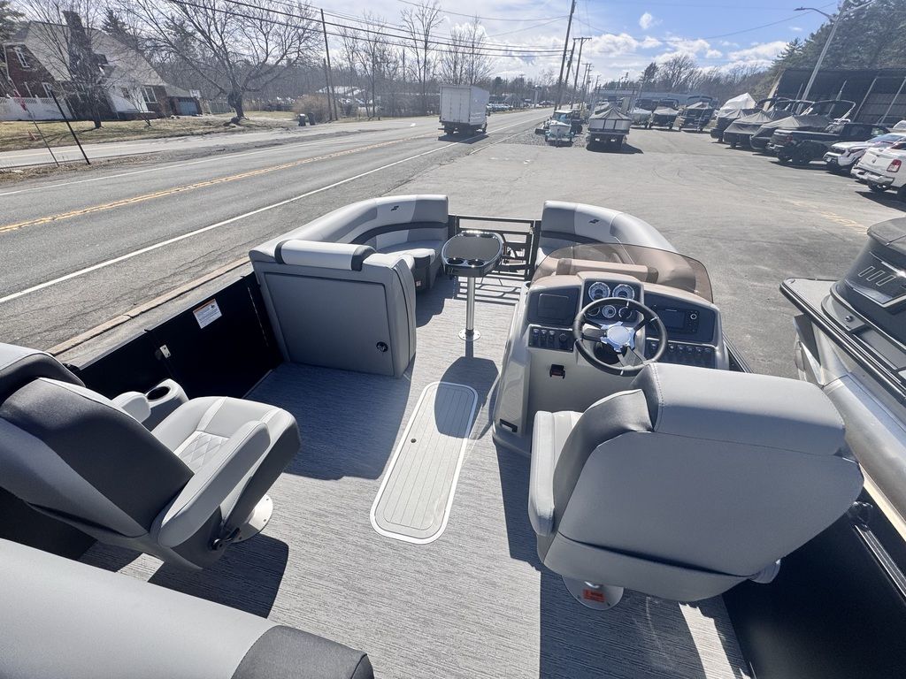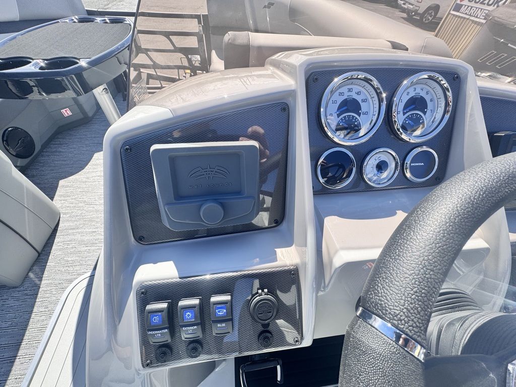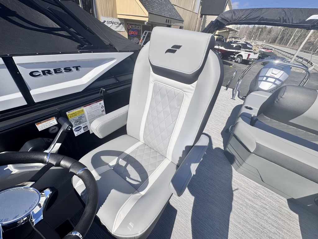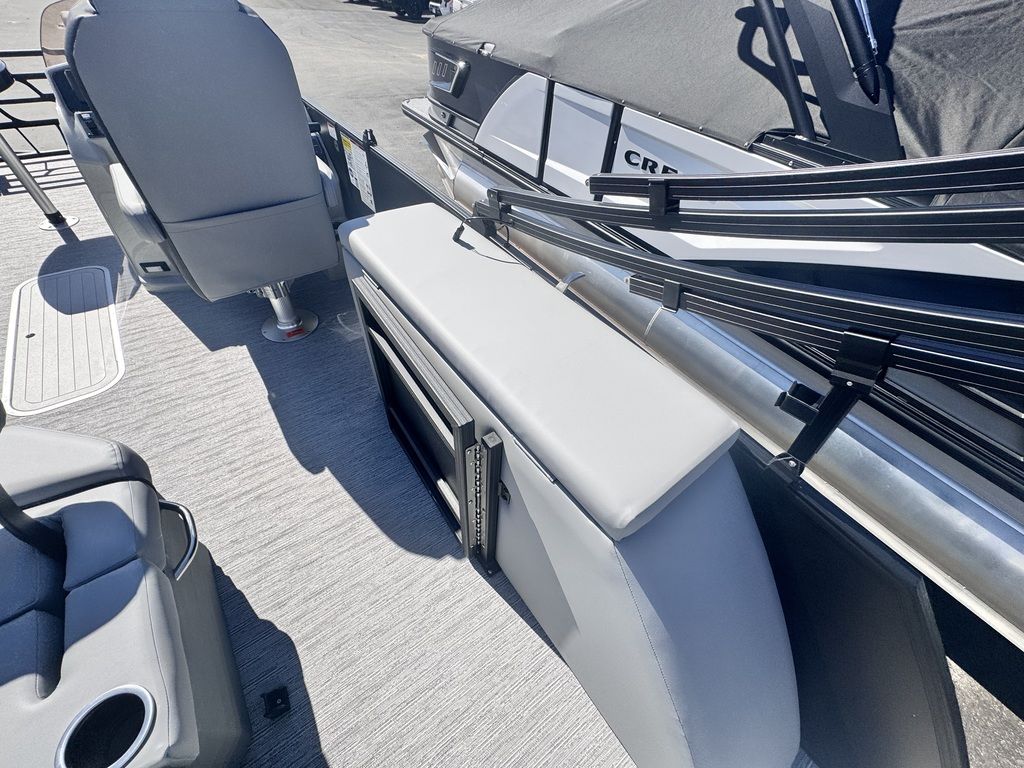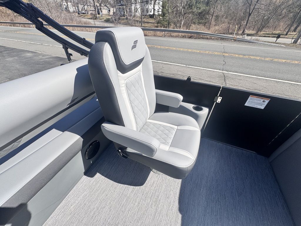 The Starcraft EXS 1 Q DH delivers an ideal balance of comfort, performance, and modern pontoon versatility. Designed around the popular dual helm (DH) layout, this model features two plush captain's chairs that create a premium cockpit feel for both the driver and a companion. Mid-ship and bow seating offers generous wraparound lounges, giving everyone on board plenty of room to stretch out and enjoy the ride.