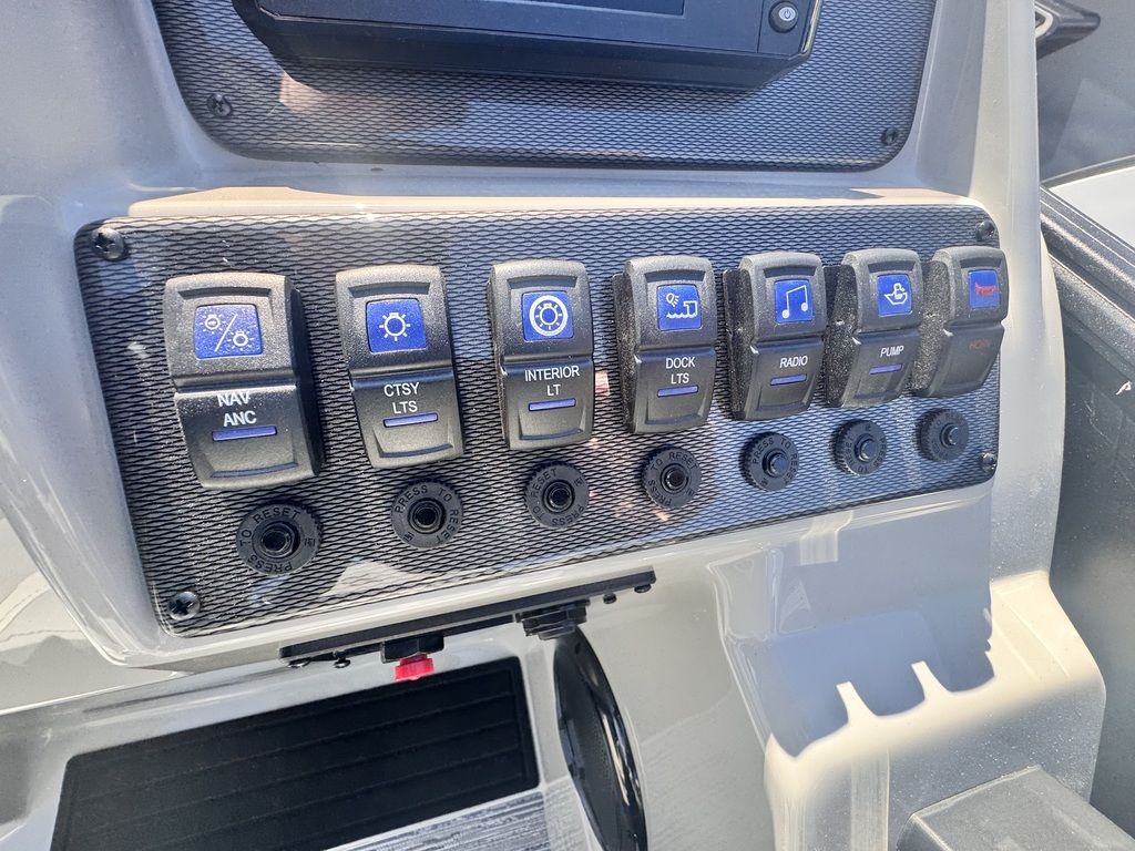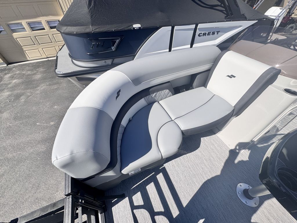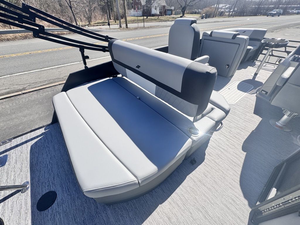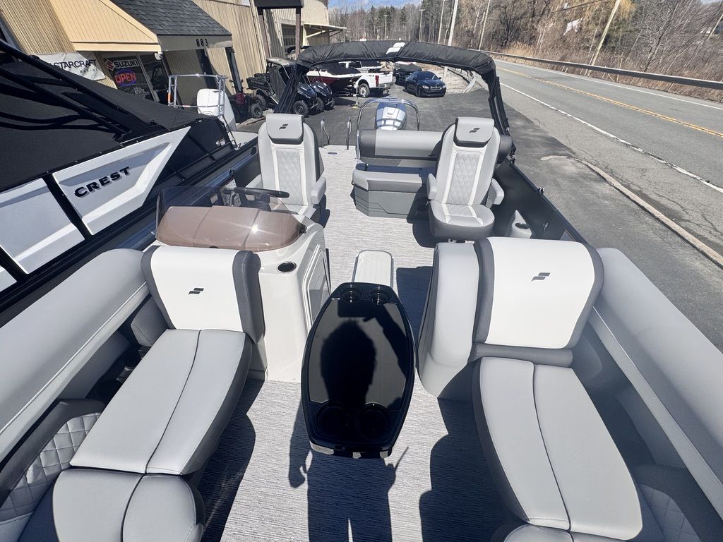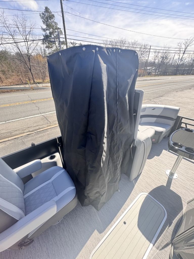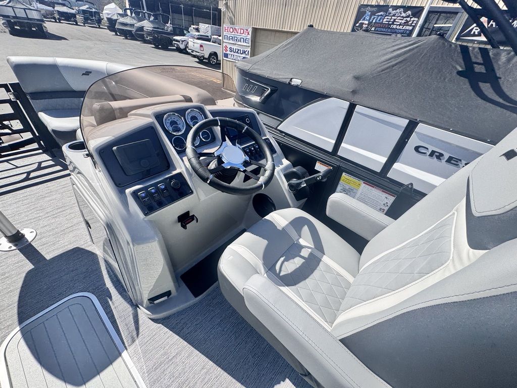 The Starcraft EXS 1 Q DH delivers an ideal balance of comfort, performance, and modern pontoon versatility. Designed around the popular dual helm (DH) layout, this model features two plush captain's chairs that create a premium cockpit feel for both the driver and a companion. Mid-ship and bow seating offers generous wraparound lounges, giving everyone on board plenty of room to stretch out and enjoy the ride.