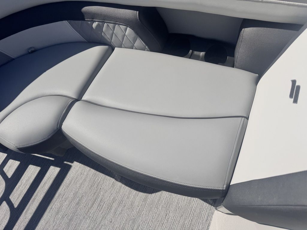 At the stern, the flip-back rear lounge is the highlight of the layout—effortlessly transitioning between forward-facing seating for cruising and a rear-facing position perfect for lounging at anchor or watching swimmers. Whether cruising slowly with family or gearing up for tubing and watersports, the EXS 1 Q DH adapts to every kind of day on the water.
