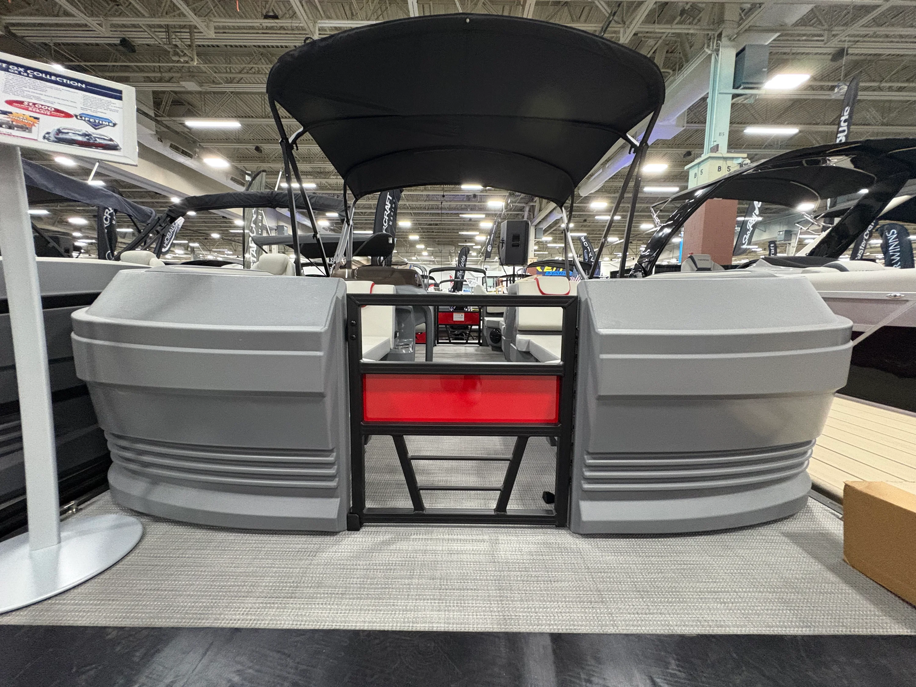 The Starcraft Pontoon GX 18 R offers a perfect blend of style and functionality, making it an ideal choice for water enthusiasts. Built on robust 23-inch diameter tubes, this pontoon delivers exceptional stability and performance on the water. The standard bimini top provides ample shade for those sunny days, while the durable sea weave flooring adds a touch of elegance and comfort. Notably, the roto-molded corners seamlessly integrate into the side panels, enhancing the sleek aesthetic of the boat. With its thoughtful design and high-quality features, the GX 18 R promises a memorable experience for family and friends on every outing.