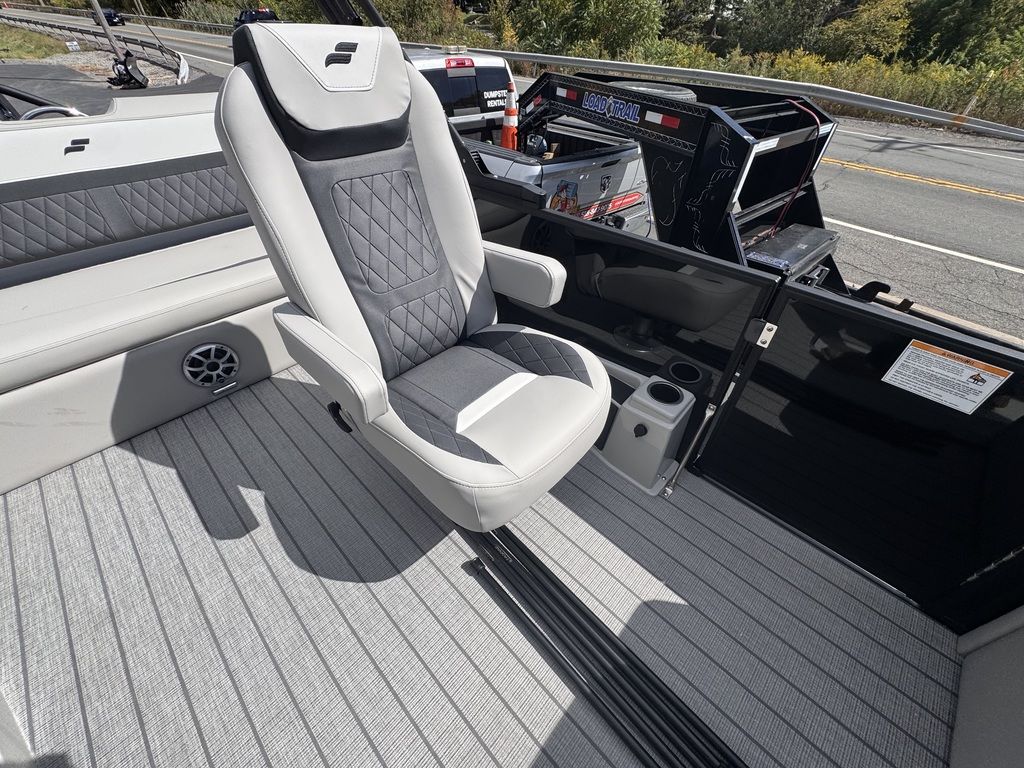 The dual helm design enhances driver comfort and convenience, giving passengers and captain alike an exceptional on-water experience. From its premium interior detailing and high-end materials to its thoughtful deck layout, every element is designed for comfort, entertainment, and effortless fun.