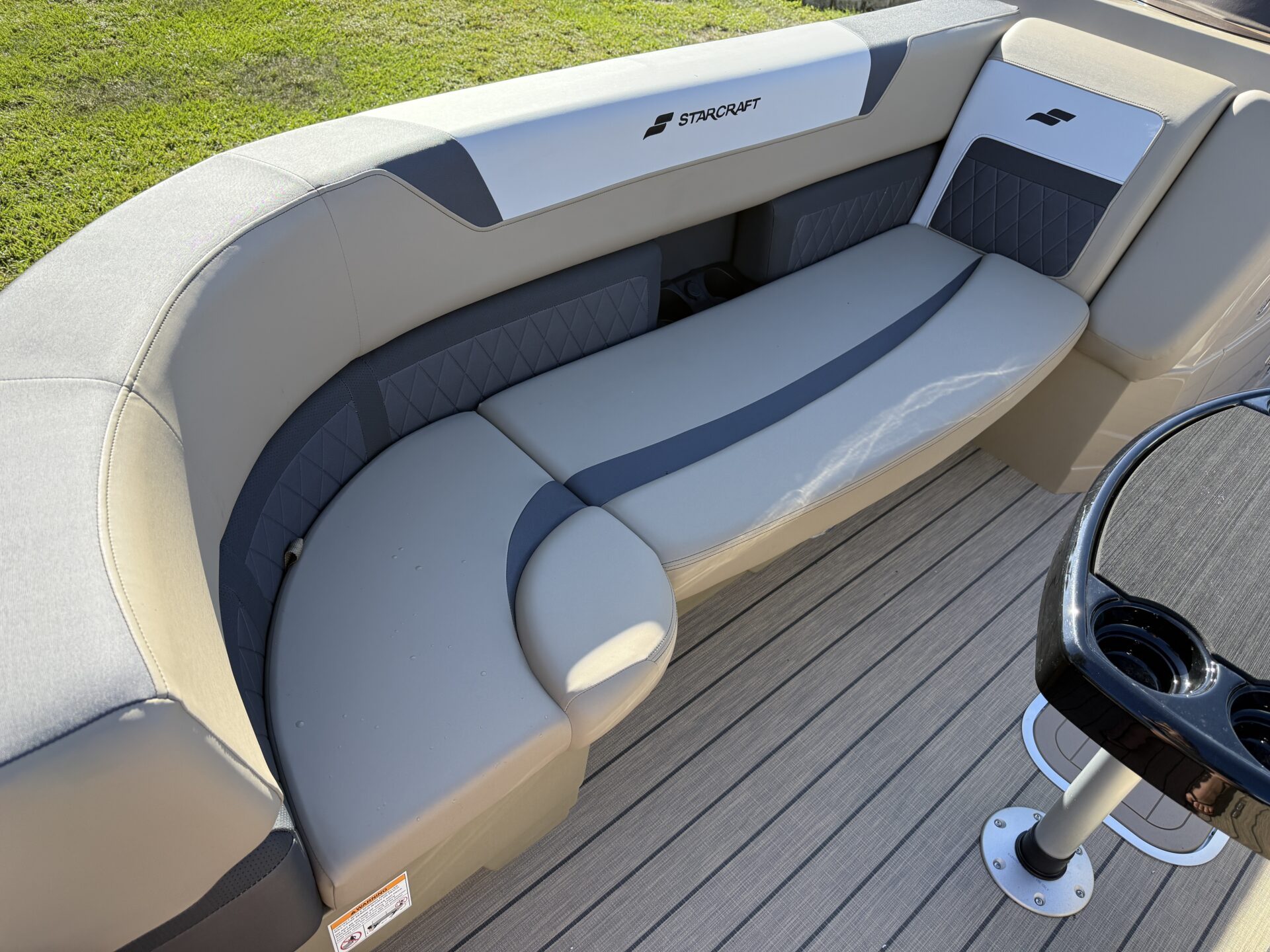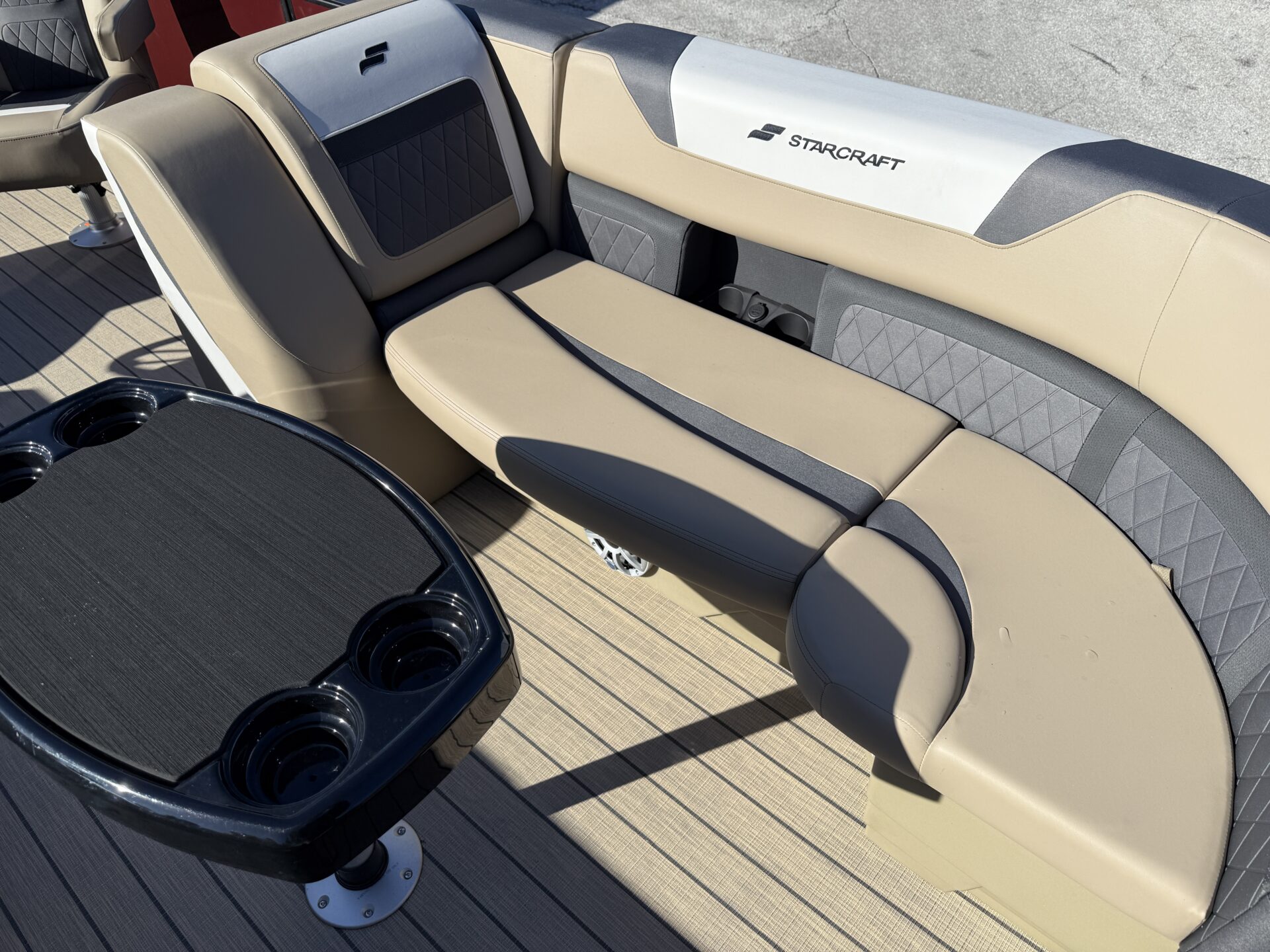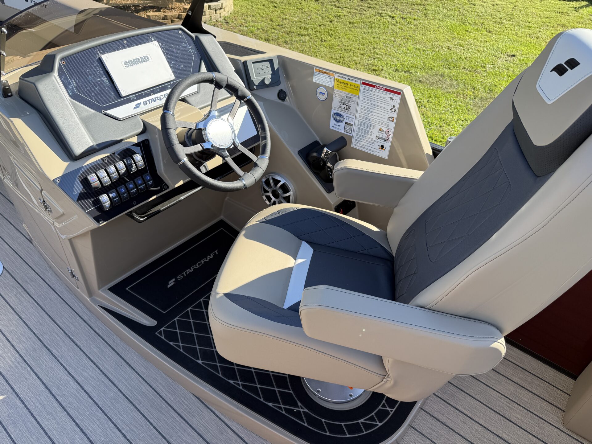 The 2026 Starcraft SLS 5 Q DH delivers the perfect balance of performance, comfort, and style. Powered by a Yamaha 300, this tritoon offers impressive speed and smooth handling for cruising, watersports, or relaxing days on the lake.The versatile quad lounge layout provides plenty of space for family and friends, while the dual helm chairs add comfort for both captain and co-captain. With premium upholstery, ample storage, and Starcraft’s durable construction, the SLS 5 Q DH is built to deliver years of enjoyment on the water. Loaded with Standard features such as Premium Power Bimini Top, Playpen Cover, Fold Up Cleats, Pedestal Light, Mood Lights, Removable Table, and more.
