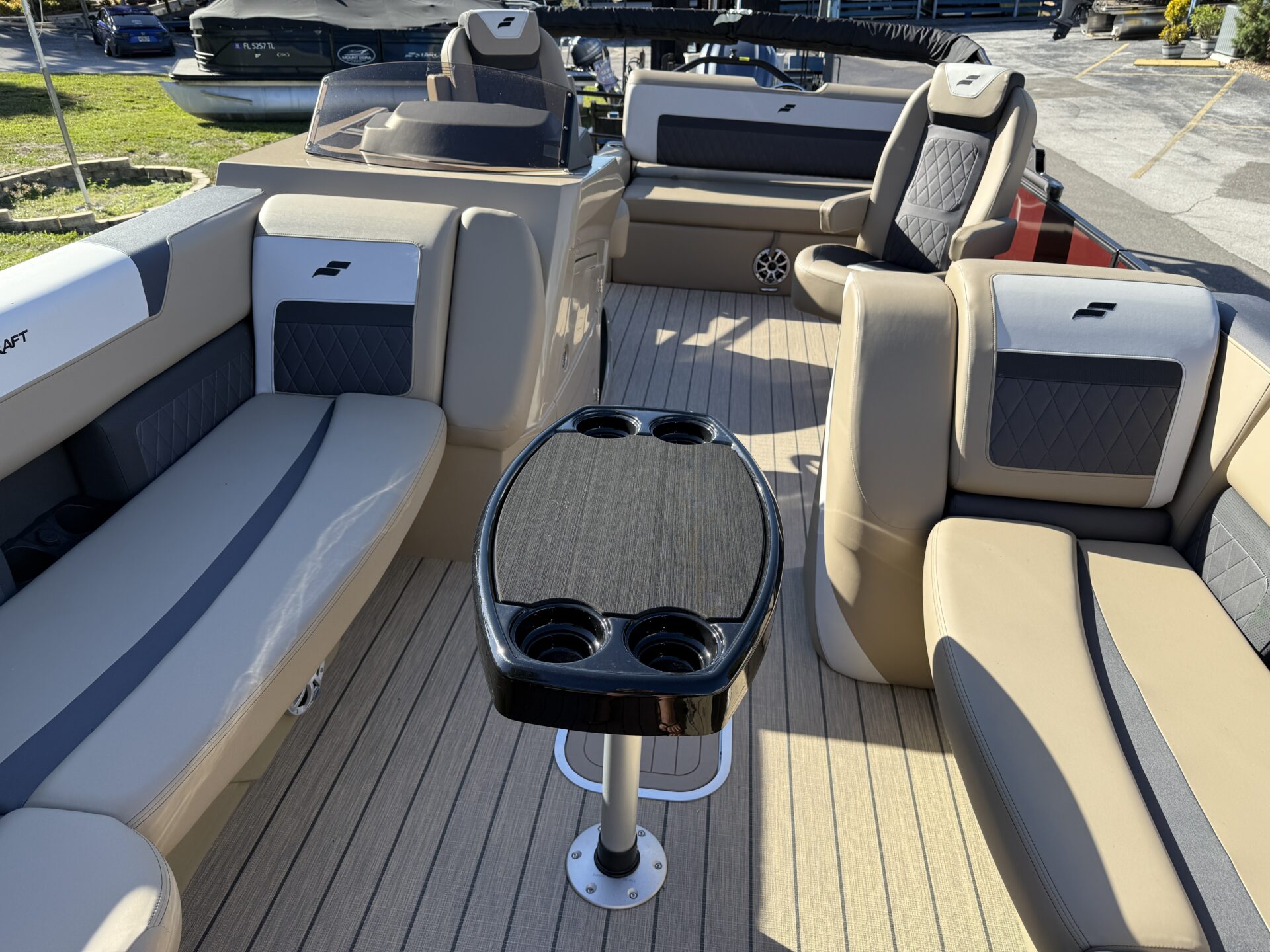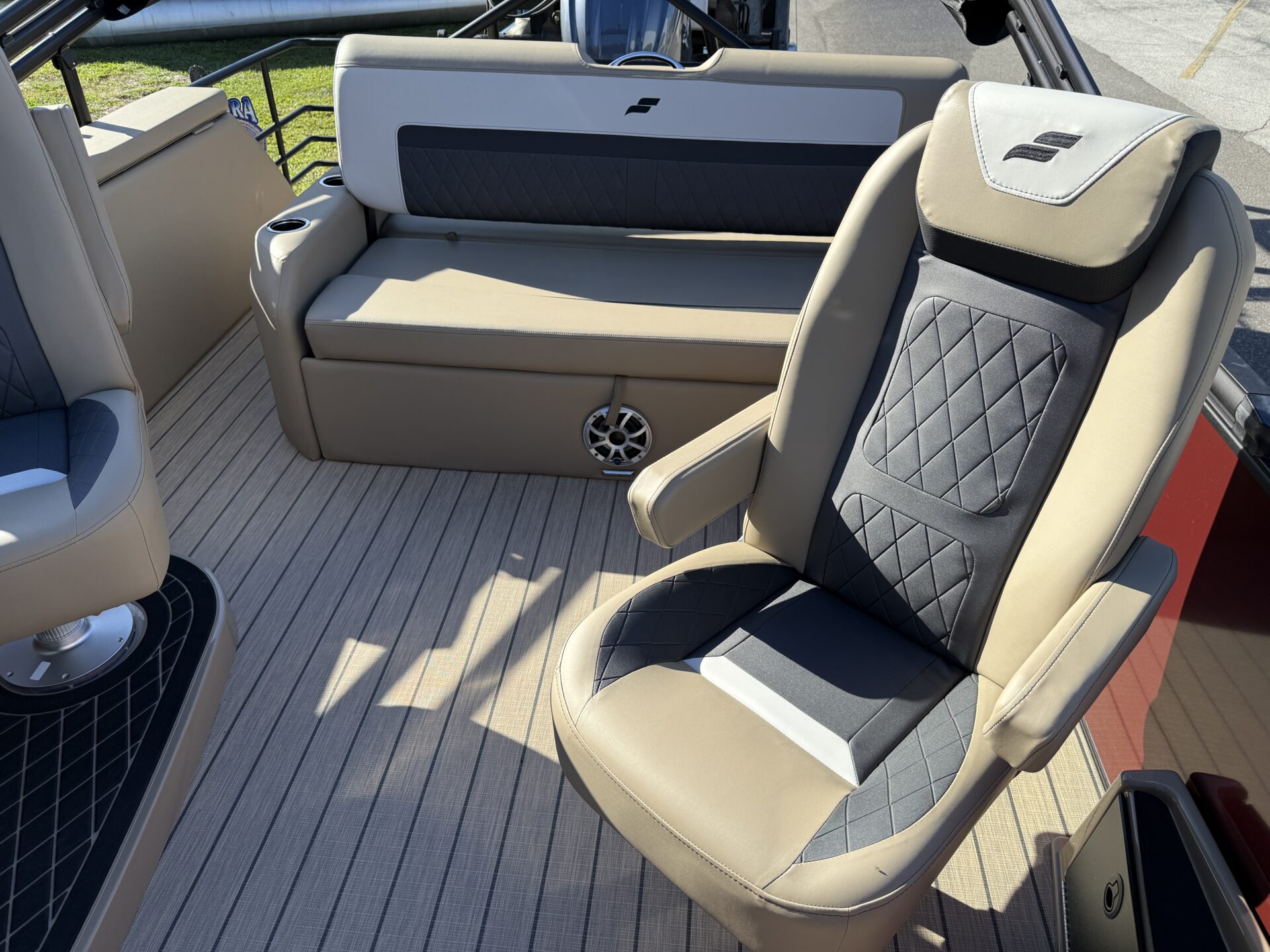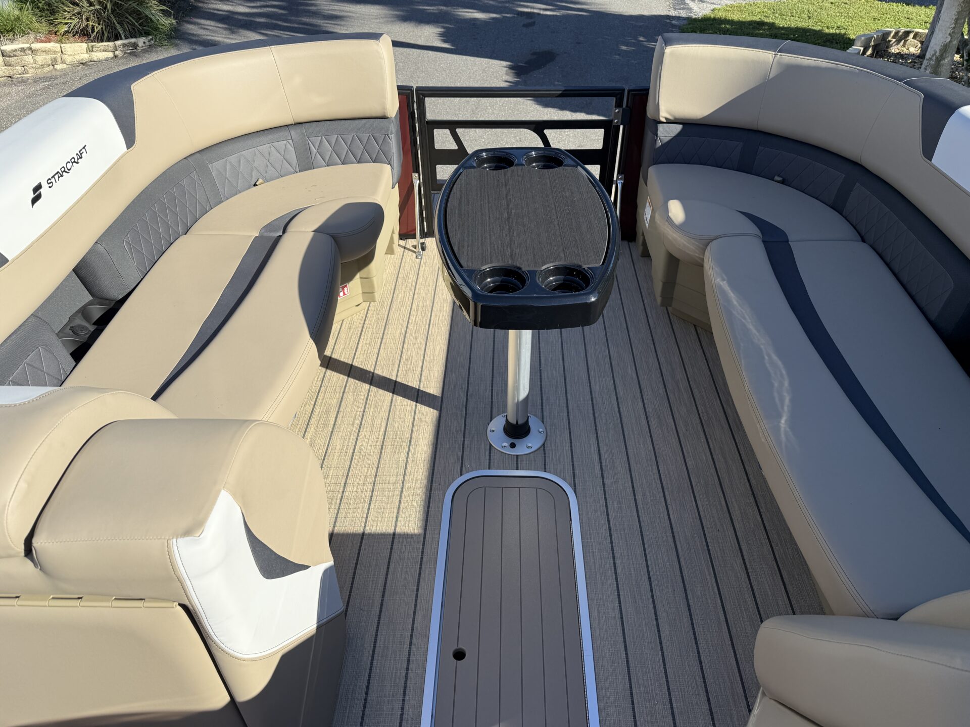 The 2026 Starcraft SLS 5 Q DH delivers the perfect balance of performance, comfort, and style. Powered by a Yamaha 300, this tritoon offers impressive speed and smooth handling for cruising, watersports, or relaxing days on the lake.The versatile quad lounge layout provides plenty of space for family and friends, while the dual helm chairs add comfort for both captain and co-captain. With premium upholstery, ample storage, and Starcraft’s durable construction, the SLS 5 Q DH is built to deliver years of enjoyment on the water. Loaded with Standard features such as Premium Power Bimini Top, Playpen Cover, Fold Up Cleats, Pedestal Light, Mood Lights, Removable Table, and more.