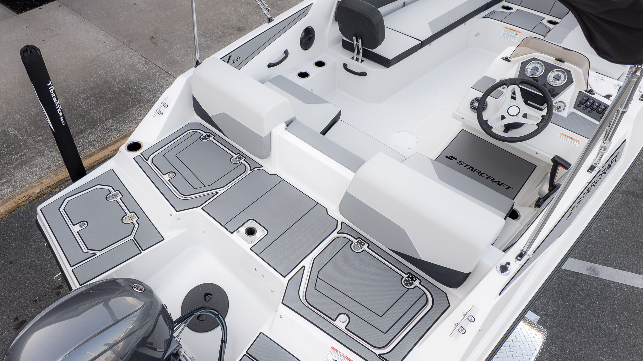 The open layout makes it ideal for afternoon cruises, calm-water exploring, and easy sandbar hangouts. There’s plenty of usable space up front for lounging, stretching out, or letting kids claim their favorite spot, while the cockpit keeps the driver connected to everyone onboard. When it’s time to turn up the fun, it’s perfectly suited for tubing, casual watersports, and relaxed cruising with friends.