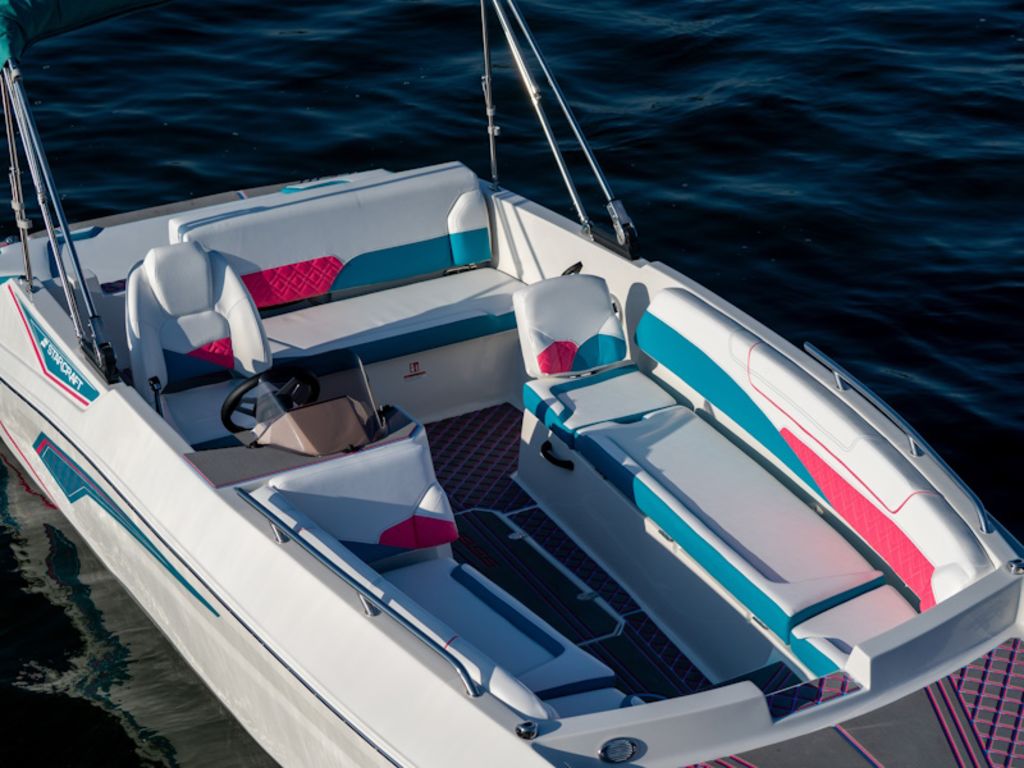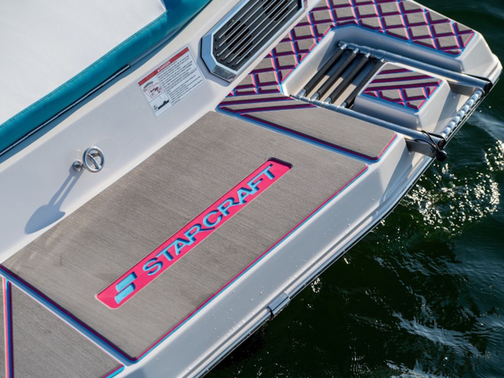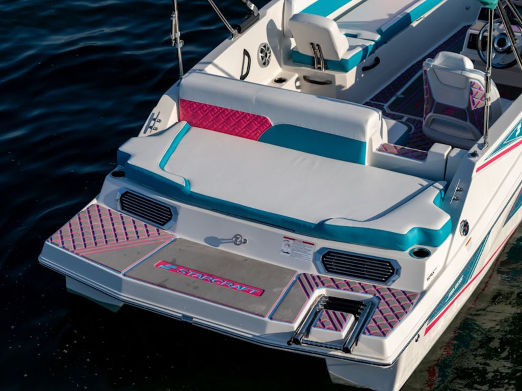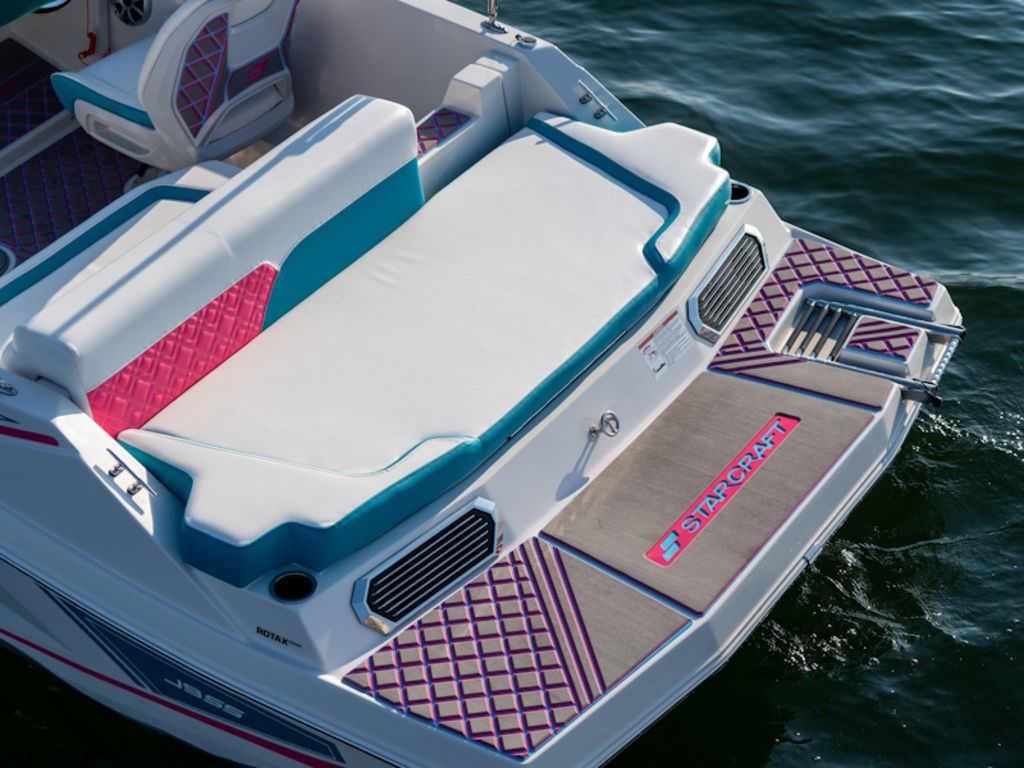 Starcraft’s SV Jet Series introduces the first jet-powered deck boat ever built, redefining the deck boat experience. Its prop-free design makes it one of the safest deck boats on the market, providing added confidence for swimmers, kids, and all types of watersports. The spacious, open-cockpit layout offers generous seating, a full sundeck, and multiple port-side chaise lounge configurations, all without a windshield to interrupt the open-air boating experience. A Dihedral-Vee deck boat hull design delivers a comfortable, stable ride by minimizing spray and reducing hull motion. To further customize your time on the water, an optional Speed Controller allows you to select between SKI, CRUISE CONTROL, ECO, and DOCKING engine modes.