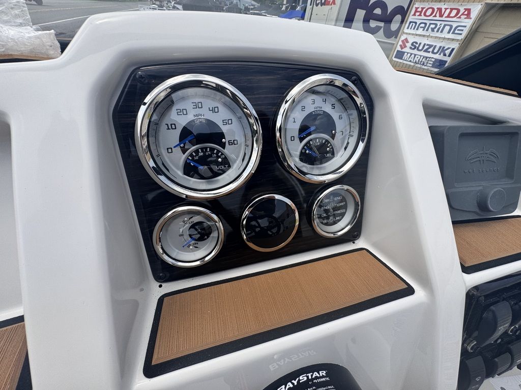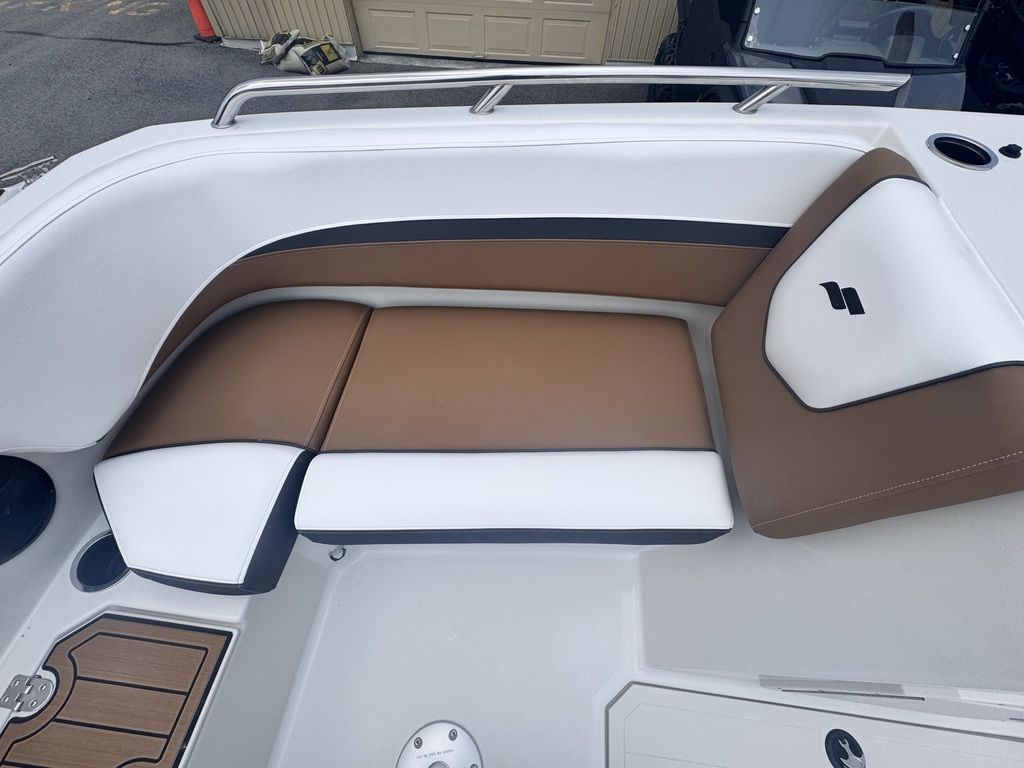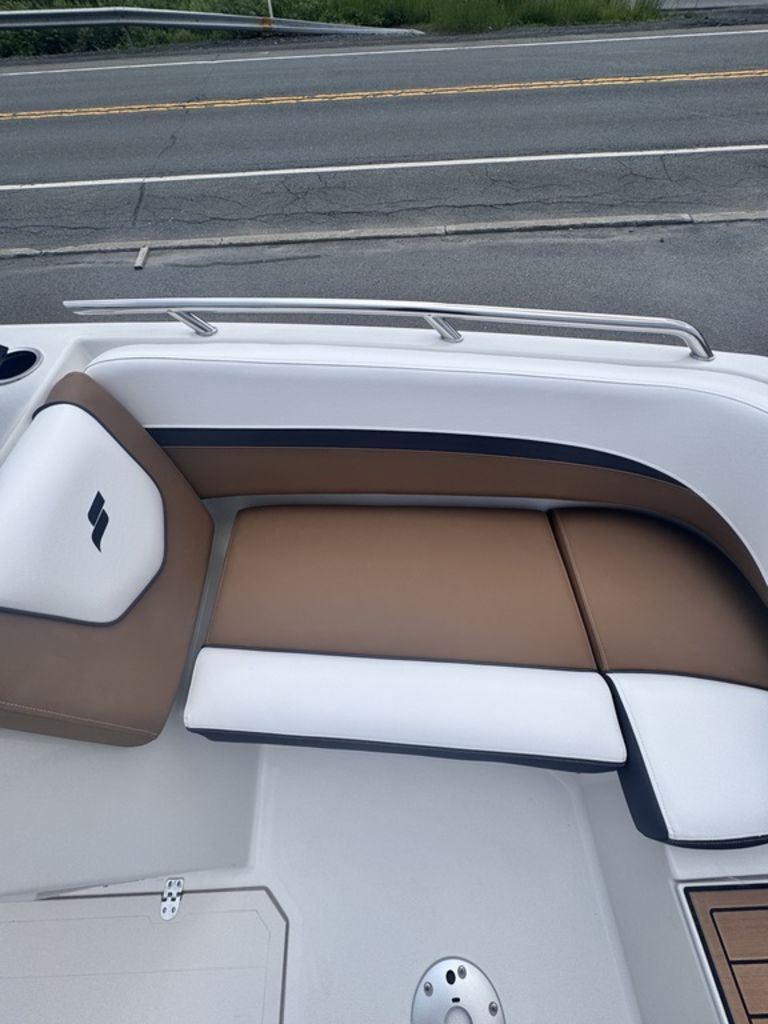 Upgrades Include: Black Hull, Rub Rail Black Stainless, Graph Helix 5 Flush Mount, Fender Holder Mid Ship, Docking Lights, Ski Tow, Trim Gauge, Table Kit Copper, Bow Cover/Stern Cockpit Cover (Gray) Photo Below represents color combo