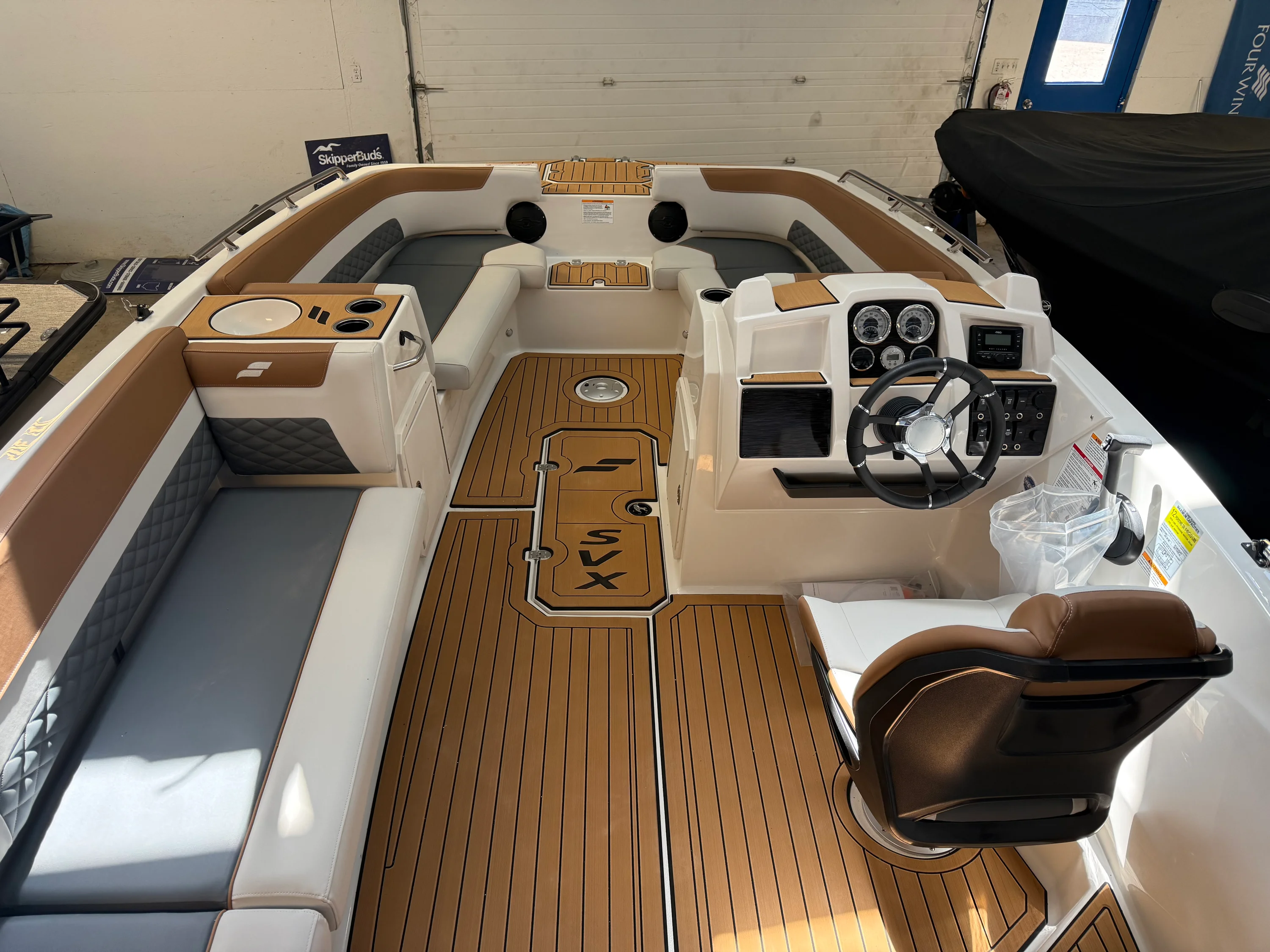 Just landed and ready to make waves! Turn every weekend into a lake day with this brand new 2026 Starcraft SVX 191 OB. It delivers the perfect mix of performance, comfort, and versatility. This deck boat offers a spacious layout with seating for up to 12 passengers and a smooth, stable ride thanks to its fiberglass hull. It’s powered by a reliable 115HP outboard from Mercury Marine, giving you plenty of power for watersports and cruising. The open floor plan provides ample storage for gear and coolers. Enjoy plush seating, a large Bimini top for shade, Bluetooth stereo, and an easy-access swim platform with ladder. Measuring 18’11” with an 8’6” beam, this is a great option for families or first-time buyers. Available now at SkipperBud’s Madison.