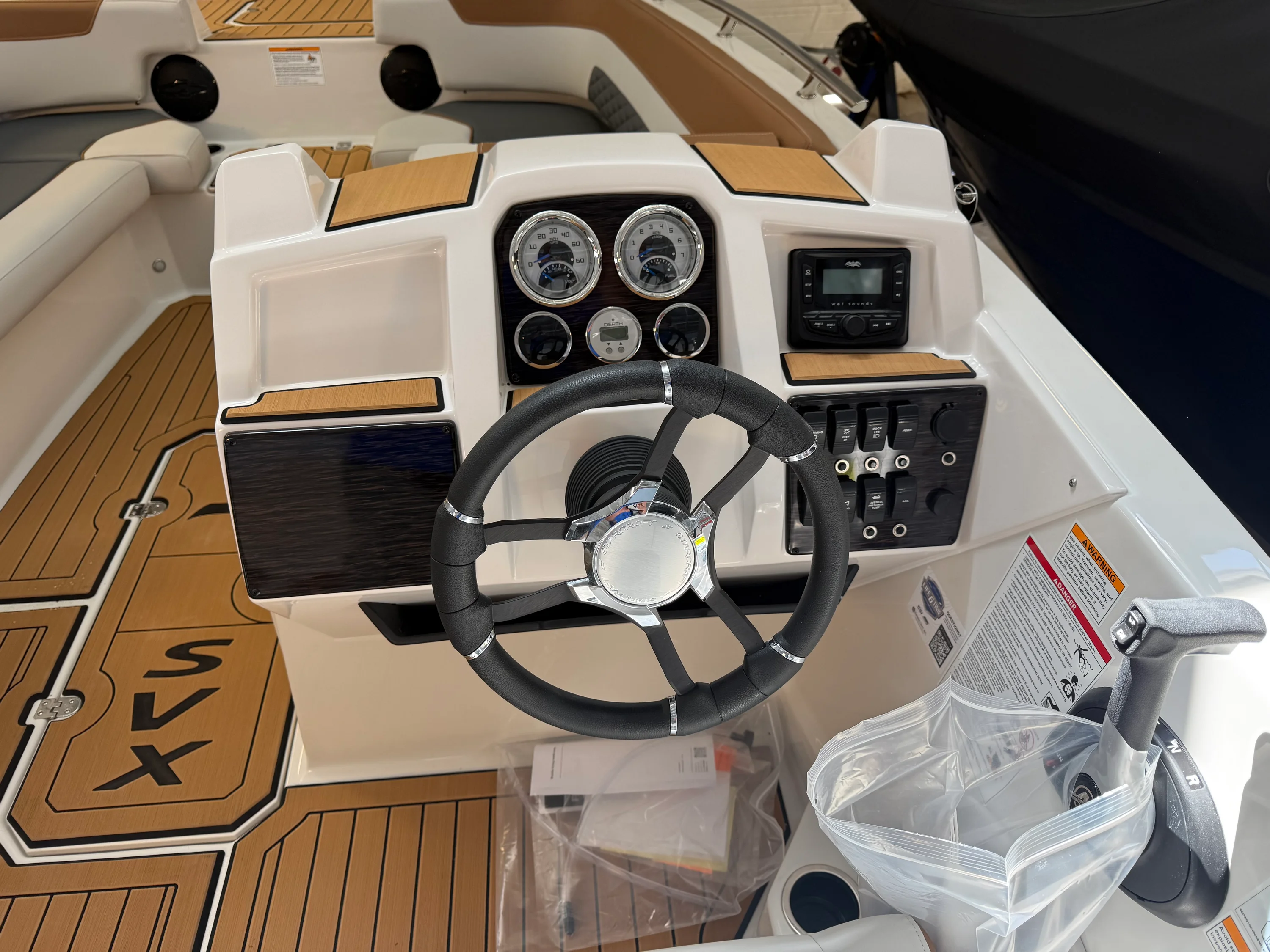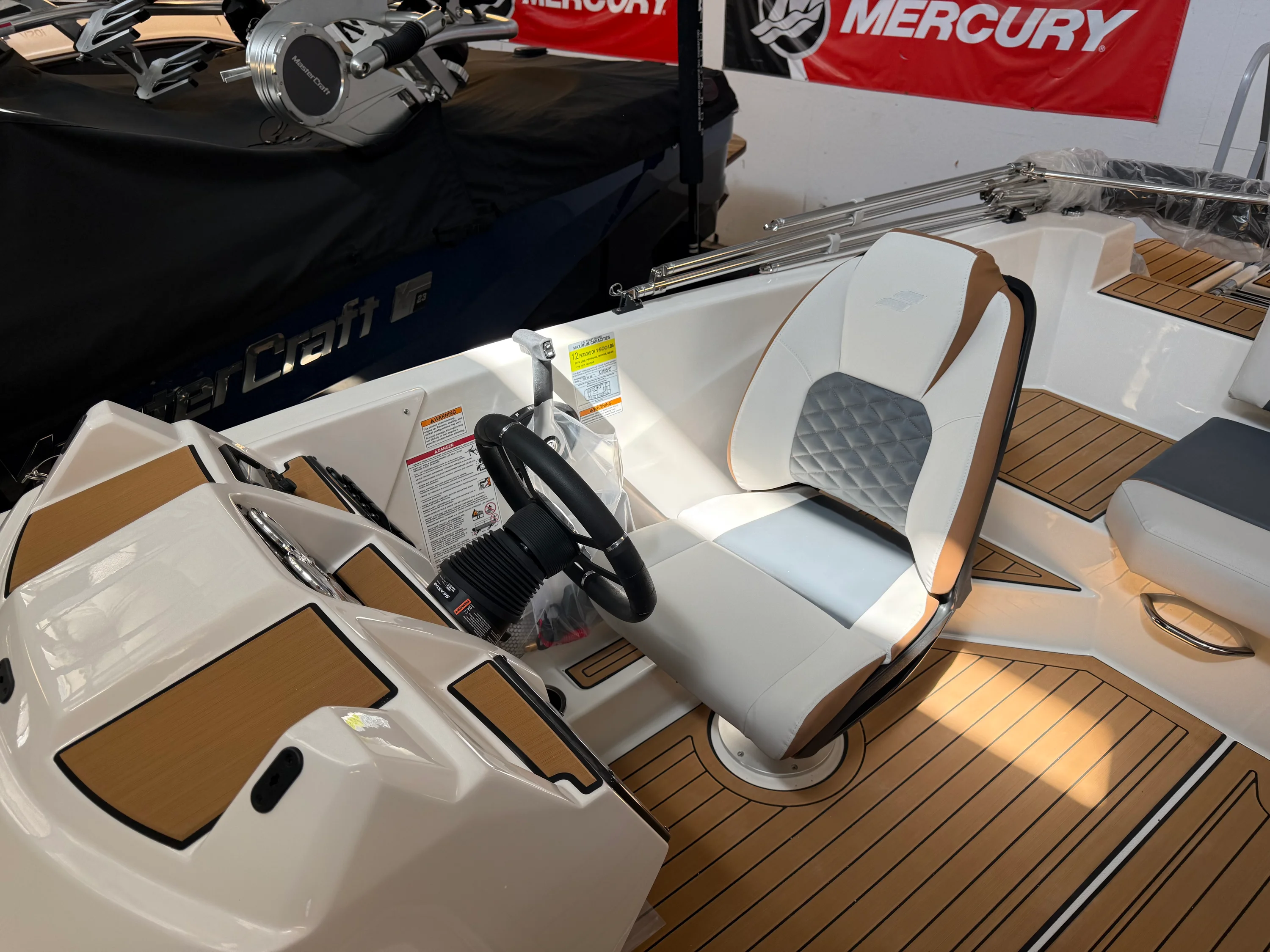 Just landed and ready to make waves! Turn every weekend into a lake day with this brand new 2026 Starcraft SVX 191 OB. It delivers the perfect mix of performance, comfort, and versatility. This deck boat offers a spacious layout with seating for up to 12 passengers and a smooth, stable ride thanks to its fiberglass hull. It’s powered by a reliable 115HP outboard from Mercury Marine, giving you plenty of power for watersports and cruising. The open floor plan provides ample storage for gear and coolers. Enjoy plush seating, a large Bimini top for shade, Bluetooth stereo, and an easy-access swim platform with ladder. Measuring 18’11” with an 8’6” beam, this is a great option for families or first-time buyers. Available now at SkipperBud’s Madison.